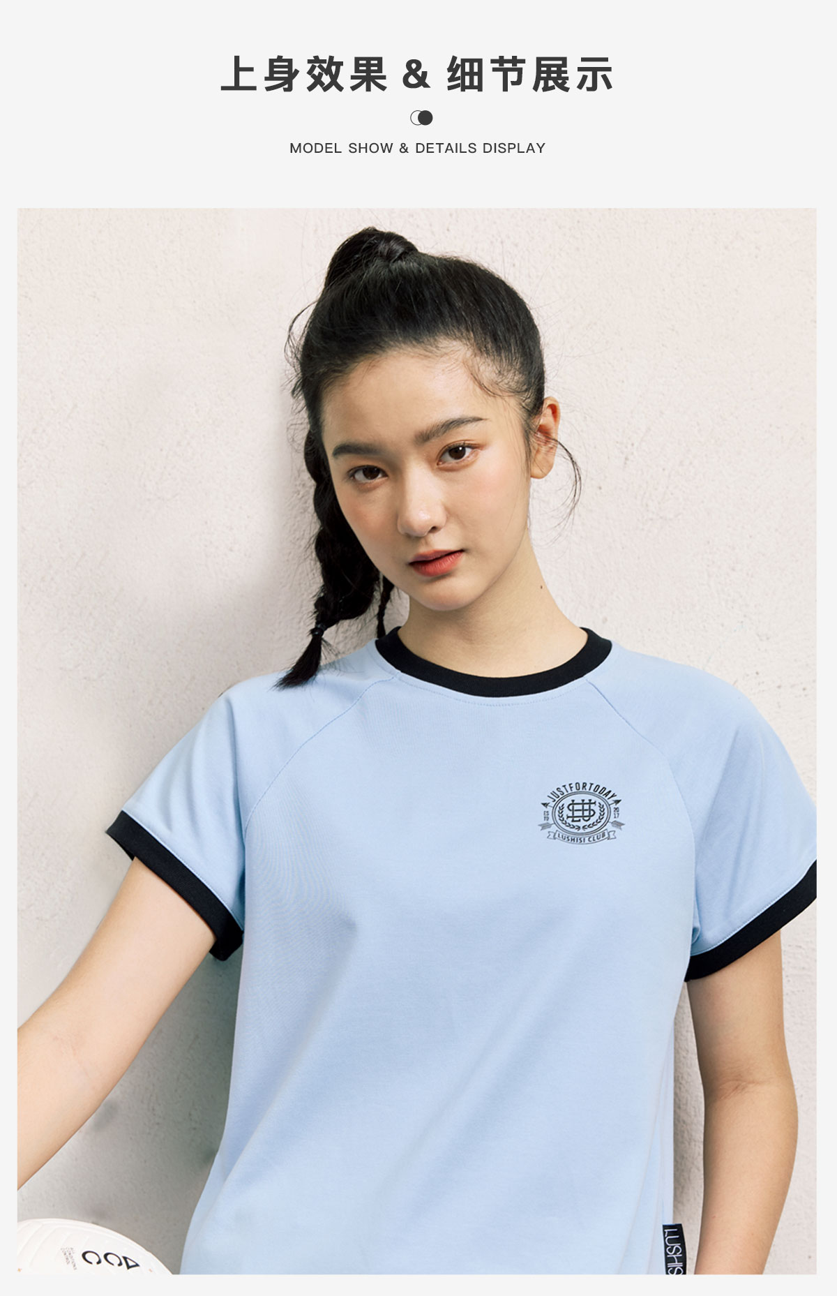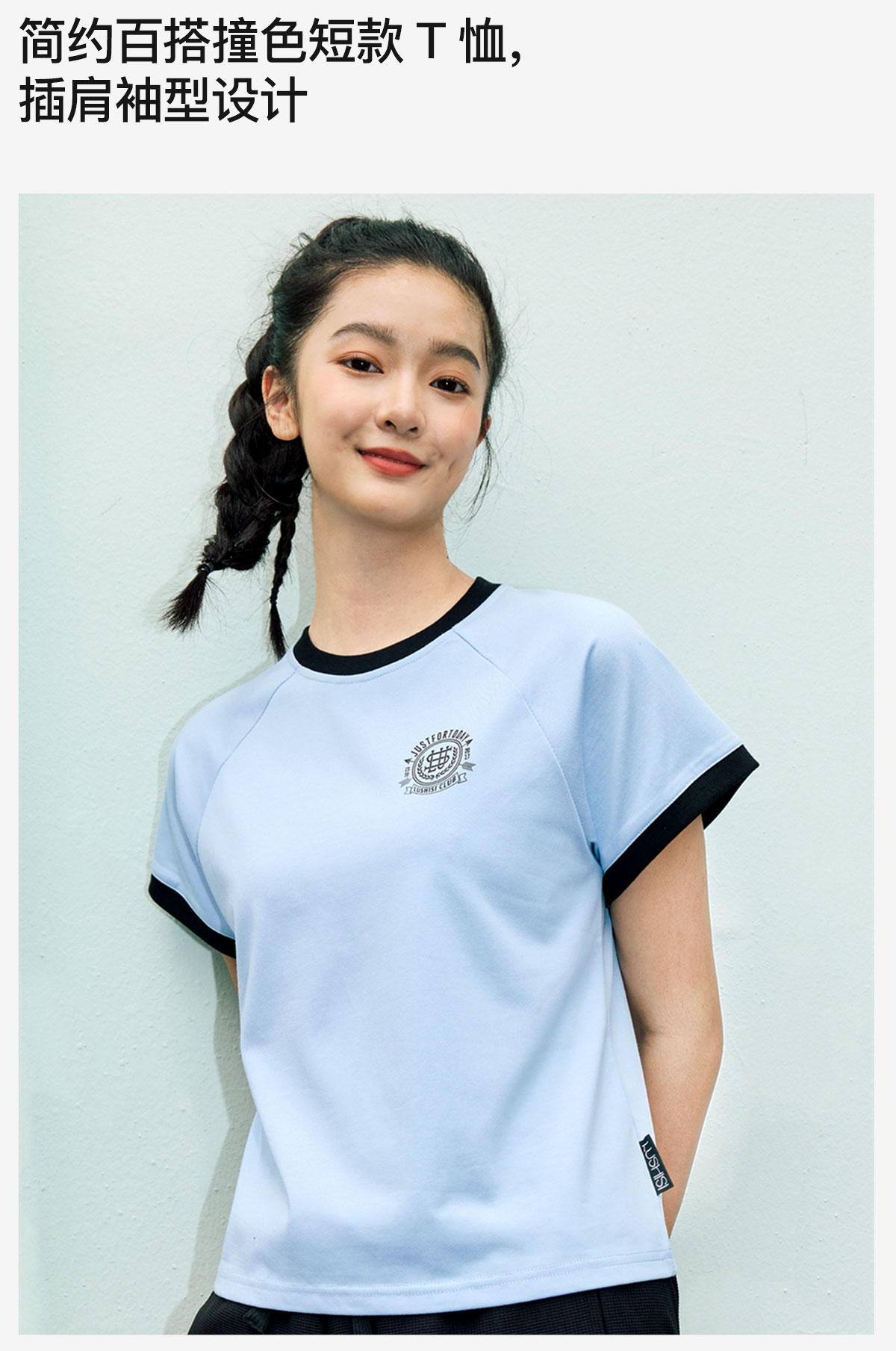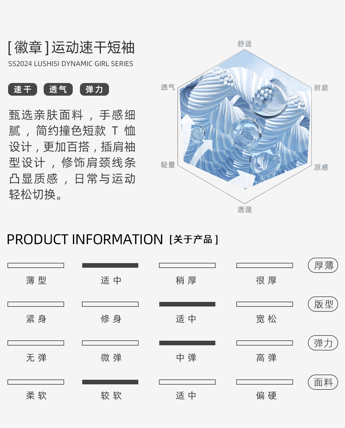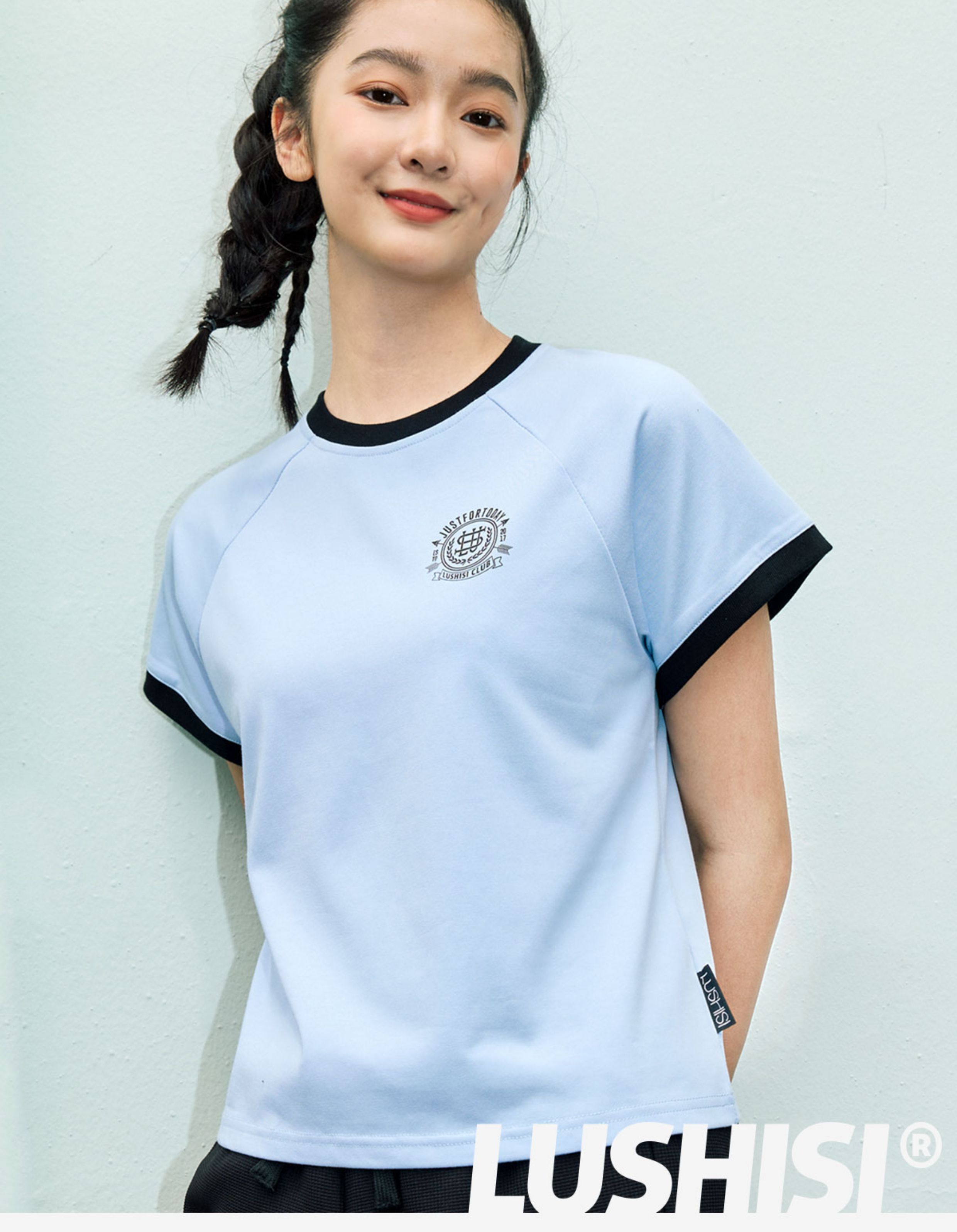 LUSHISI女子运动速干混纺圆领短款短袖健身跑步篮球tee恤女[徽章]
