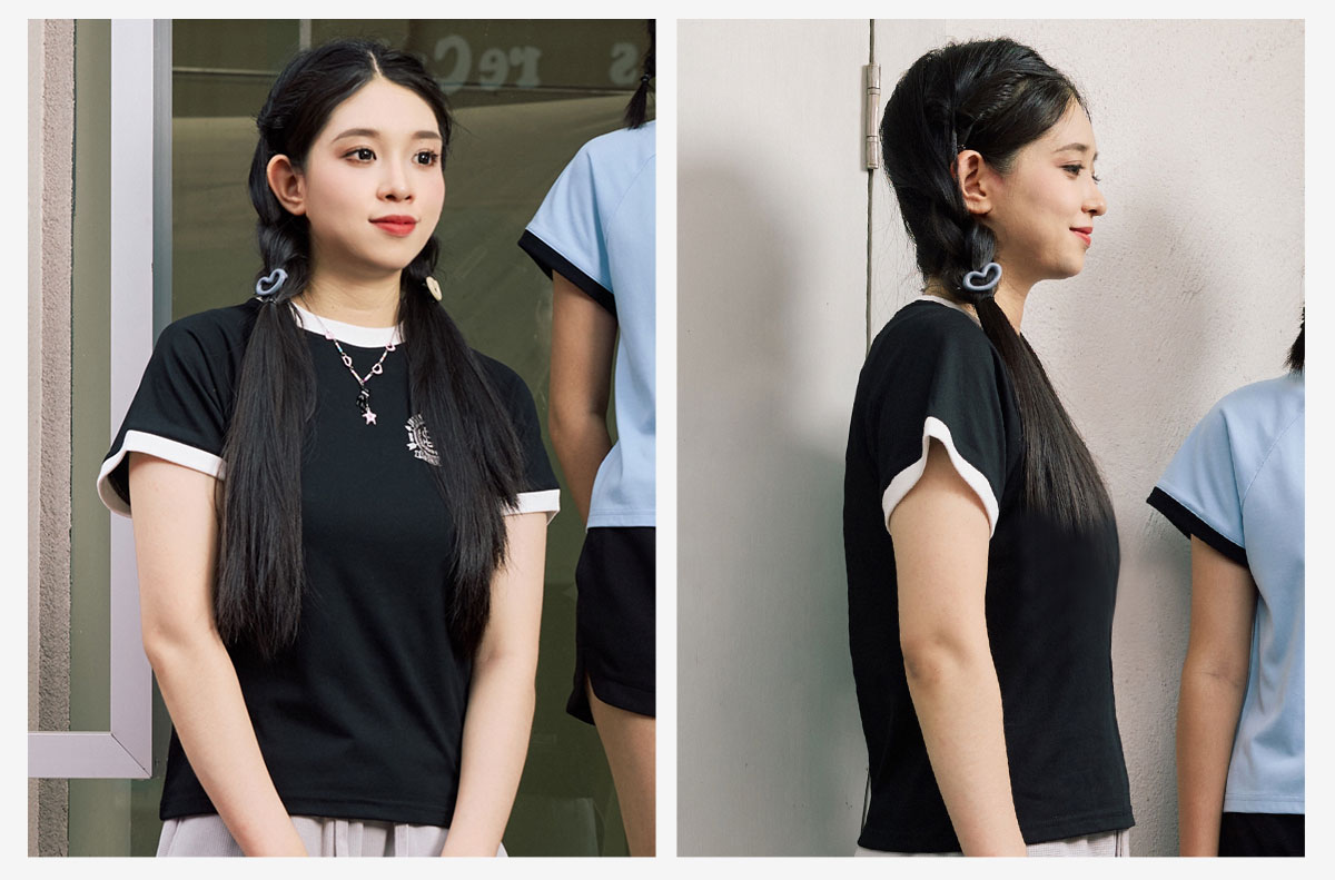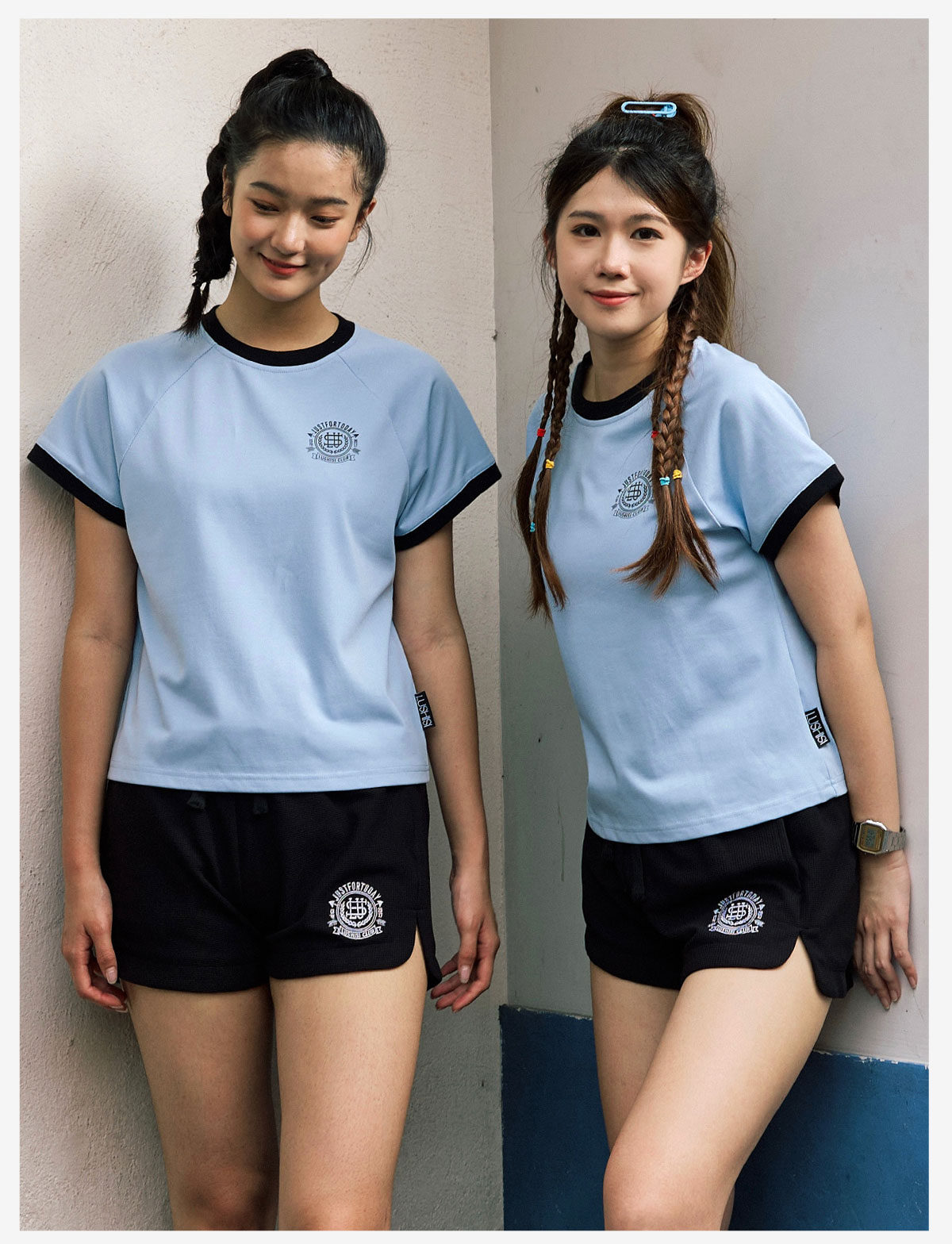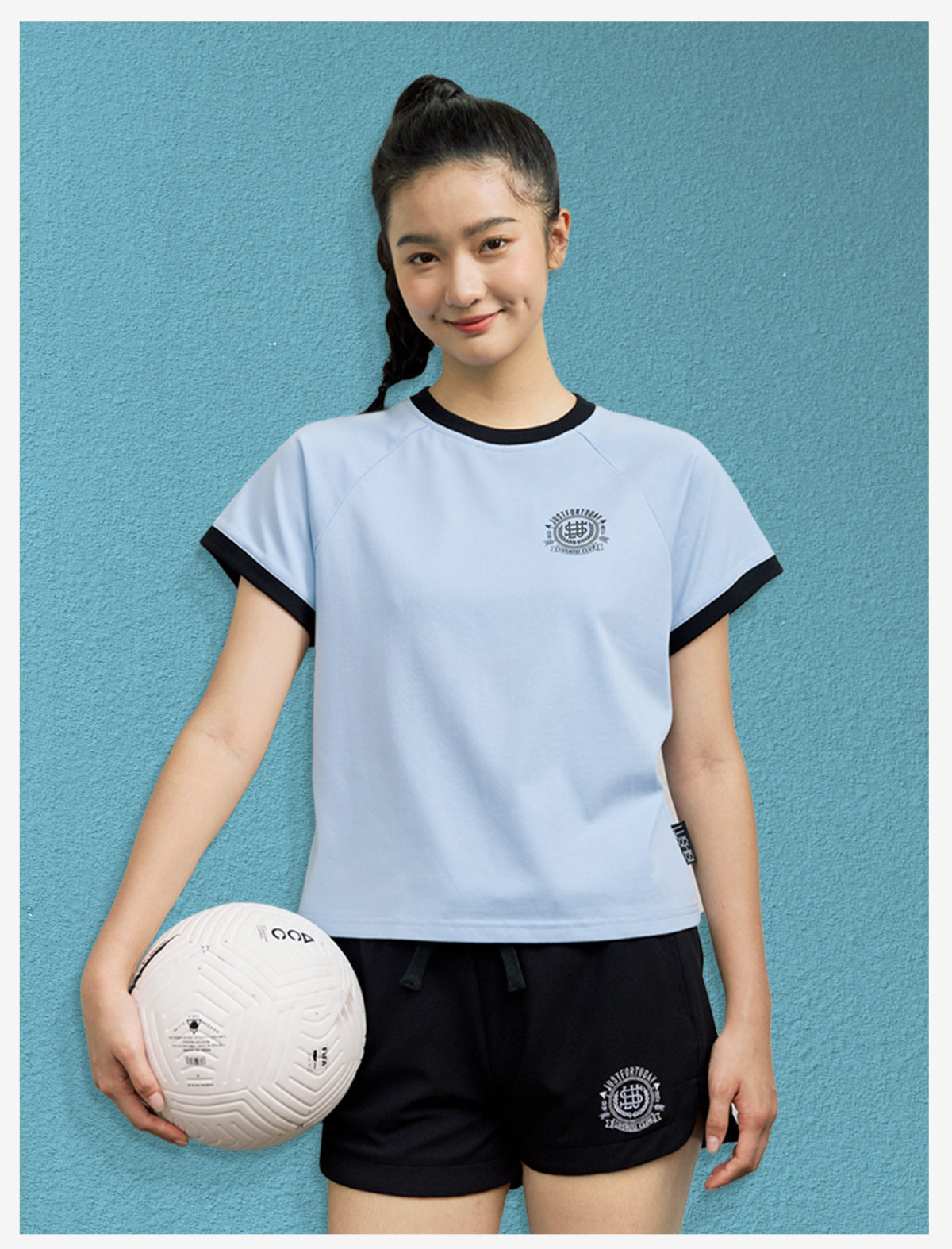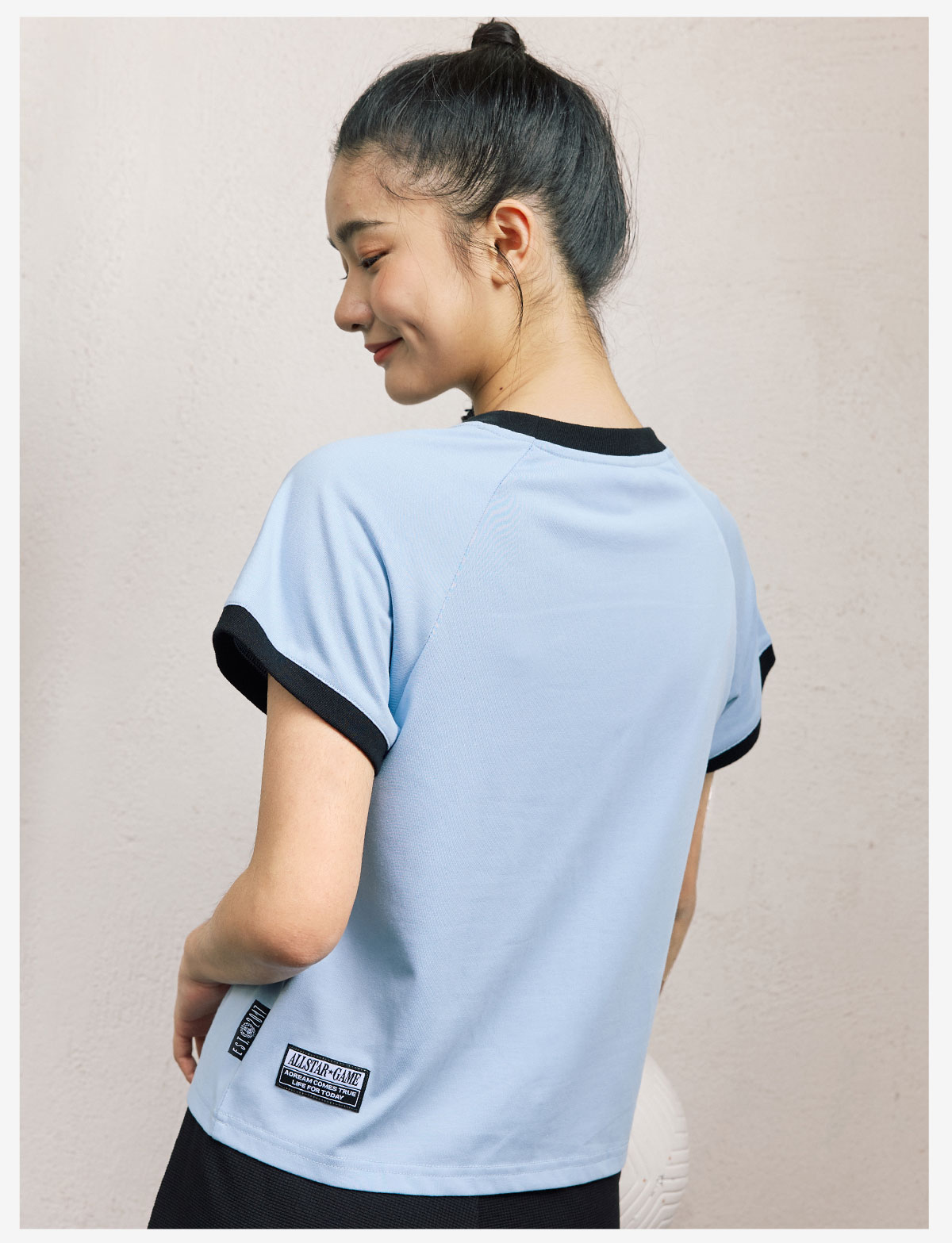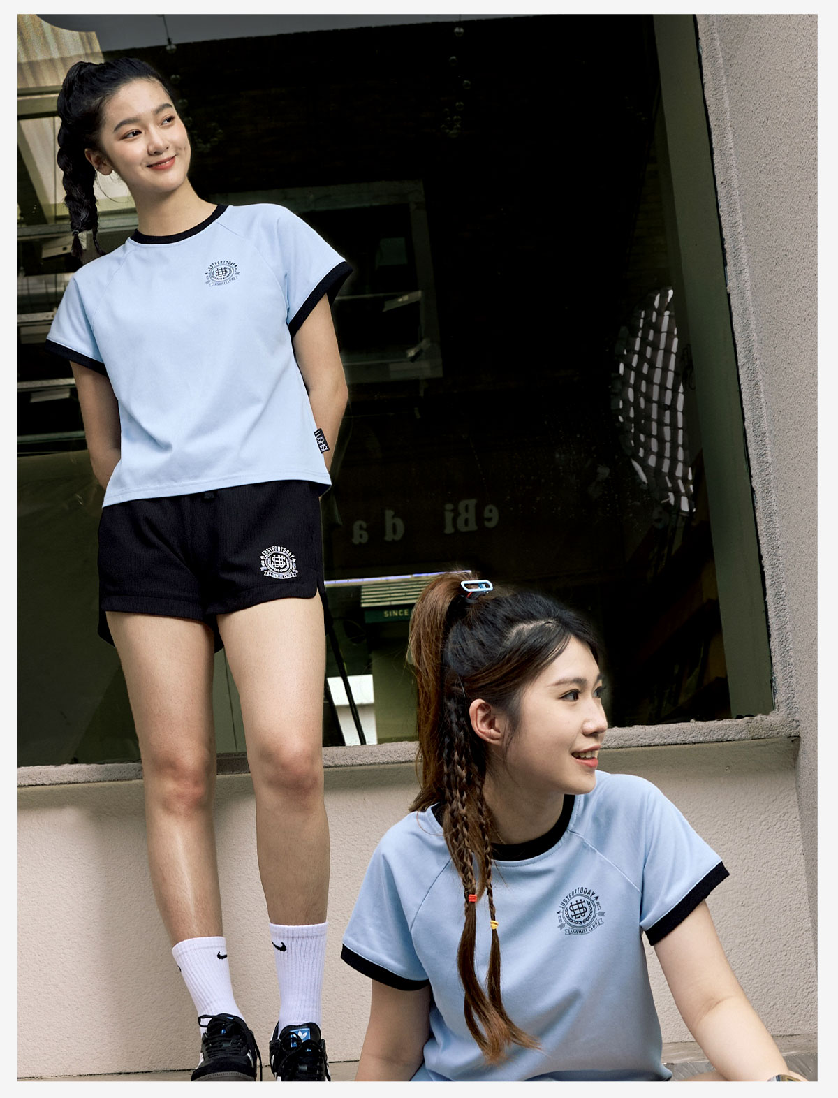 LUSHISI女子运动速干混纺圆领短款短袖健身跑步篮球tee恤女[徽章]