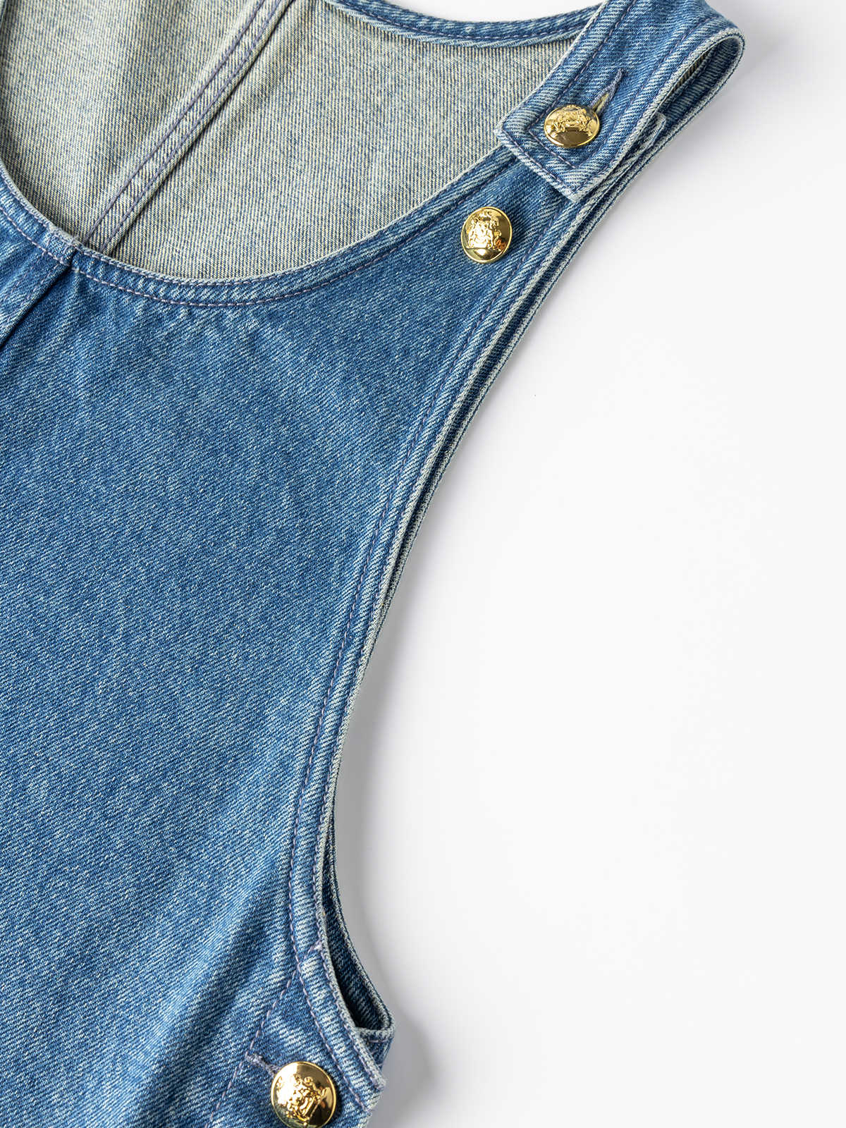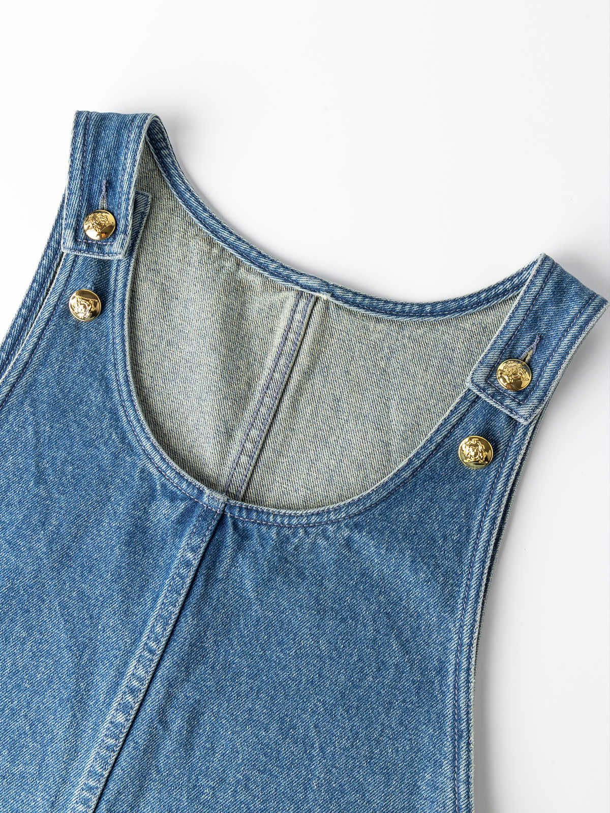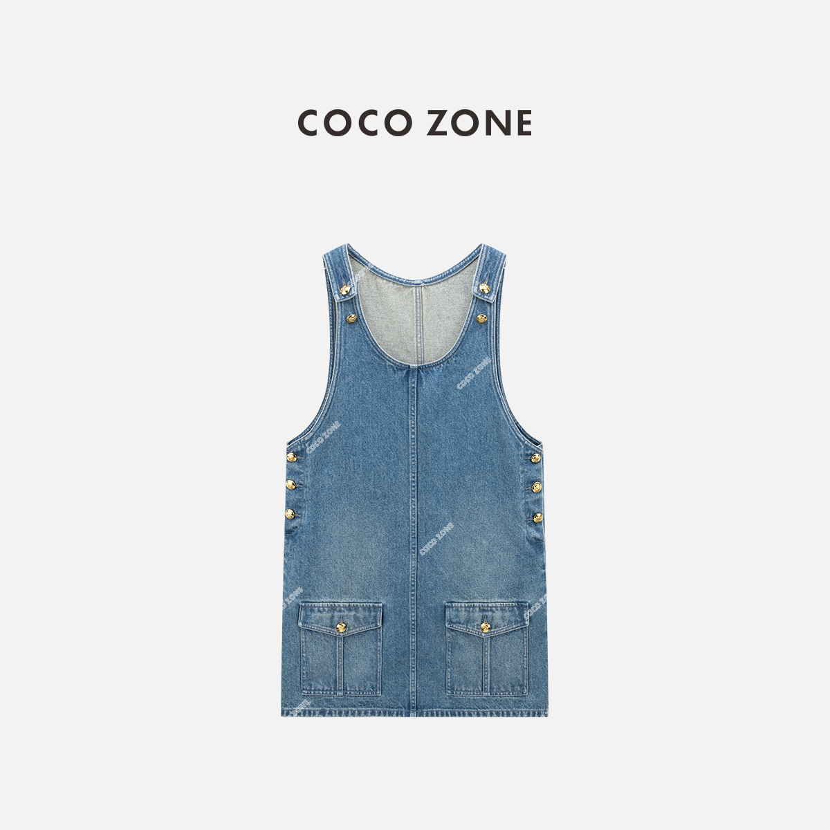 COCO ZONE"吉普赛连衣裙“夏季设计感双口袋无袖U领牛仔背带裙CC1B1440