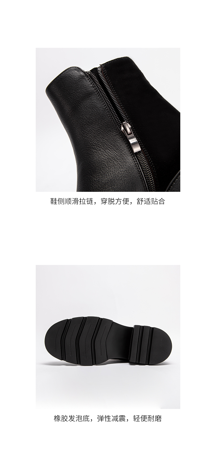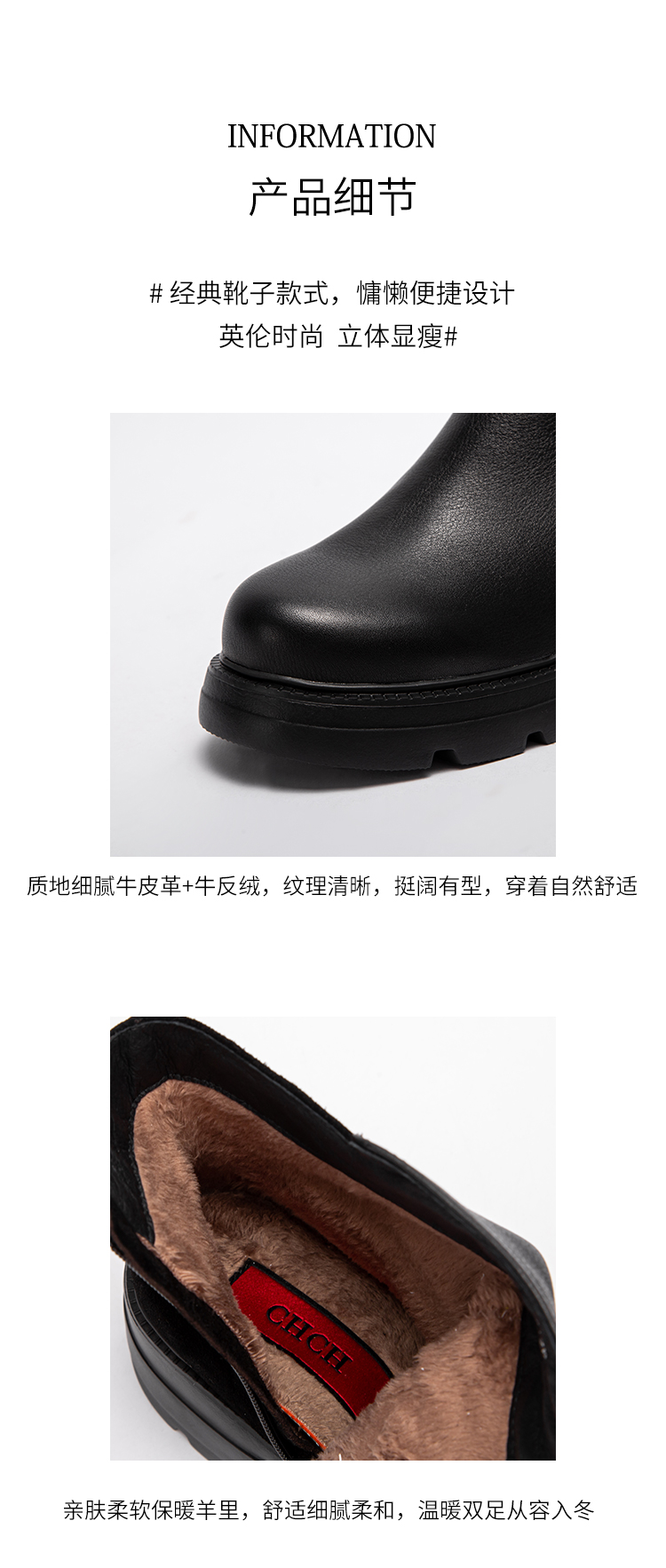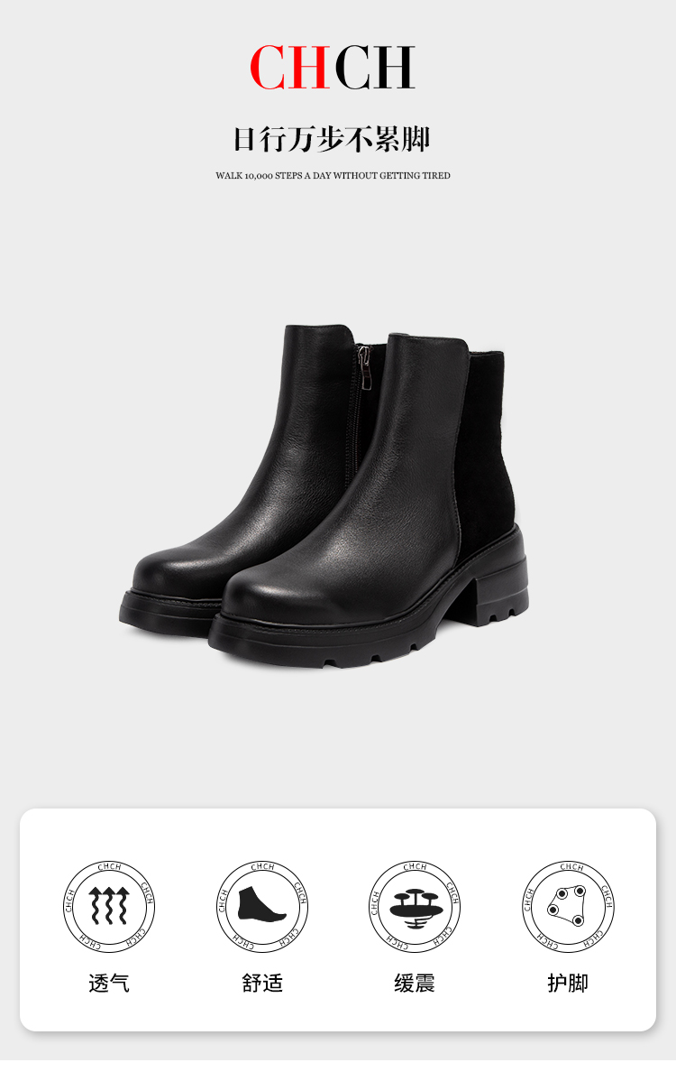 CHCH加绒短靴2024秋冬新品侧拉链粗跟时尚女靴牛皮女靴CO2B6121