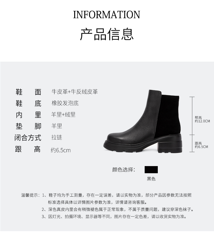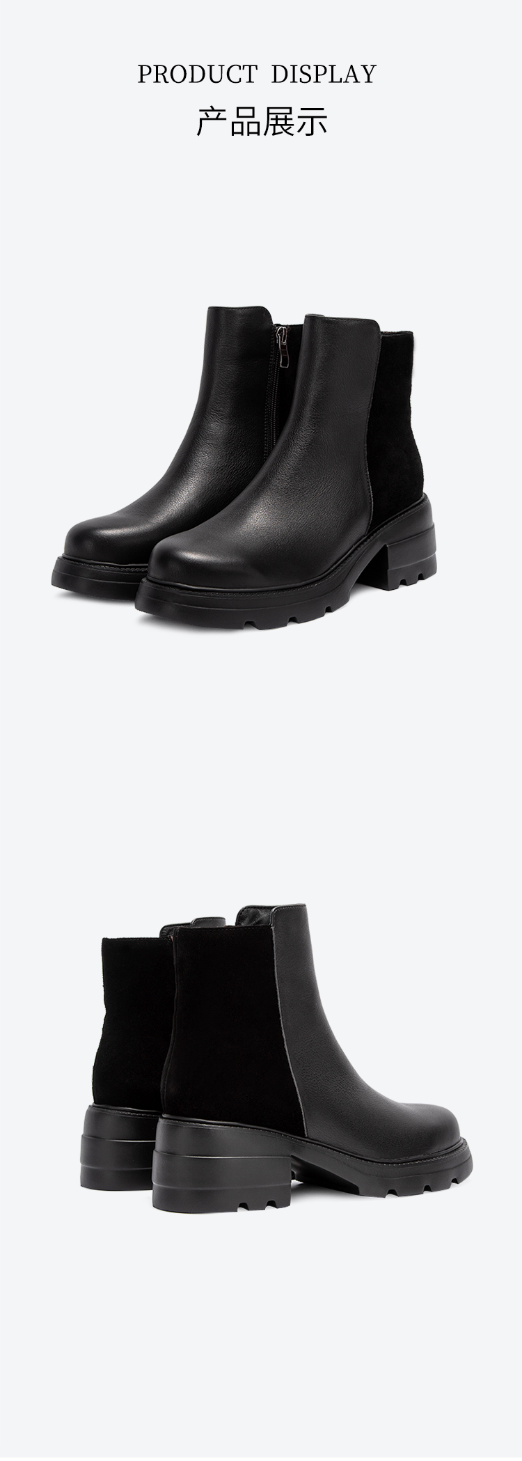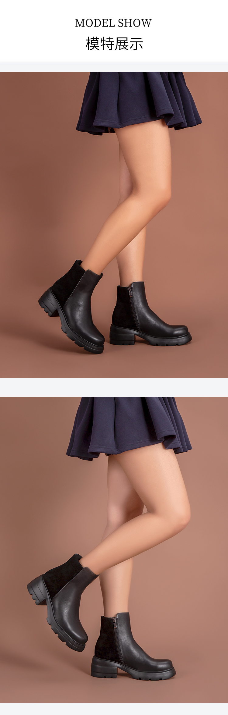 CHCH加绒短靴2024秋冬新品侧拉链粗跟时尚女靴牛皮女靴CO2B6121