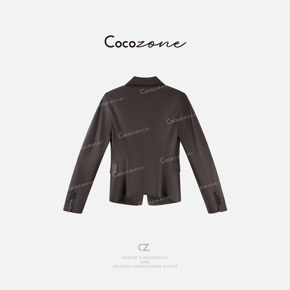 COCO ZONE 刘一一【100进口羊皮】小西装款优雅一粒扣皮衣CD2A1384