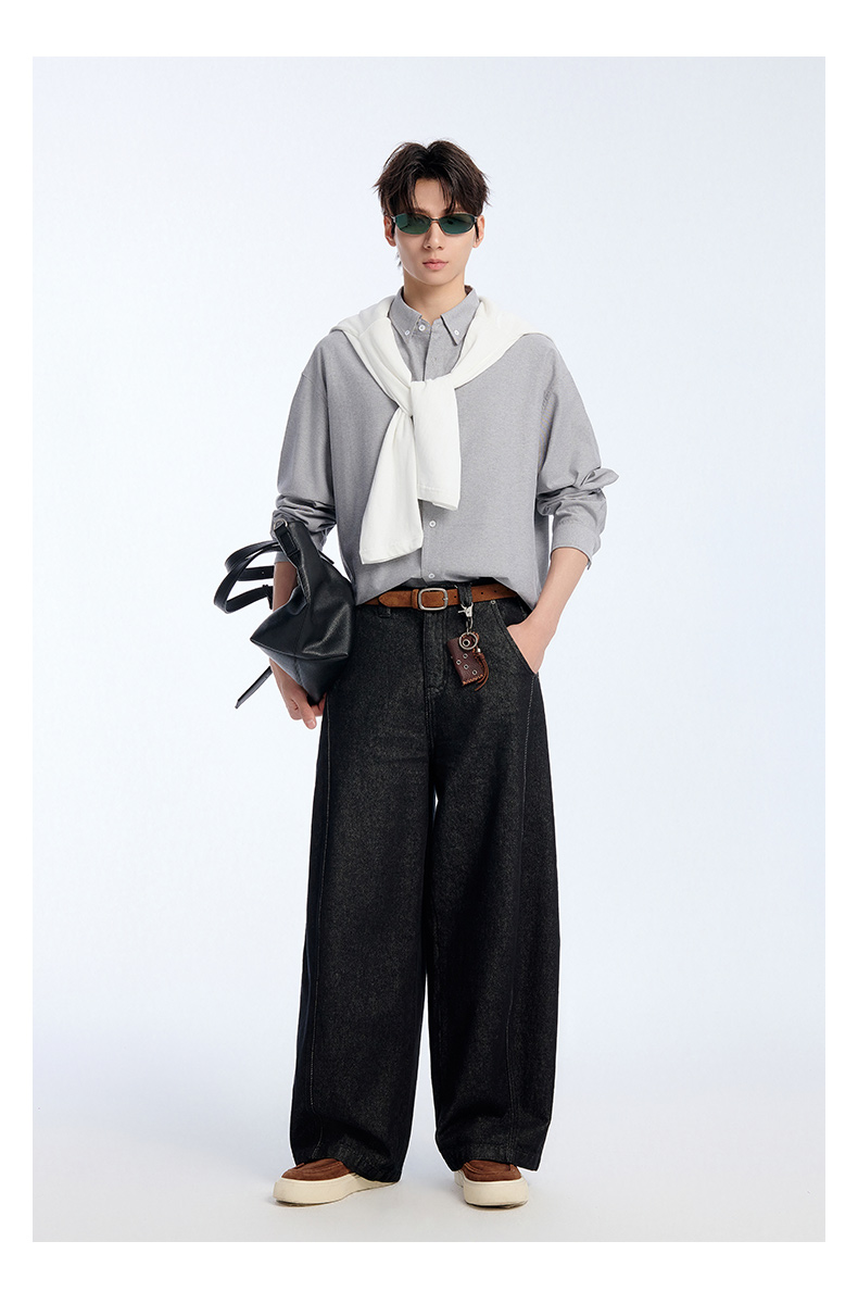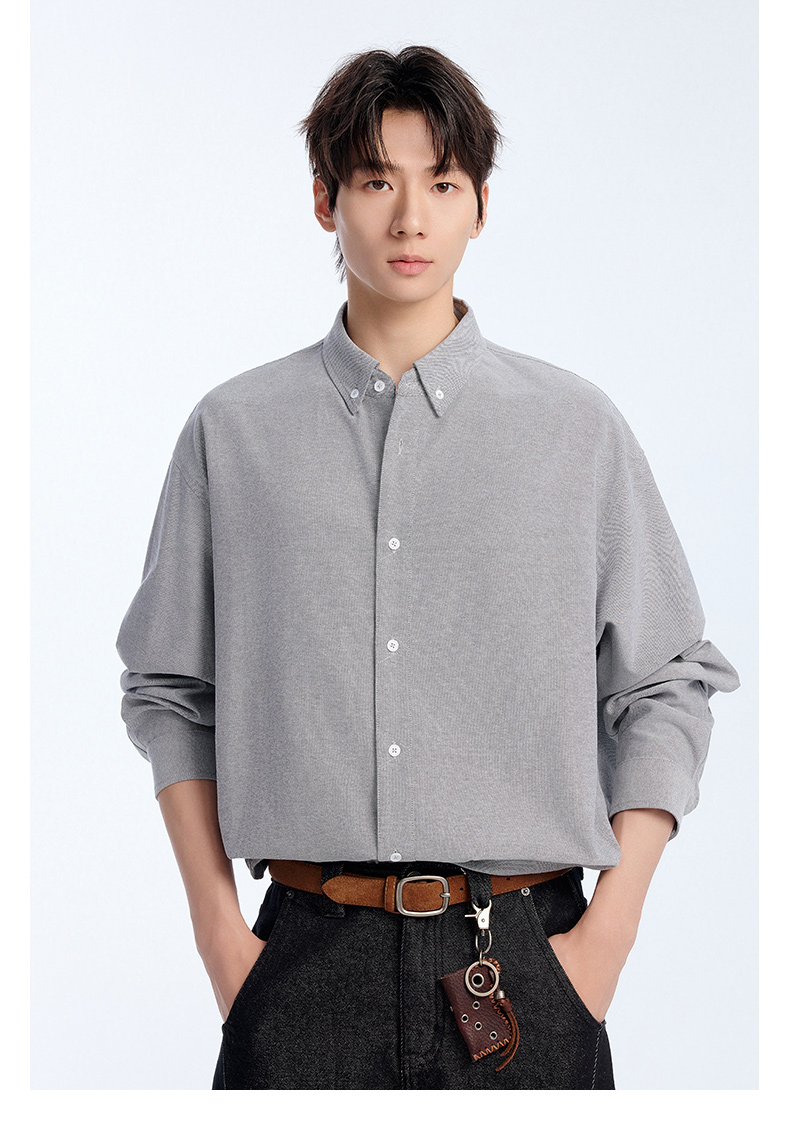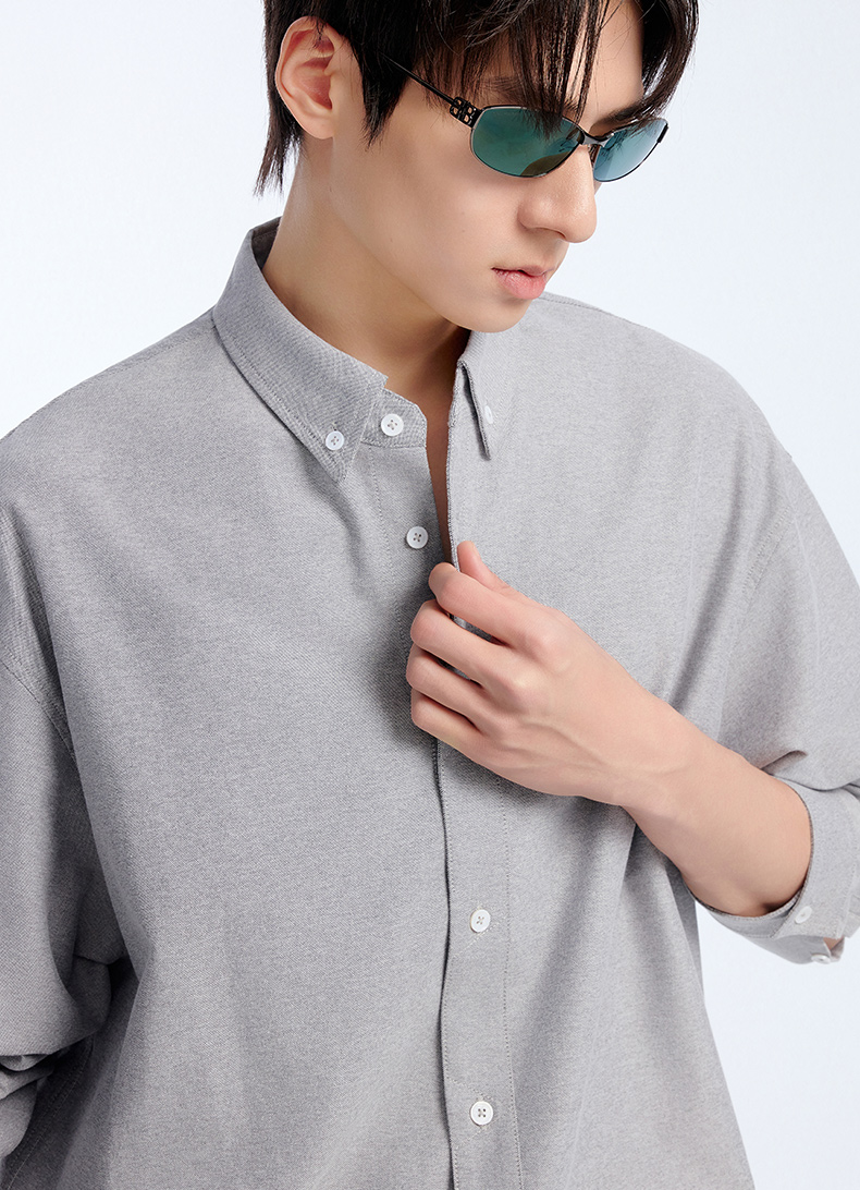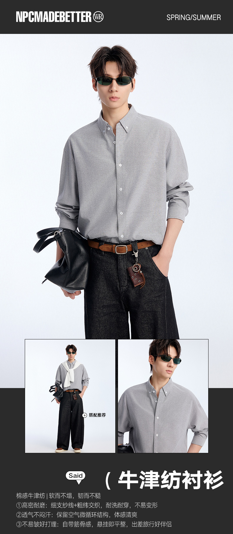 NPC潮牌棉混纺牛津纺长袖衬衫立体小方格挺括有型春上新NP61SH03