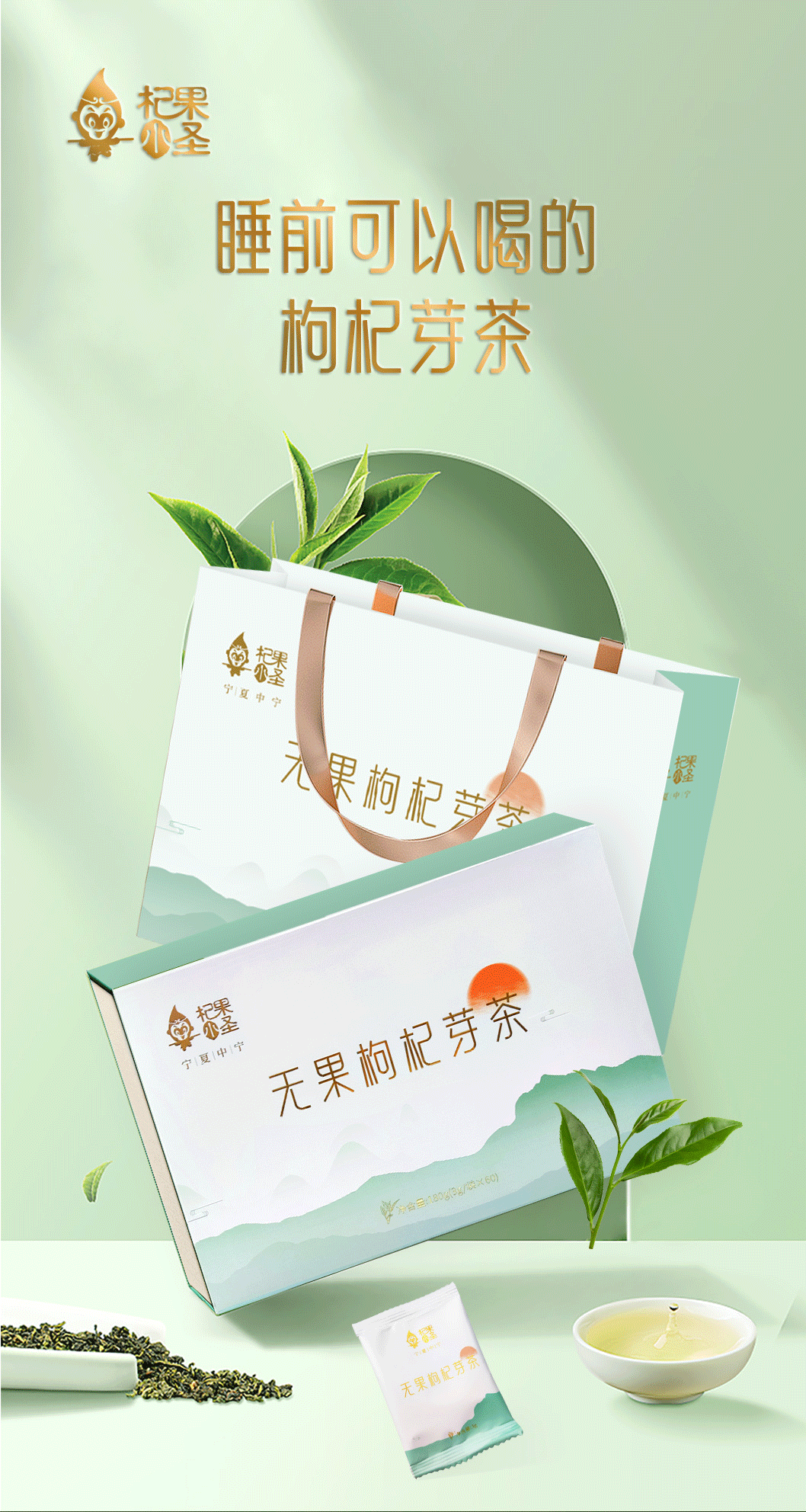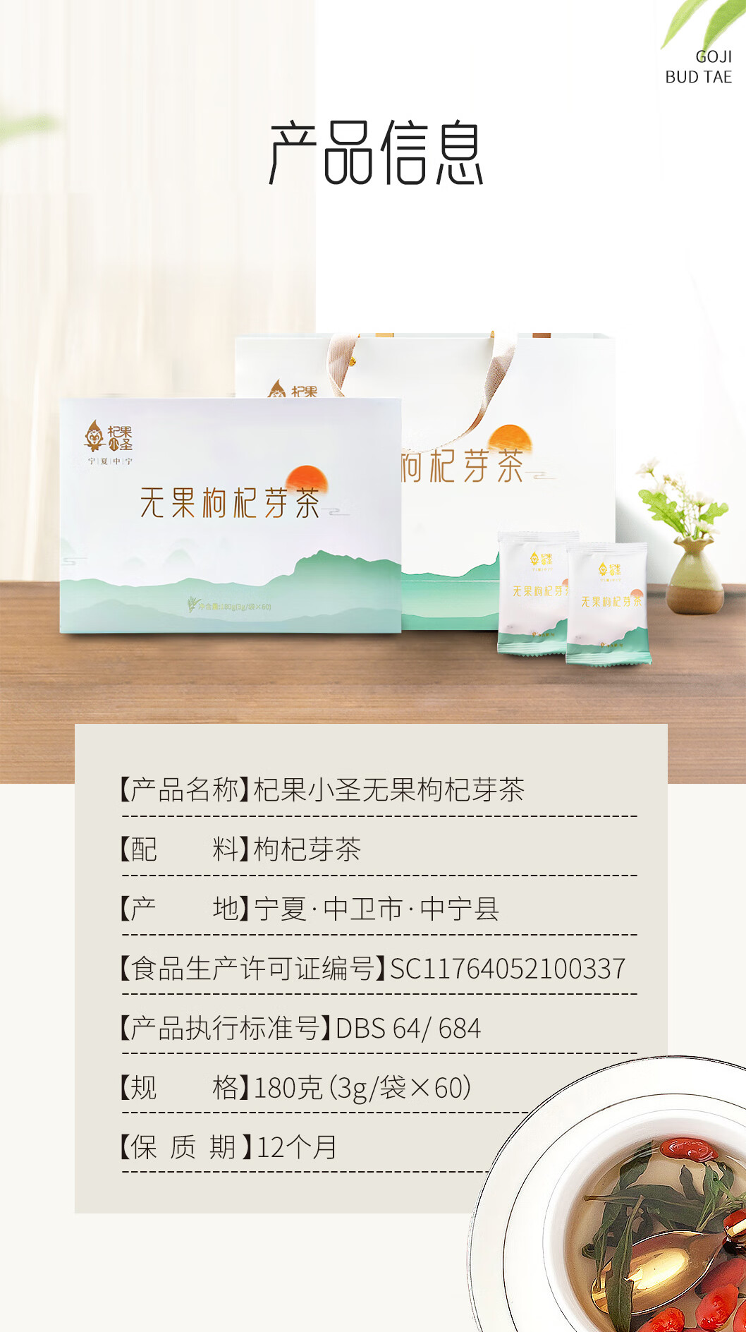 杞果小圣无果枸杞芽茶60袋装精品礼盒(3G*60袋)