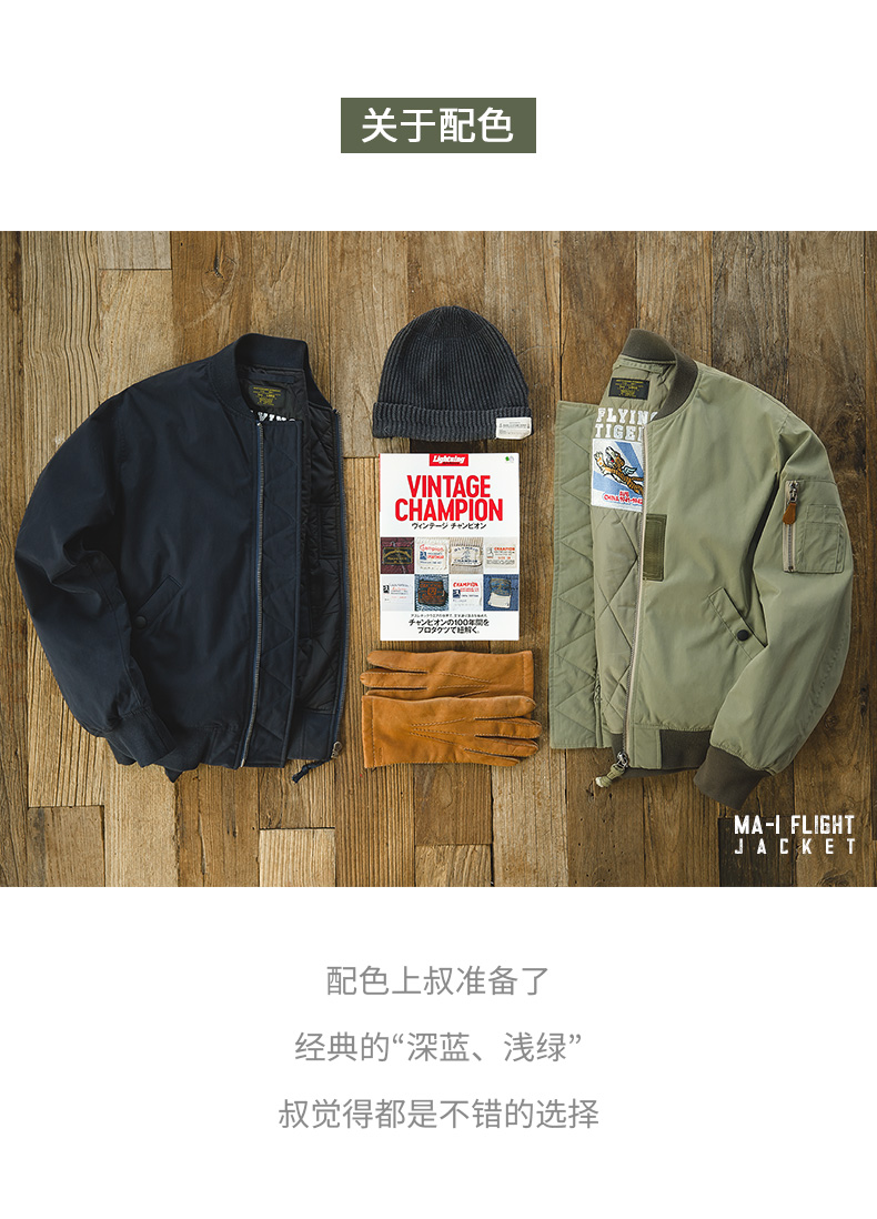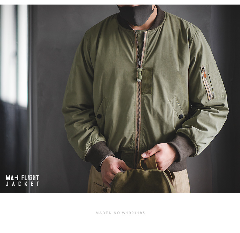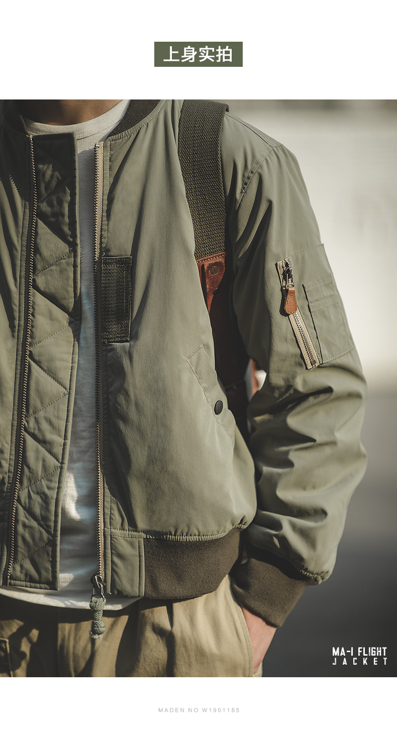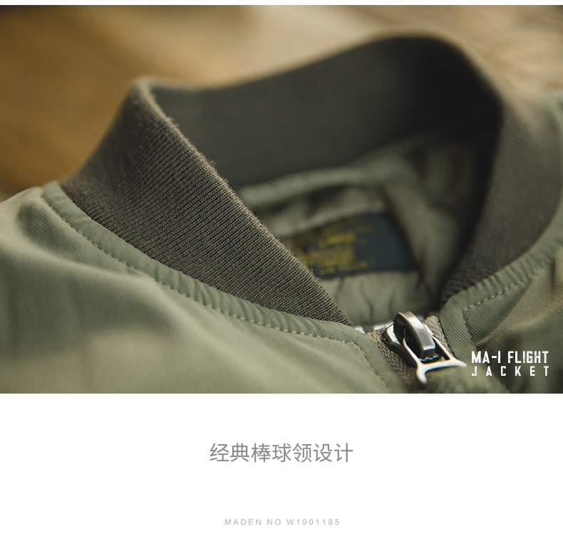 马登工装 美式复古MA-1飞行员夹克阿美咔叽棉衣棒球服立领外套男