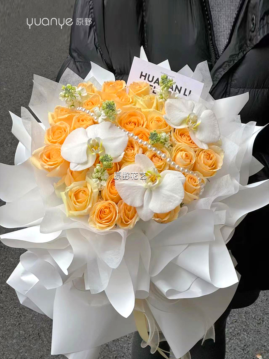 【三生三世】33支香槟蝴蝶兰混搭韩式花束