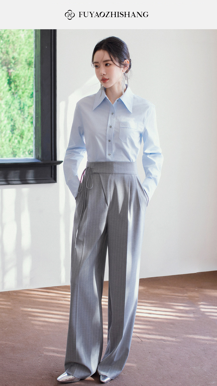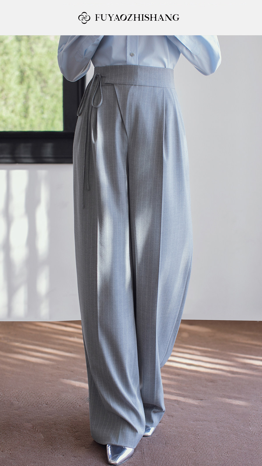 FUYAO扶摇直上 复古风高腰垂感直筒裤女2026新款老钱风极简西装裤