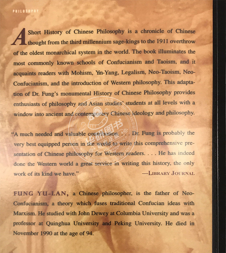 书名:A Short History of Chinese Philosophy中国哲学简史