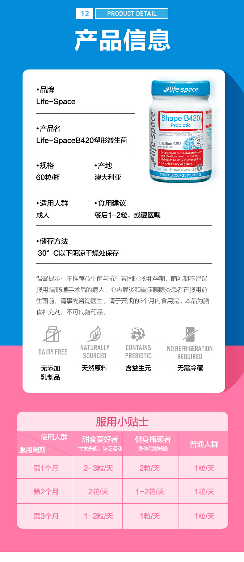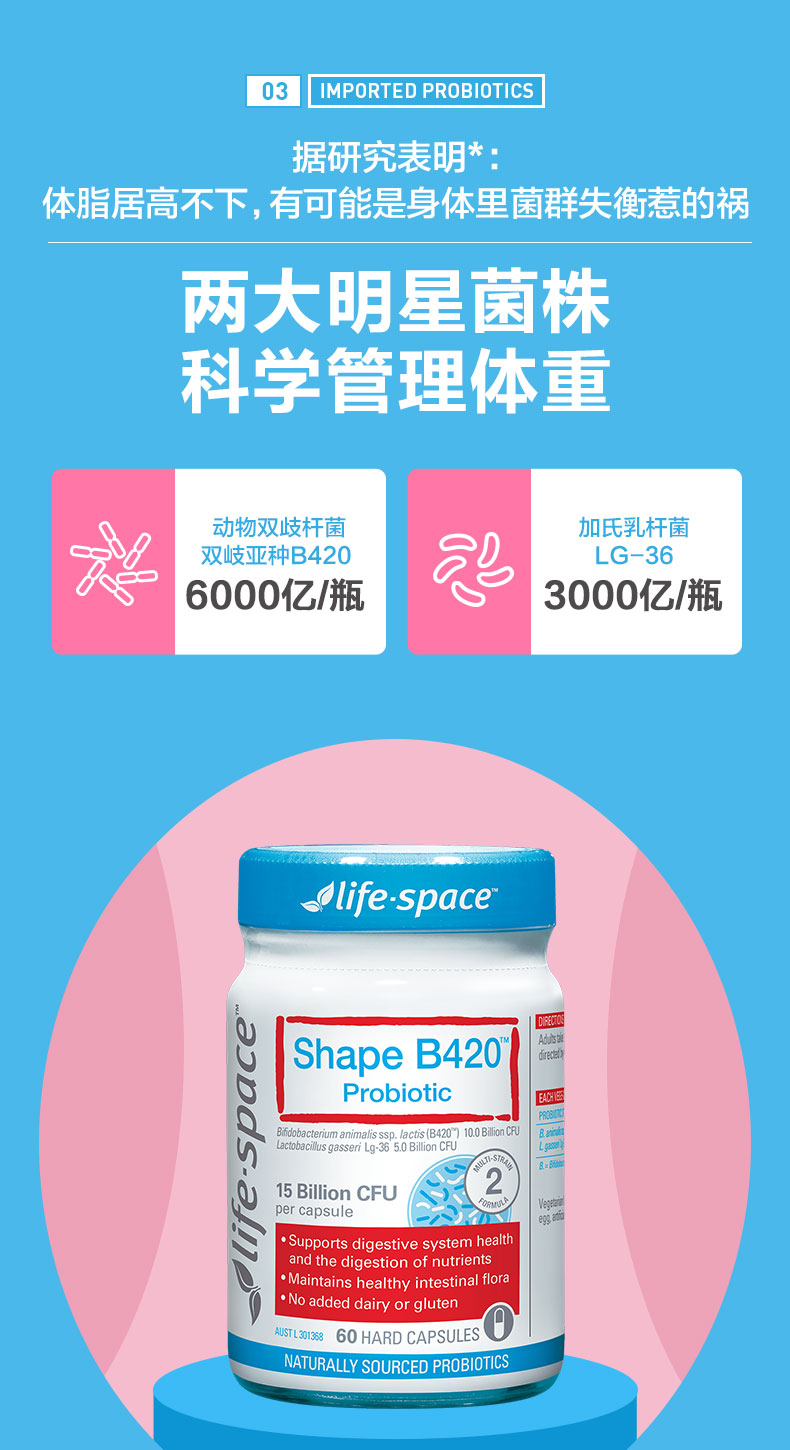 【保税仓/香港直邮】澳洲 Life Space B420塑身益生菌60粒