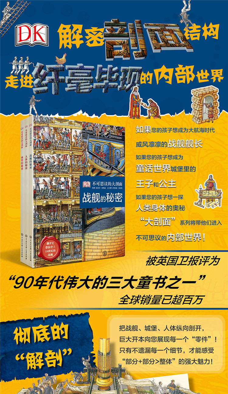 DK不可思议的大剖面 全3册 战舰的秘密+人体的秘密+城堡的秘密