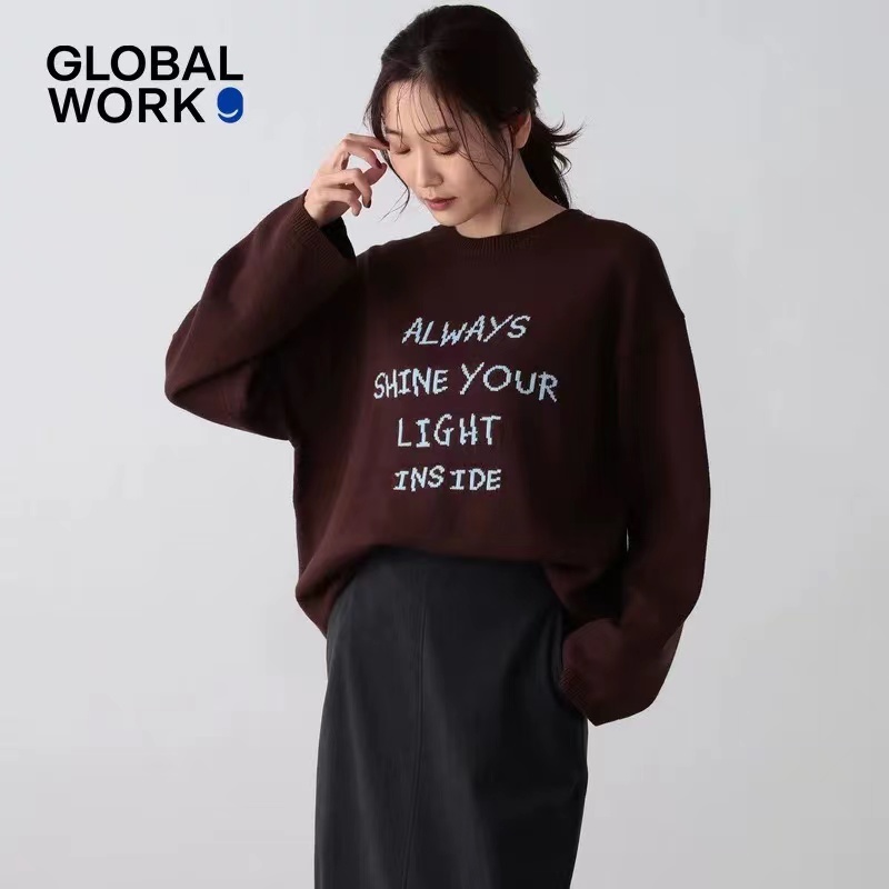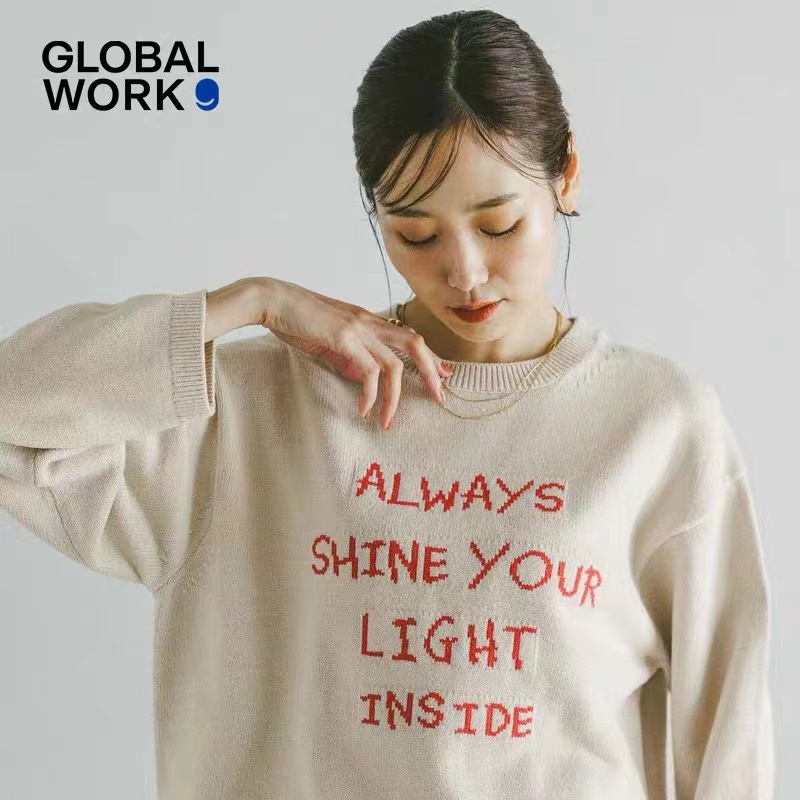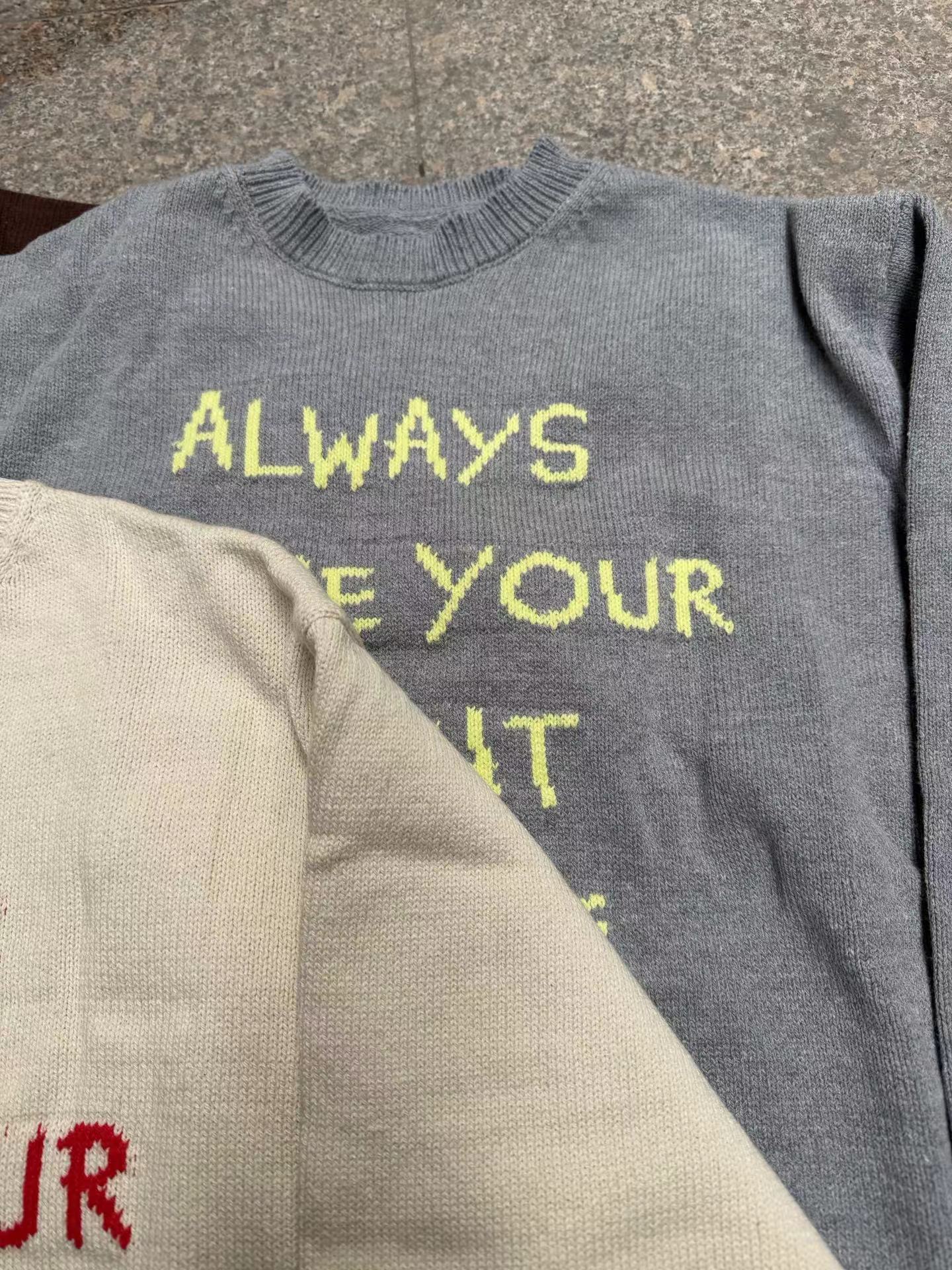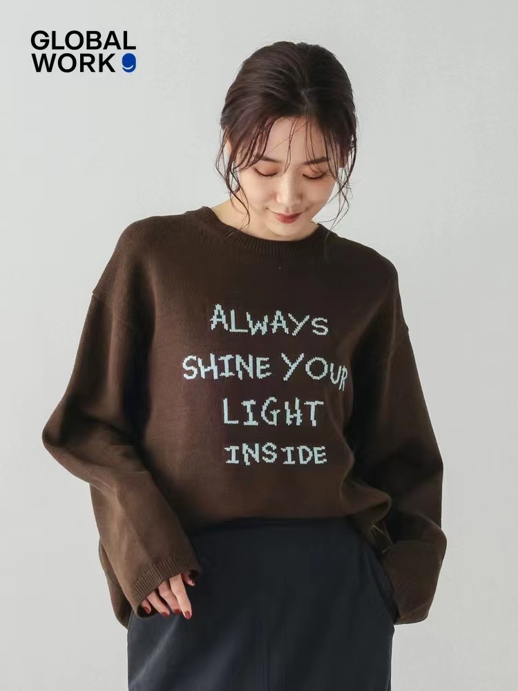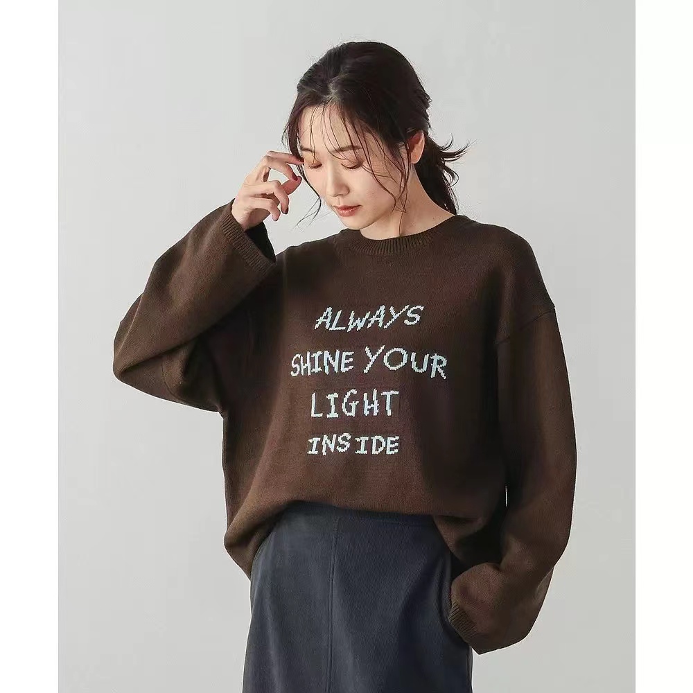 针织衫2026春季新款ins风字母圆领宽松毛衣 提花毛衣