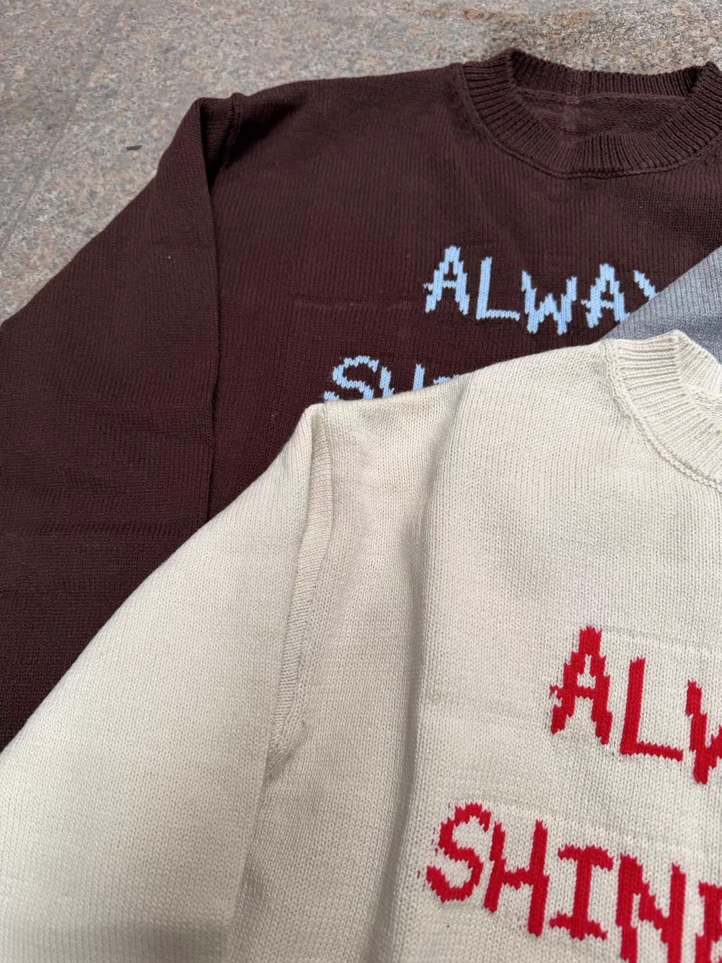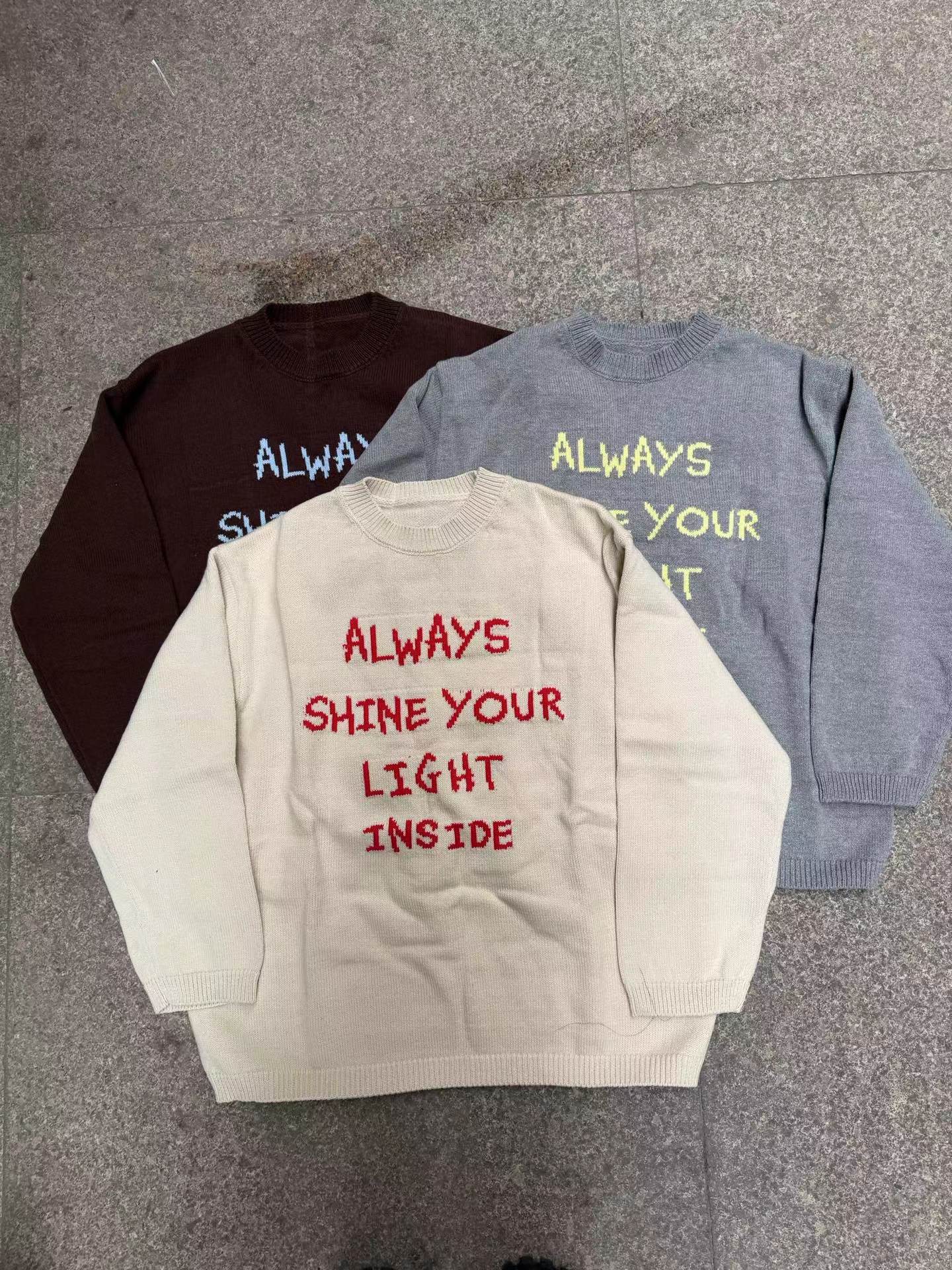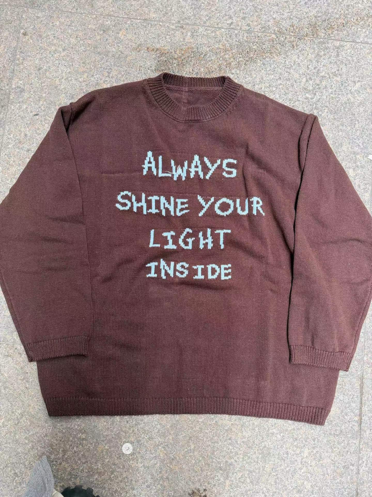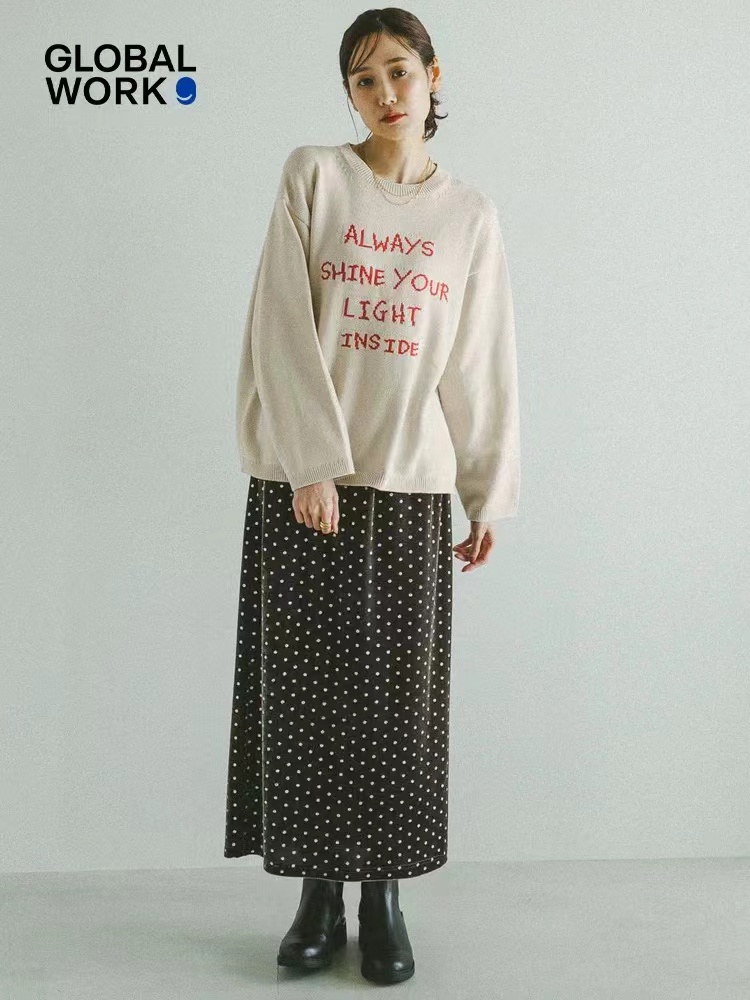针织衫2026春季新款ins风字母圆领宽松毛衣 提花毛衣