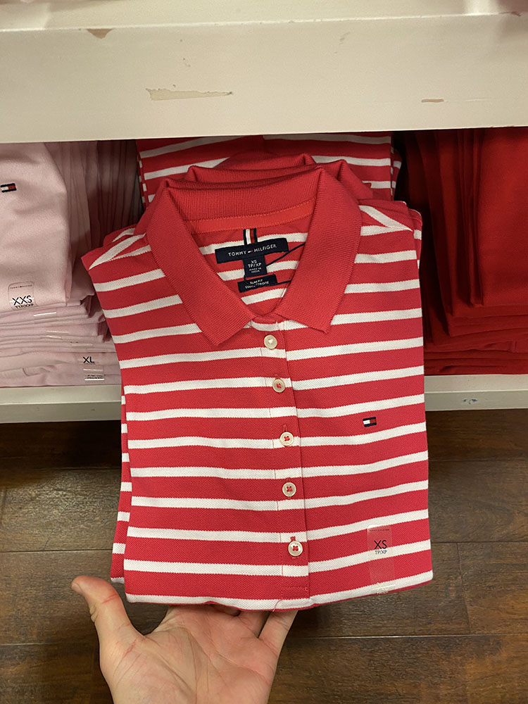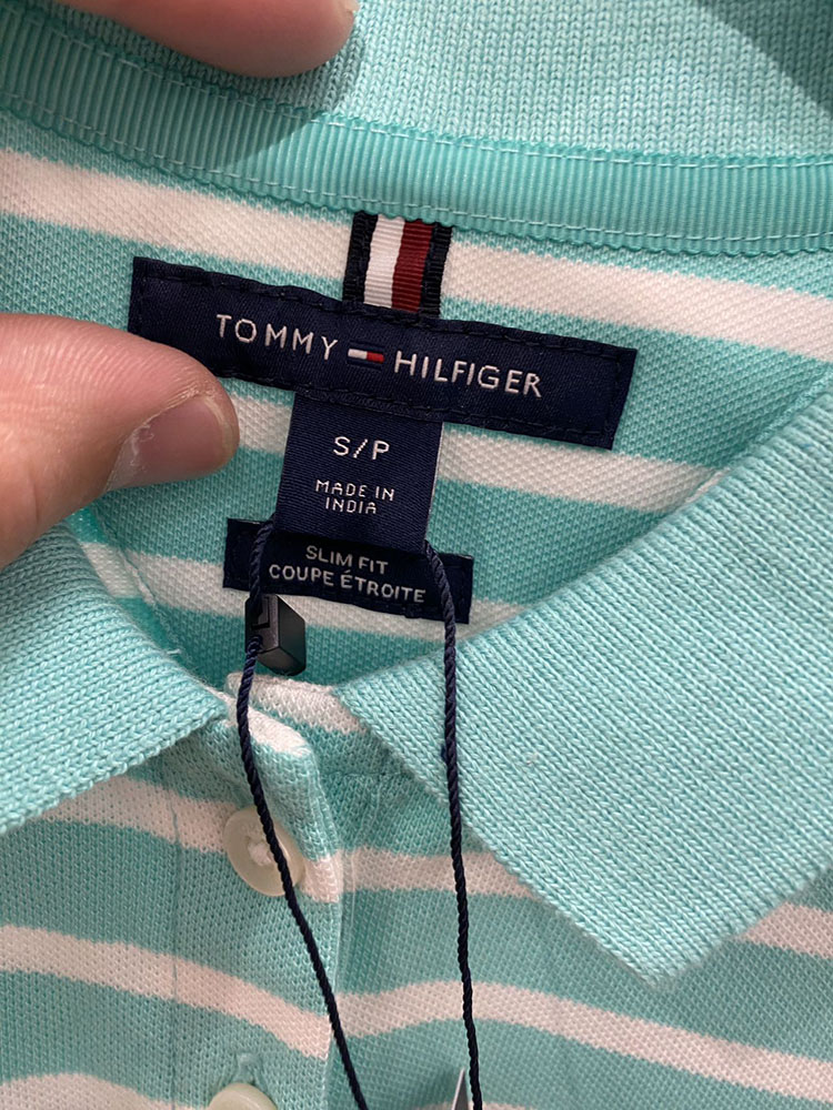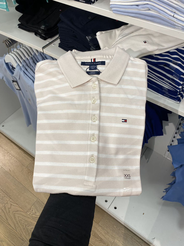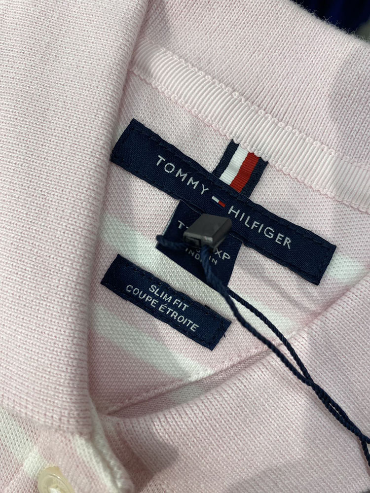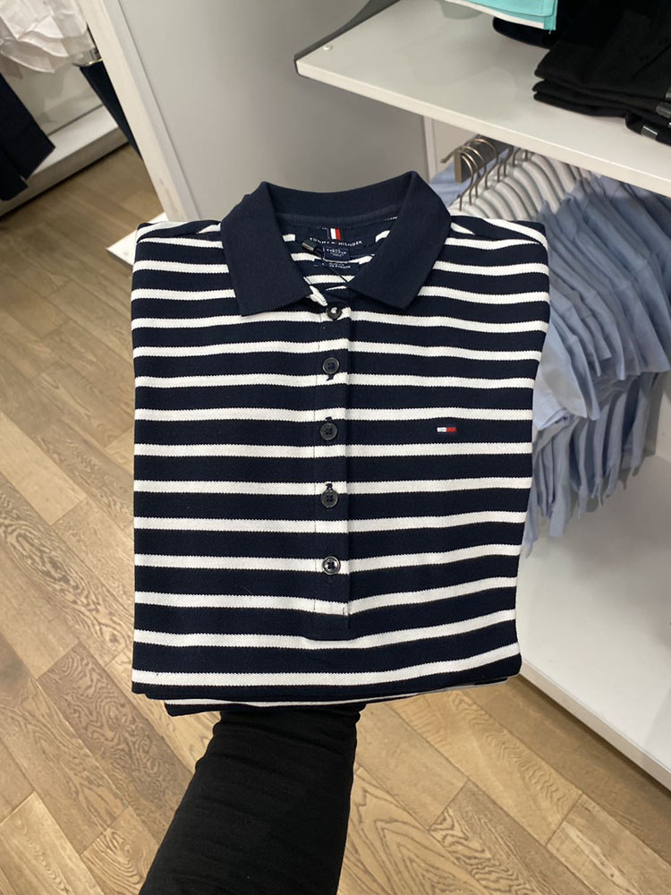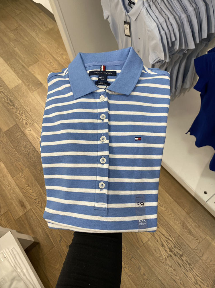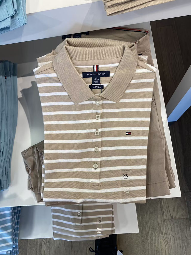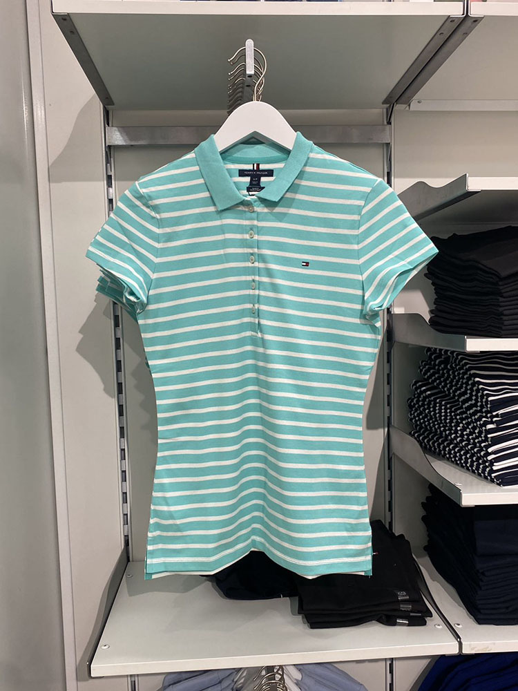 Tommy Hilfiger/汤米 女士五粒扣修身刺绣小标条纹透气短袖POLO衫