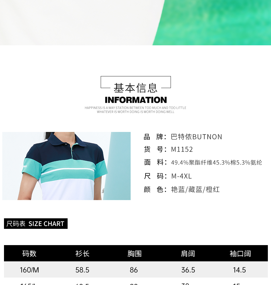 W1152butnon巴特侬女子运动短袖透气棉质休闲拼色春夏新款 商品图8