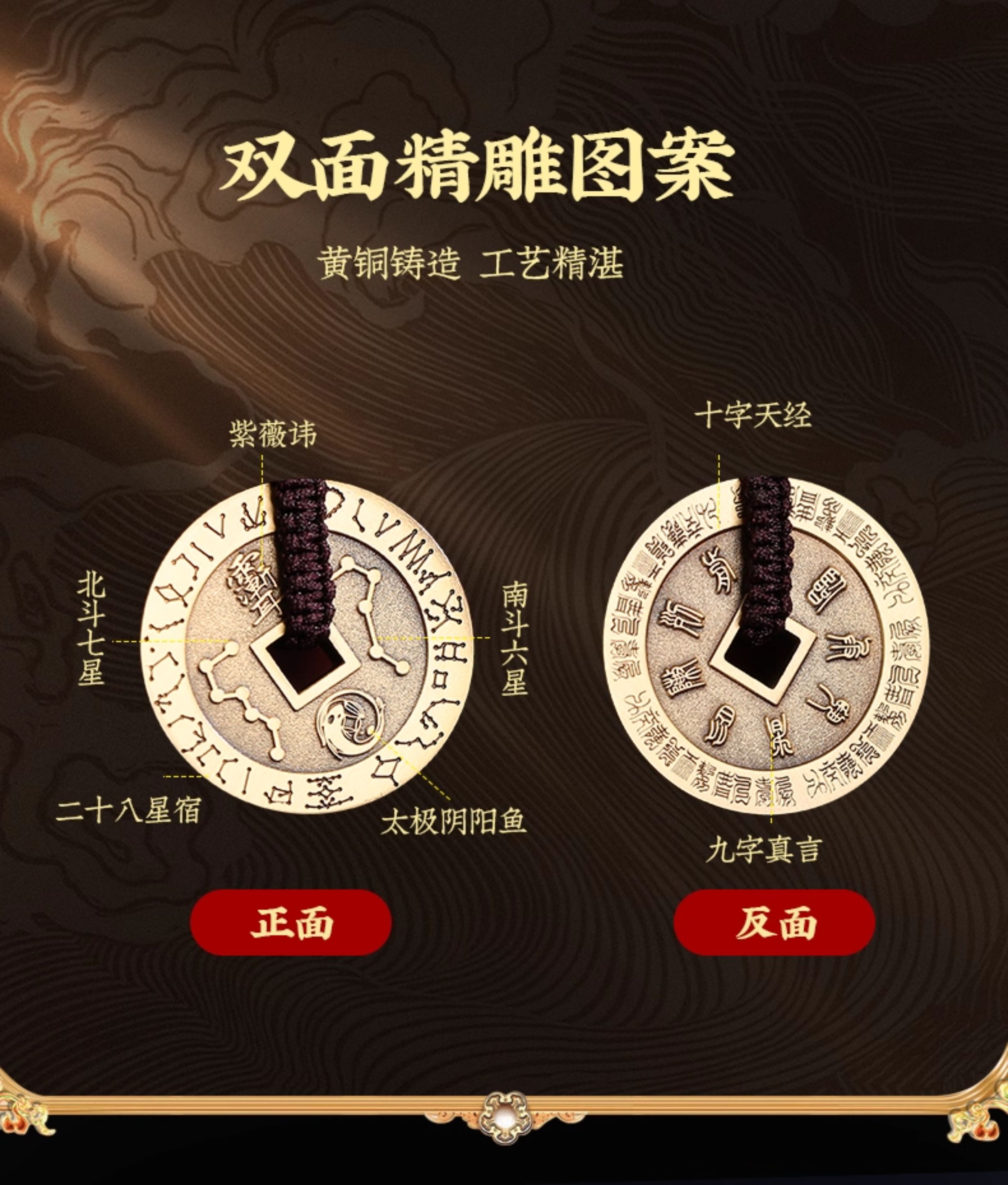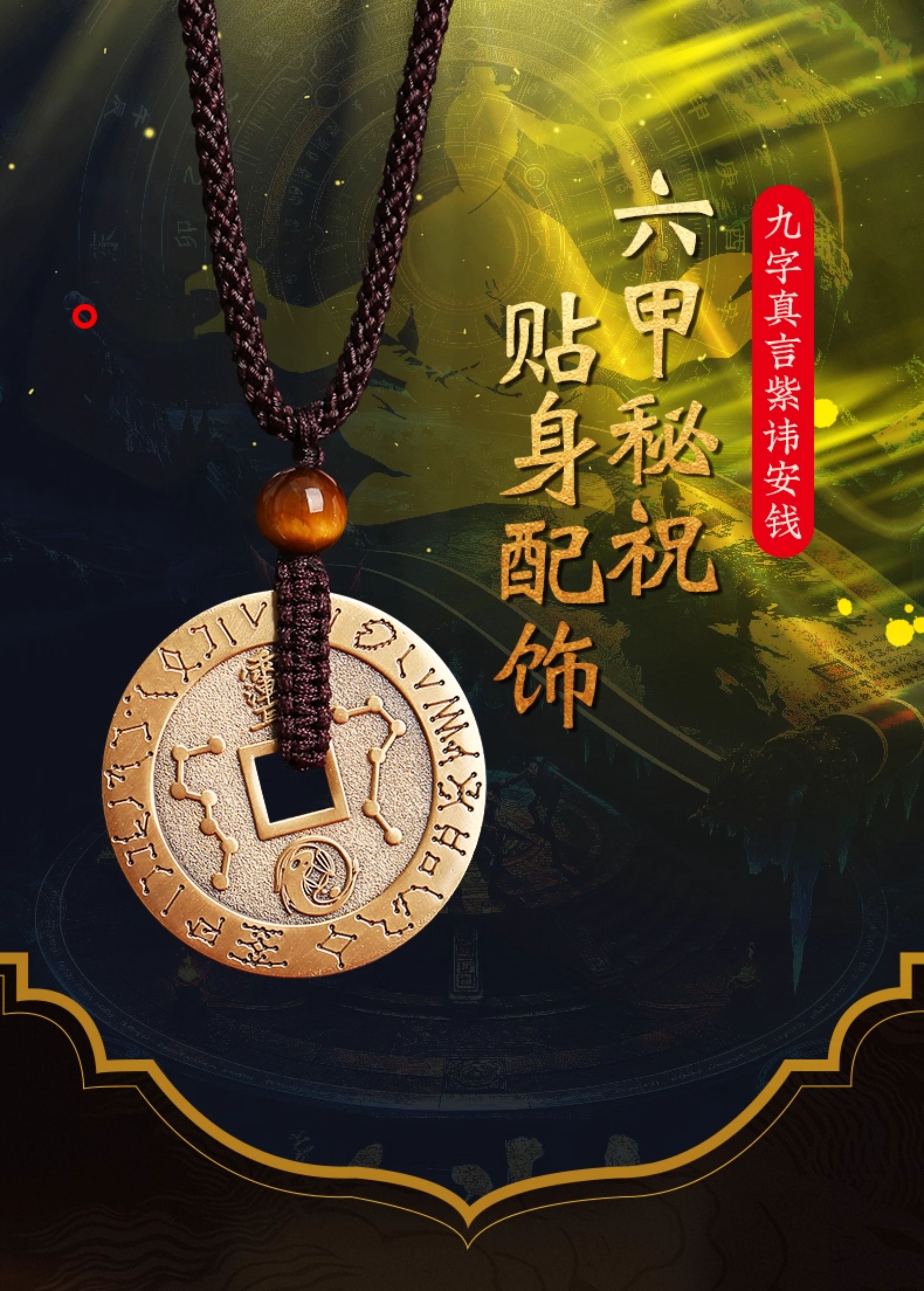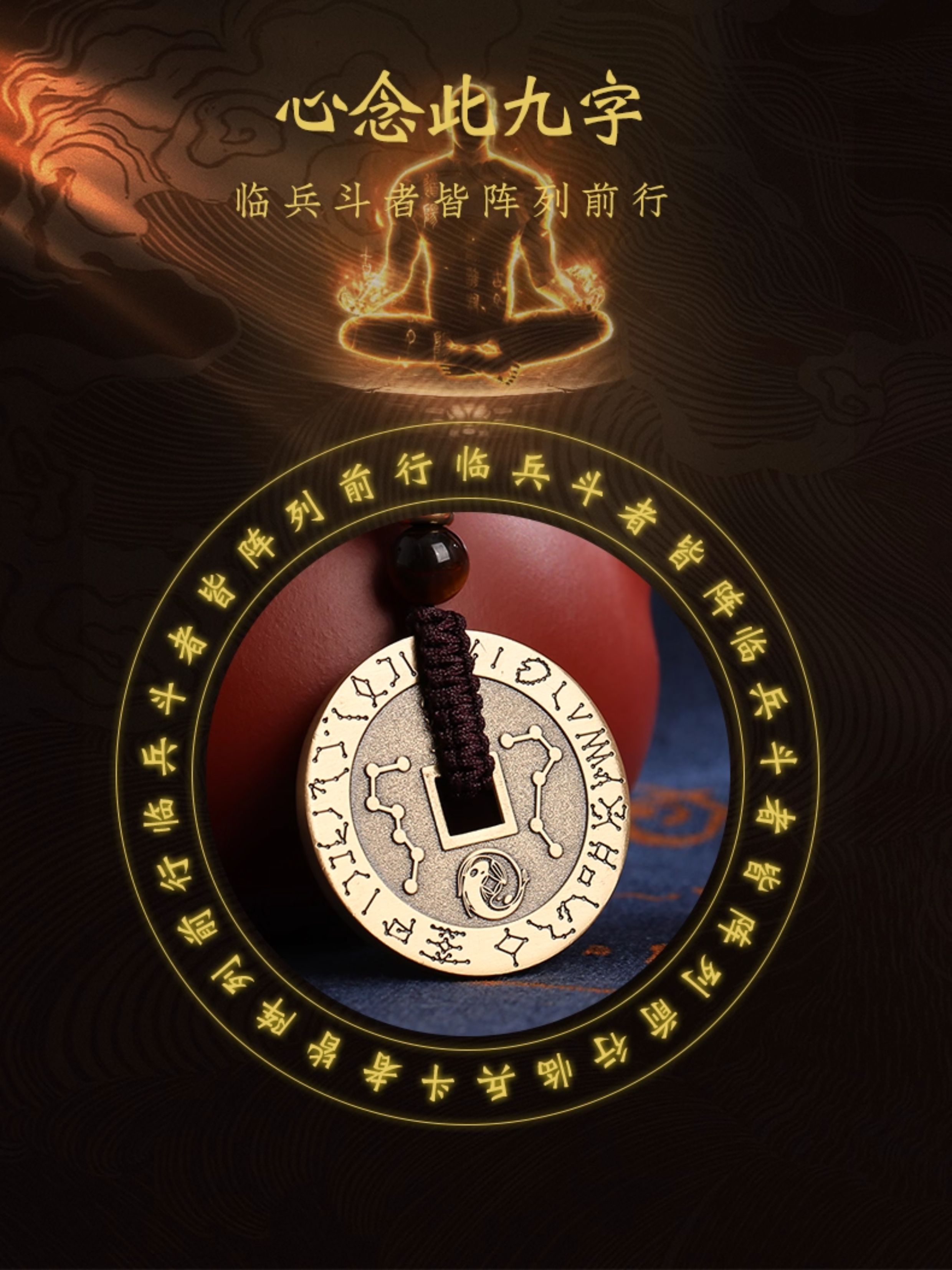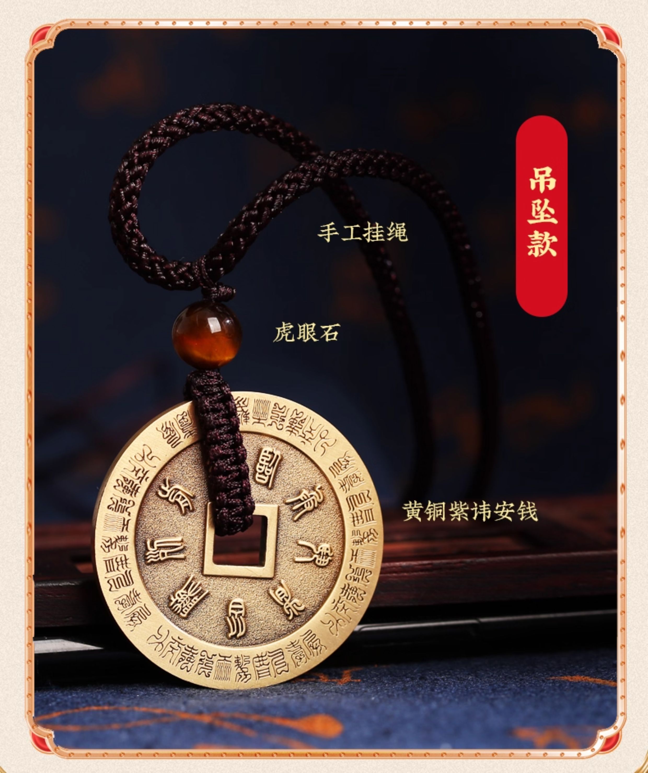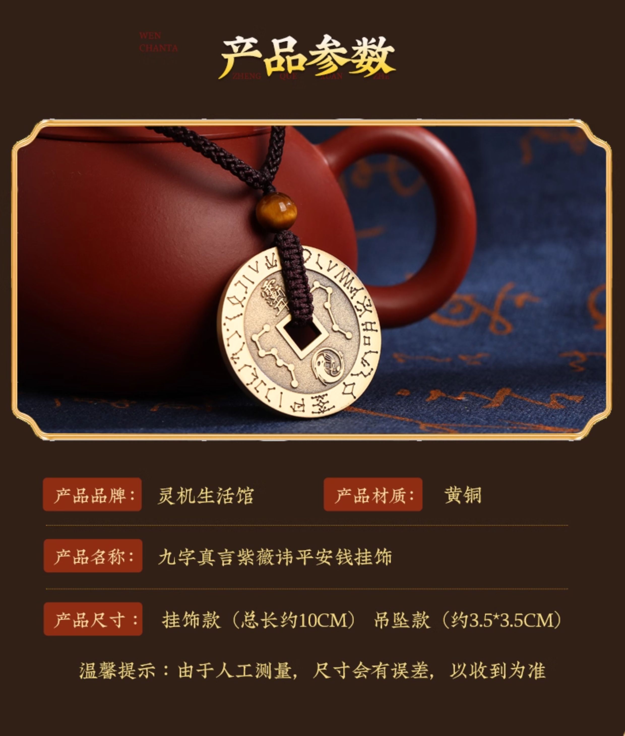 【祈愿吉品】九字真言紫讳安钱吊坠 男女