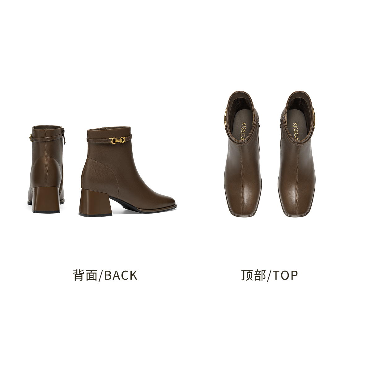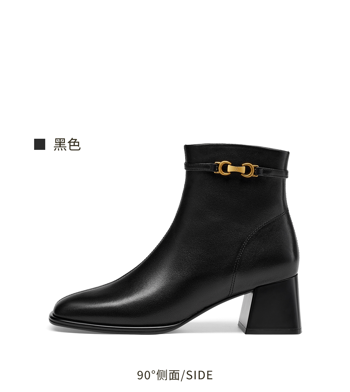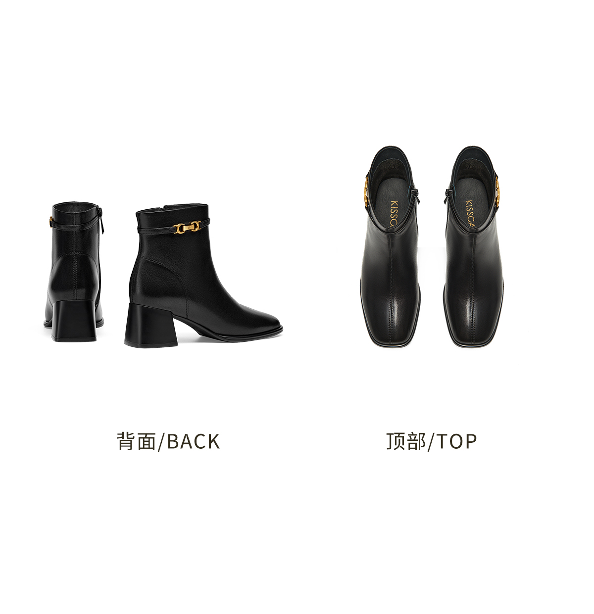 【云粉节】BF楼KISSCAT接吻猫25冬新老钱质感时装靴方头黑色高跟靴粗跟短靴女KA65788-10吊牌价1599活动价899