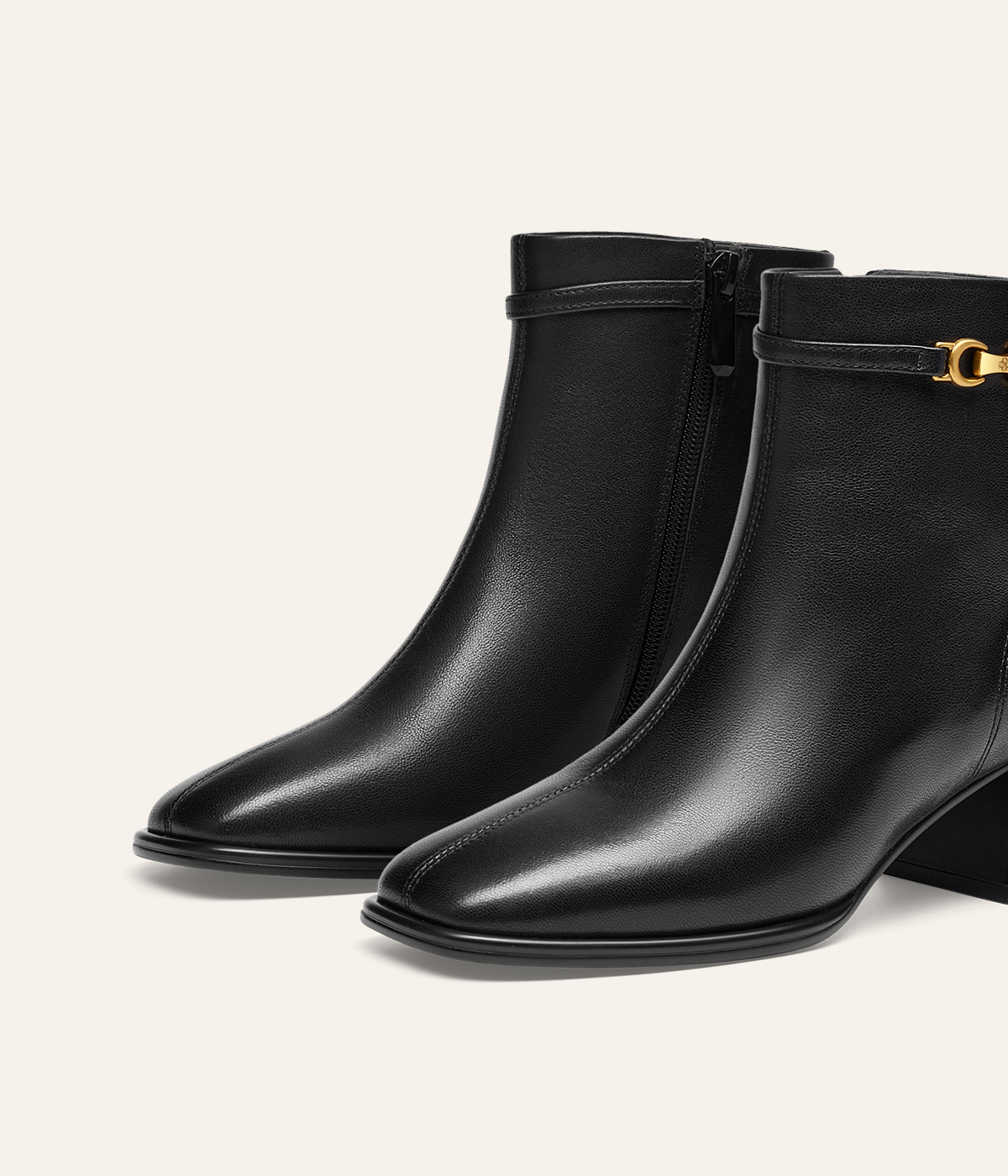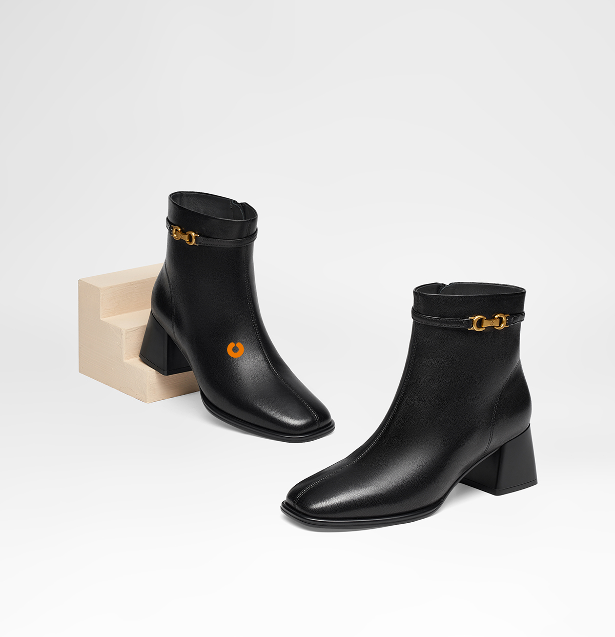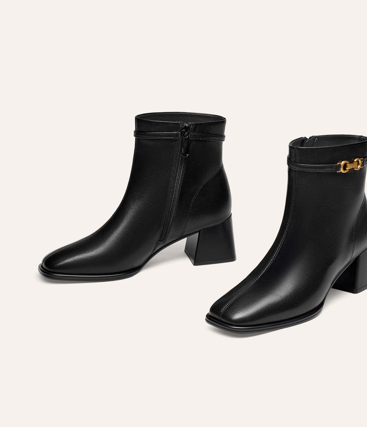 【云粉节】BF楼KISSCAT接吻猫25冬新老钱质感时装靴方头黑色高跟靴粗跟短靴女KA65788-10吊牌价1599活动价899