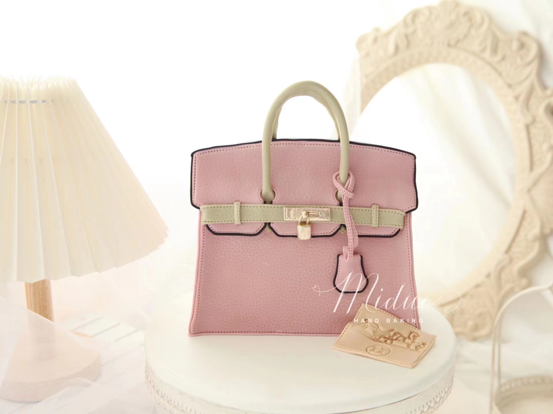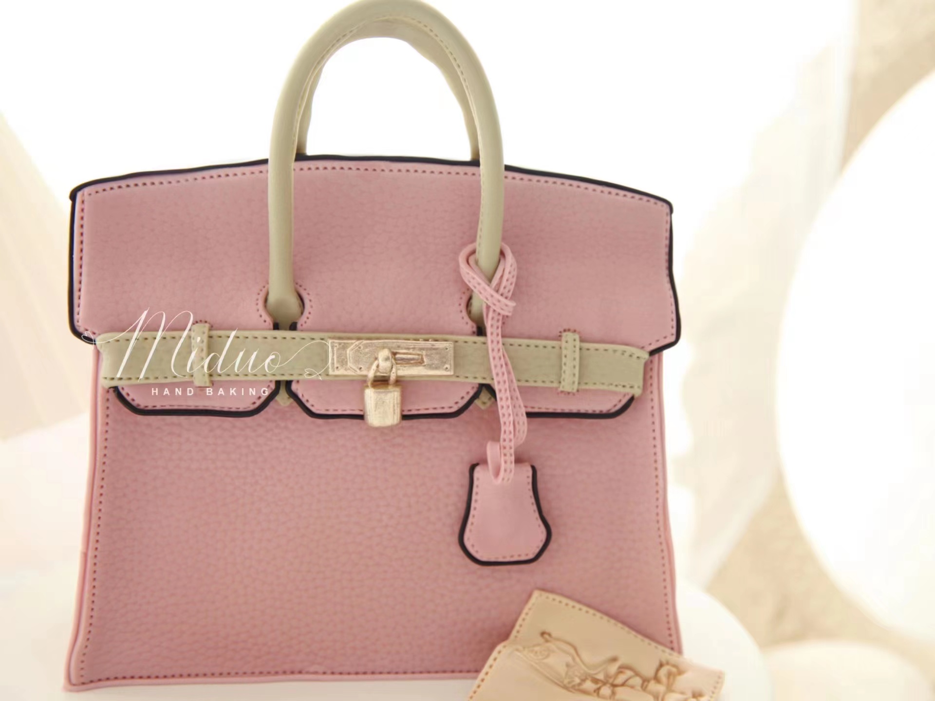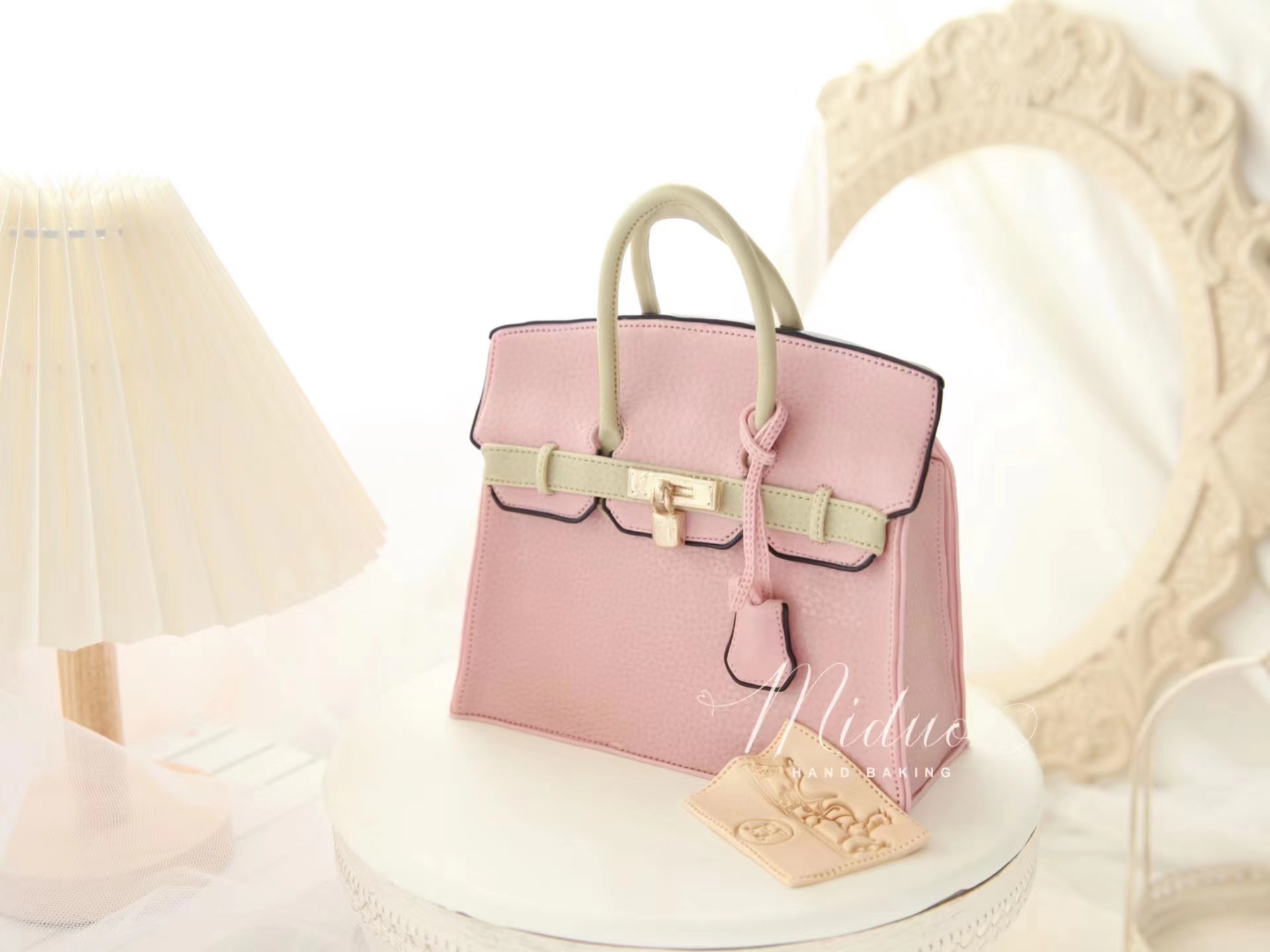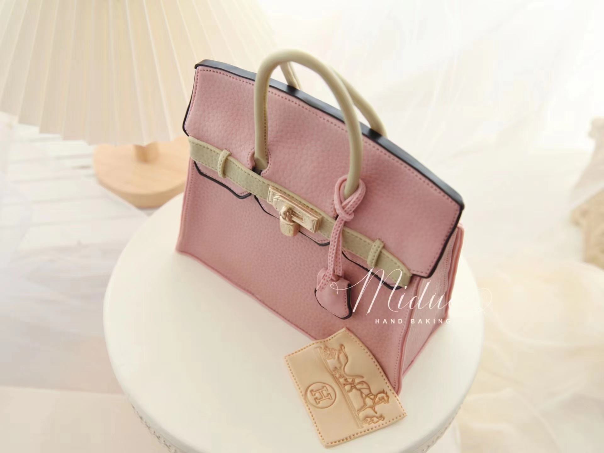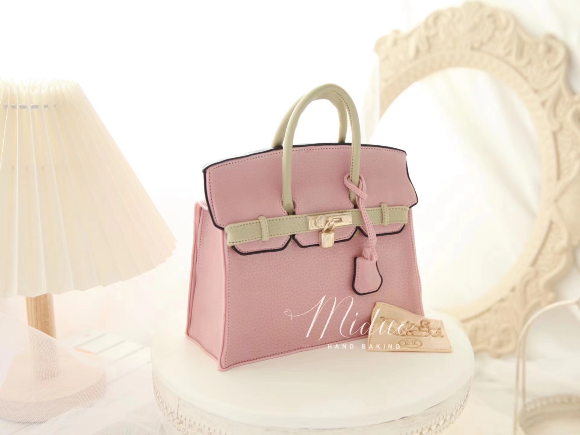 女士款 Hermes爱马仕包包 复古粉色手提袋 奢侈品 立体包包 高端 手工翻糖蛋糕(需要提前2-3天预约下单,详情可以咨询客服)