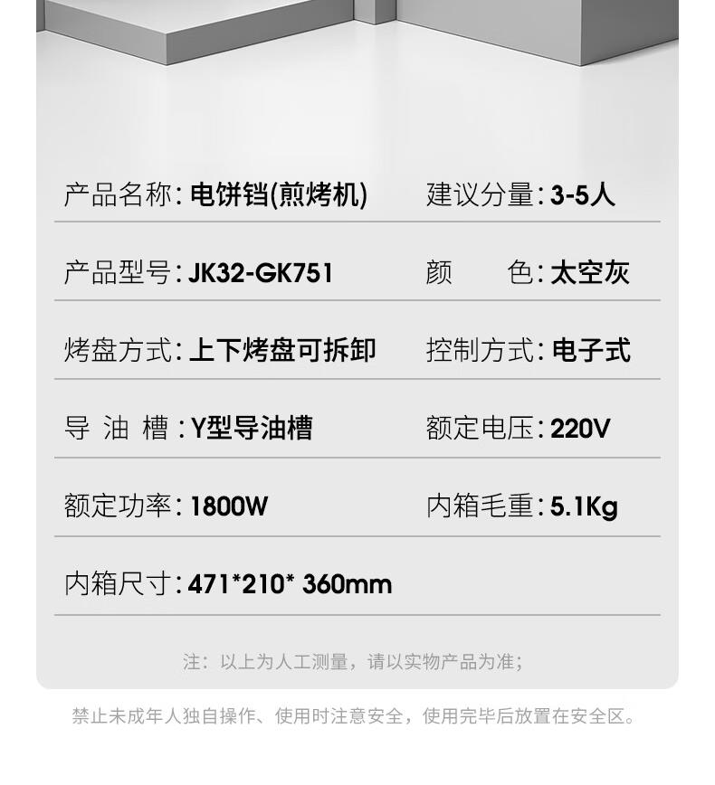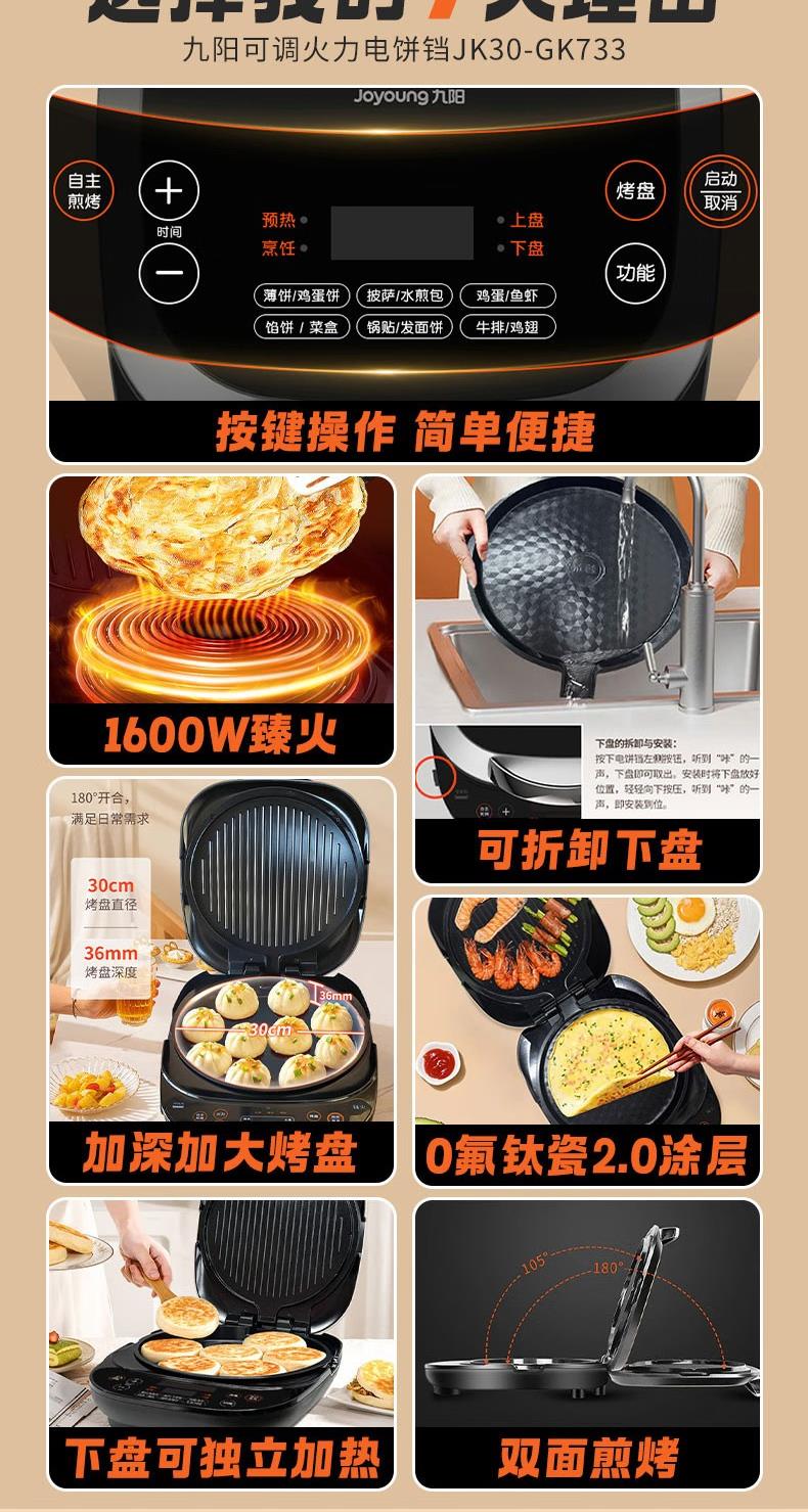 九阳电饼铛0氟钛瓷双面加热煎烤机家用薄饼机烙饼锅电煎锅煎饼机