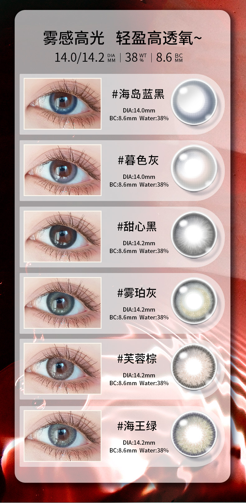 【特价款】F03-F.VISION 半年抛 1片 14.2mm 38%含水