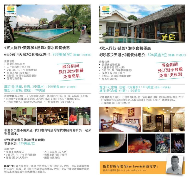 4天3晚2个潜水日 | USD276 | USD345 | USD415 | USD460 |