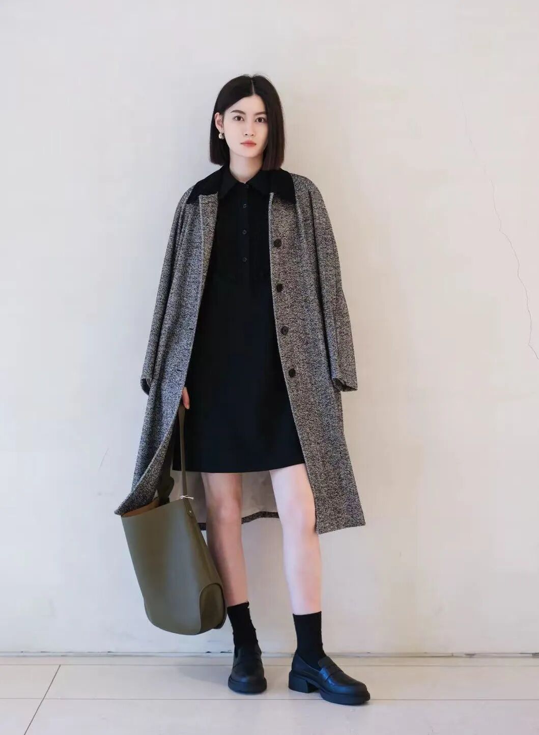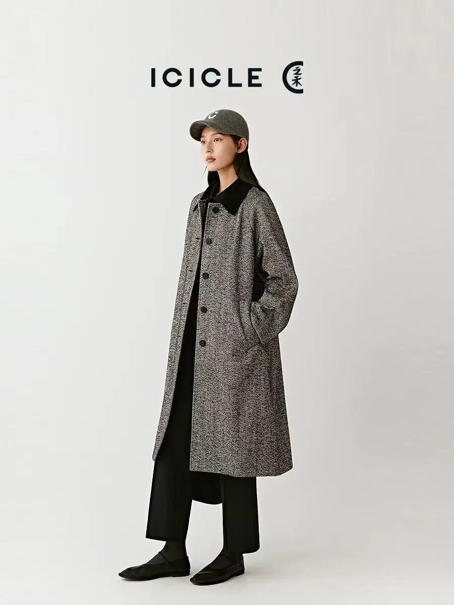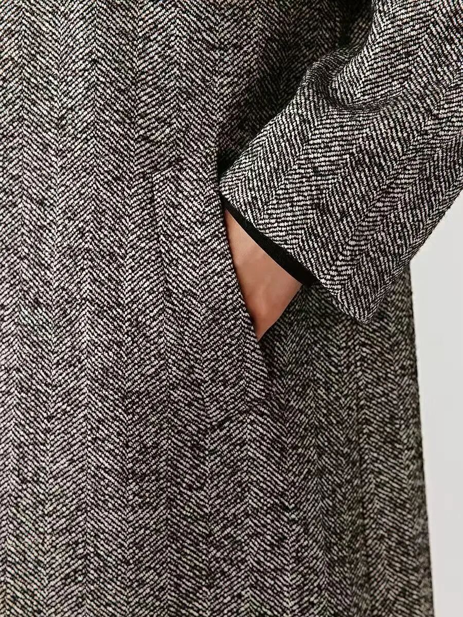 小禾人字纹羊毛大衣