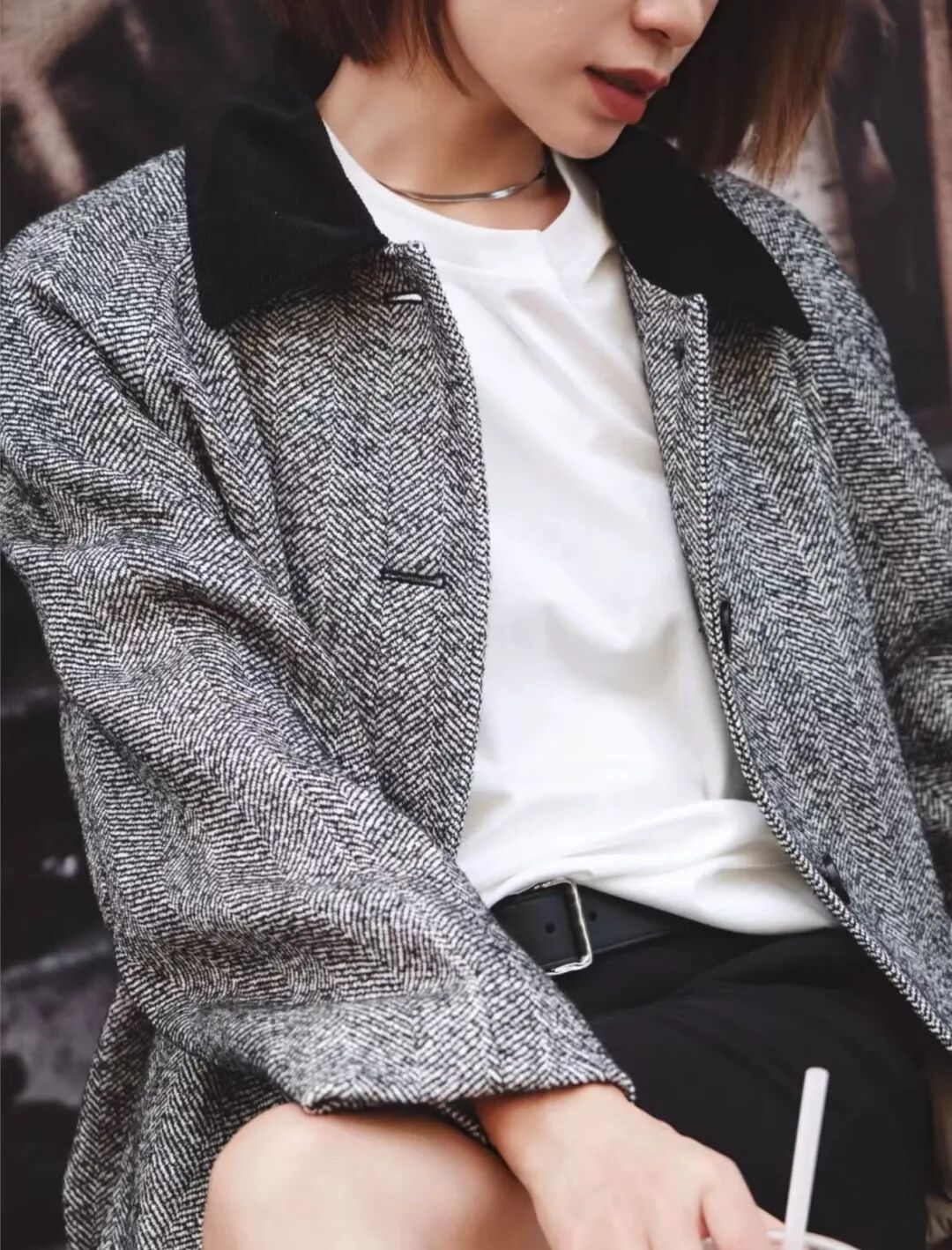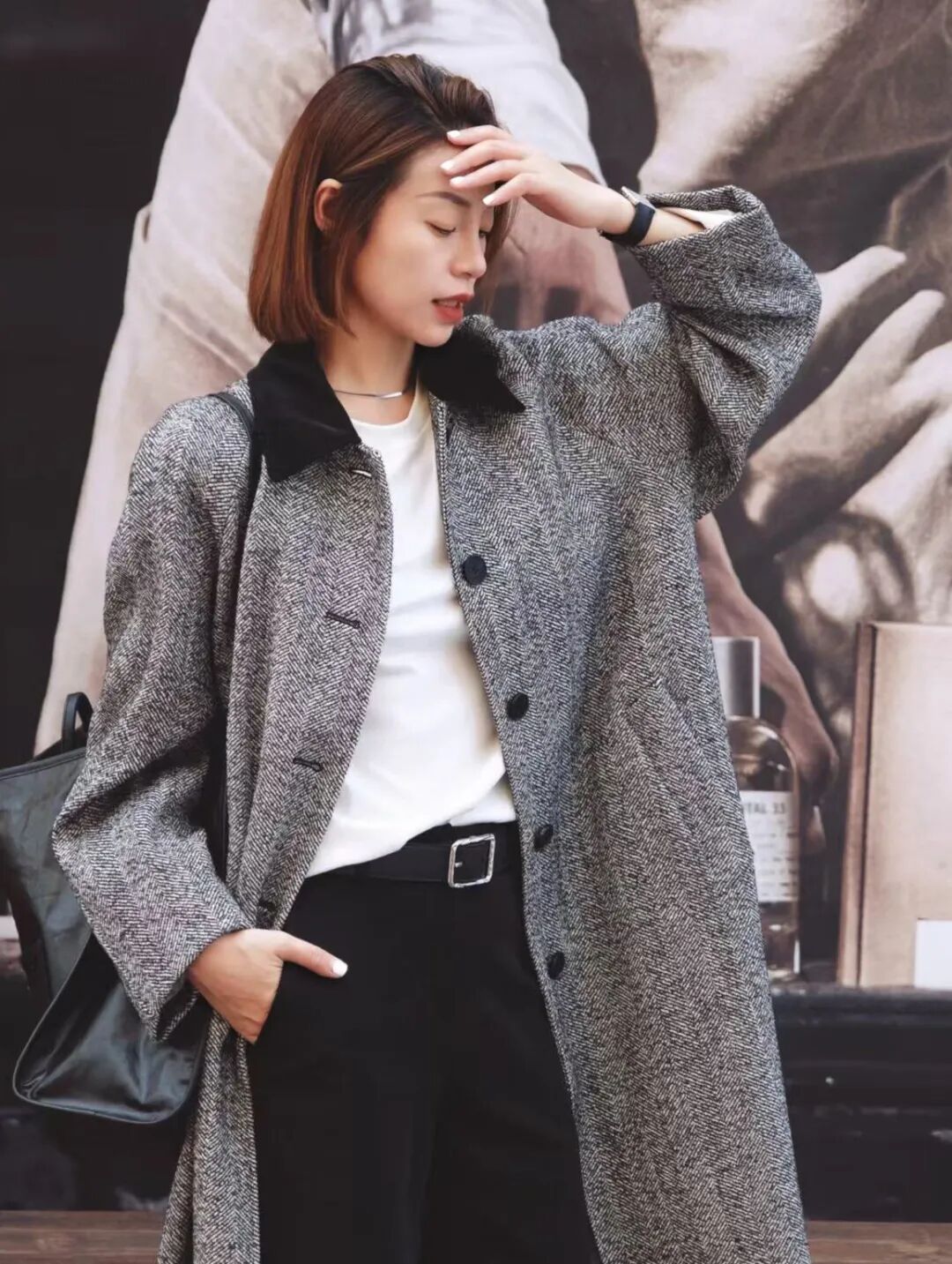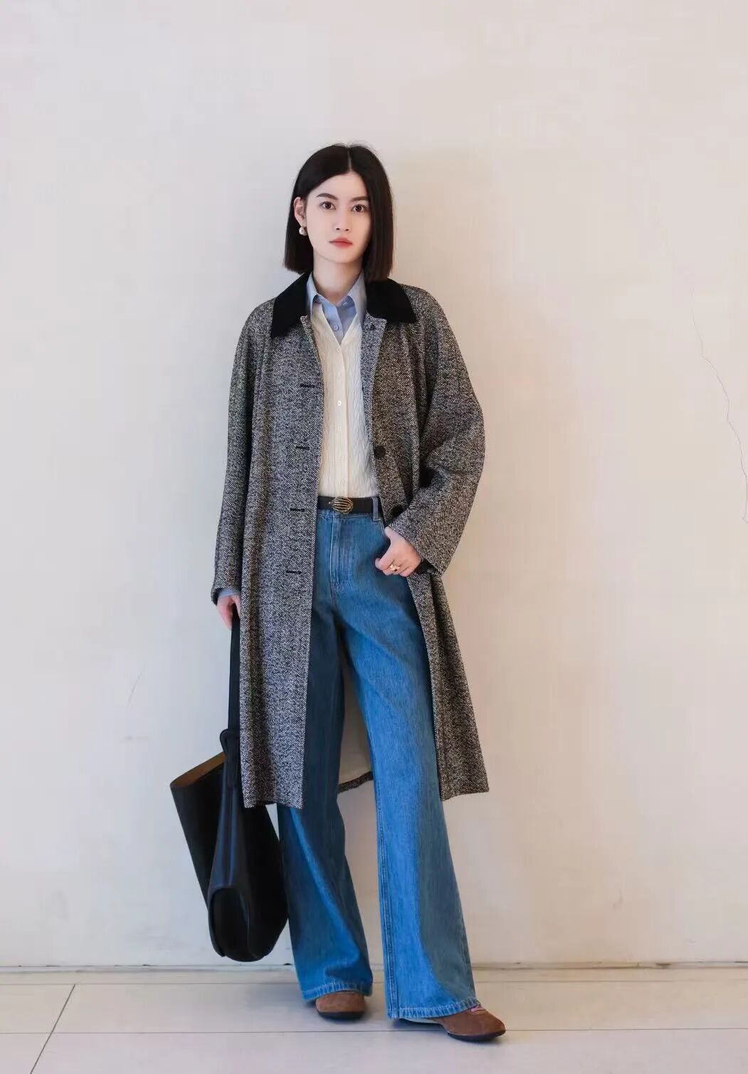 小禾人字纹羊毛大衣