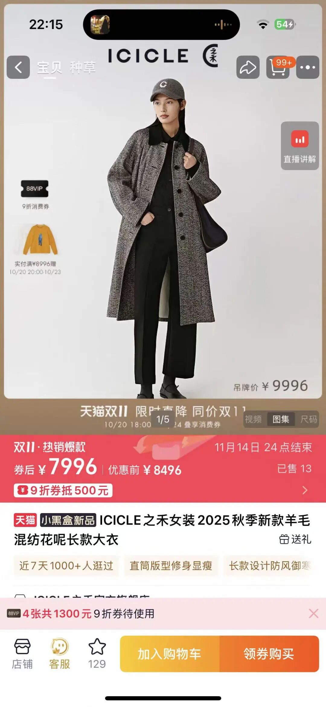 今天先来第一款,超级实穿、性价比超级高的——之禾人字纹羊毛大衣,91%进口绵羊毛,9%锦纶,官网正在售,双十一折后7996!