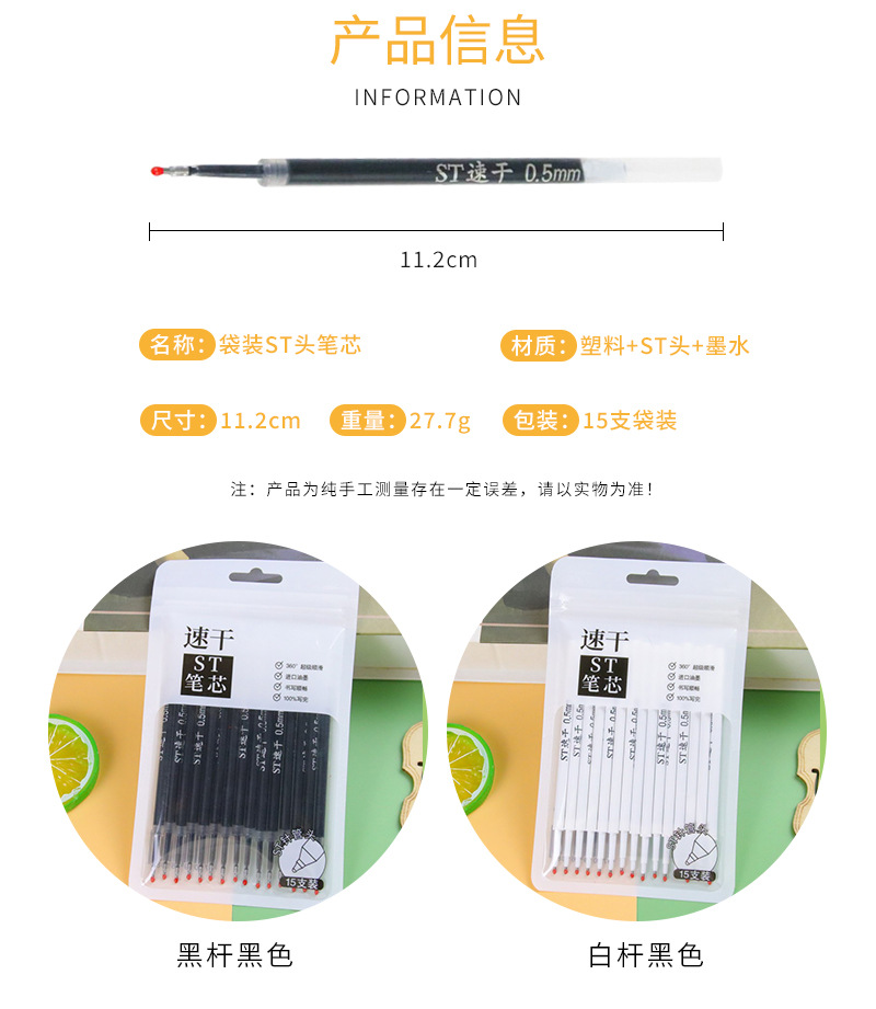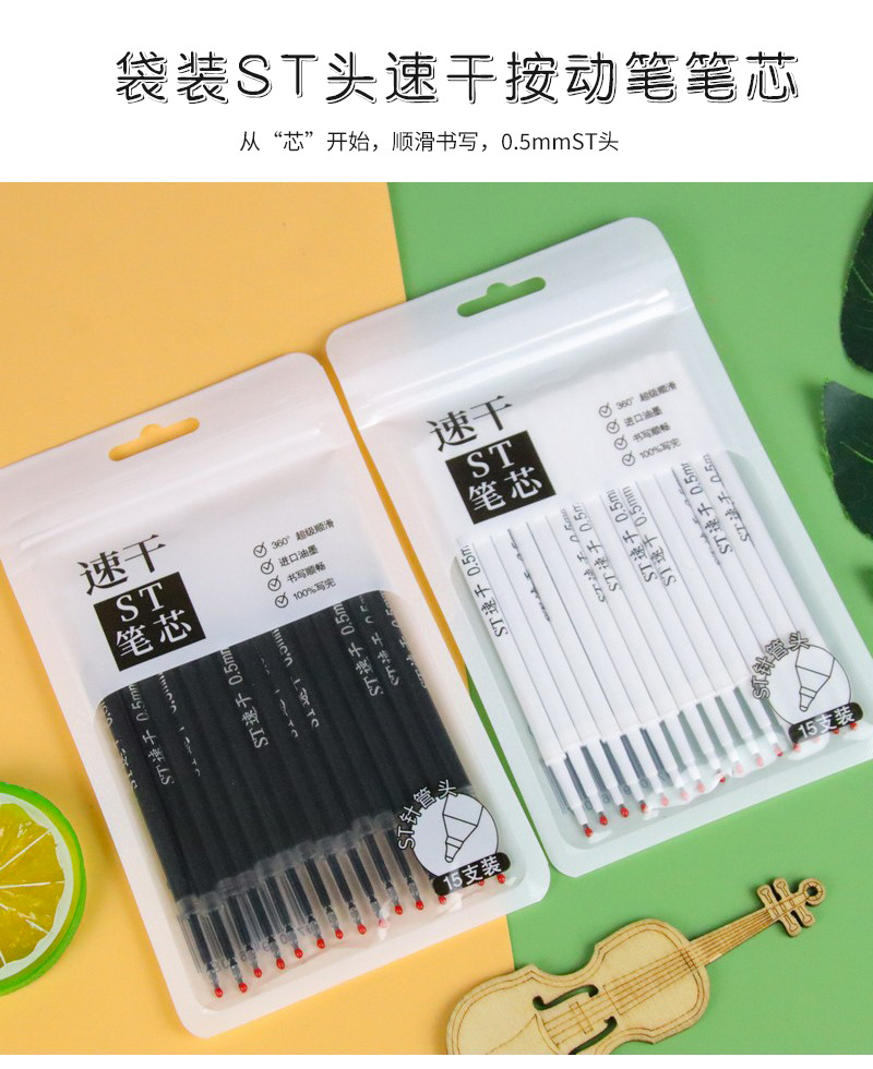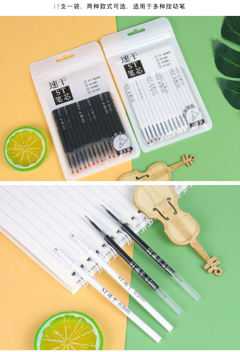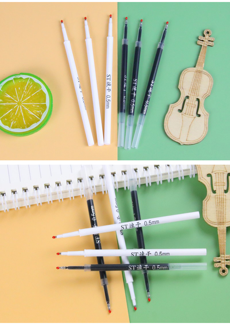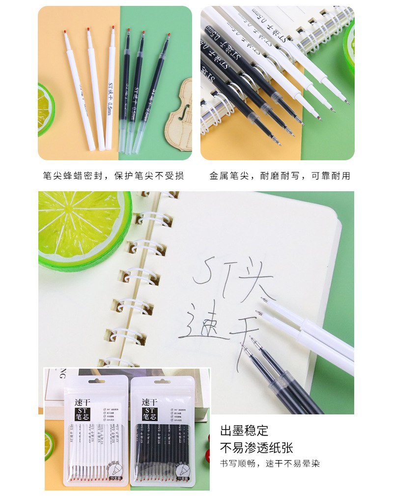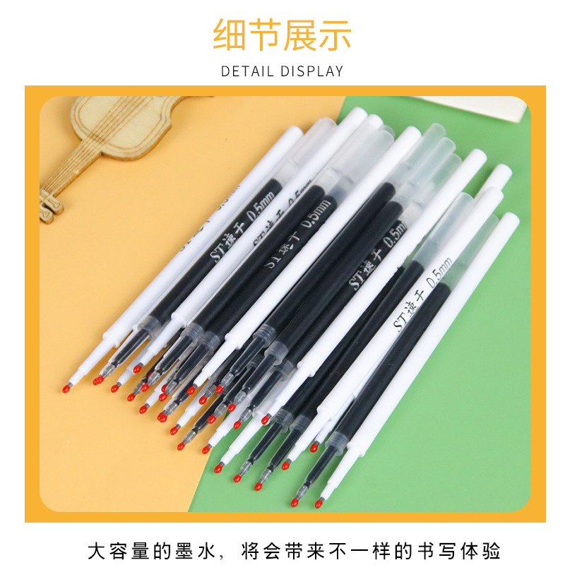 速干ST头0.5mm黑色笔芯/支 按动笔通用替芯中性笔配件替换芯学生文具刷题笔笔芯