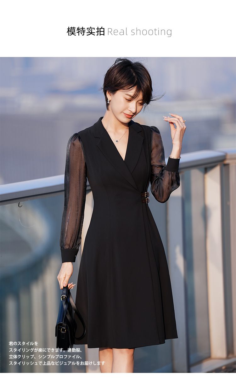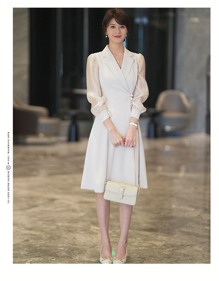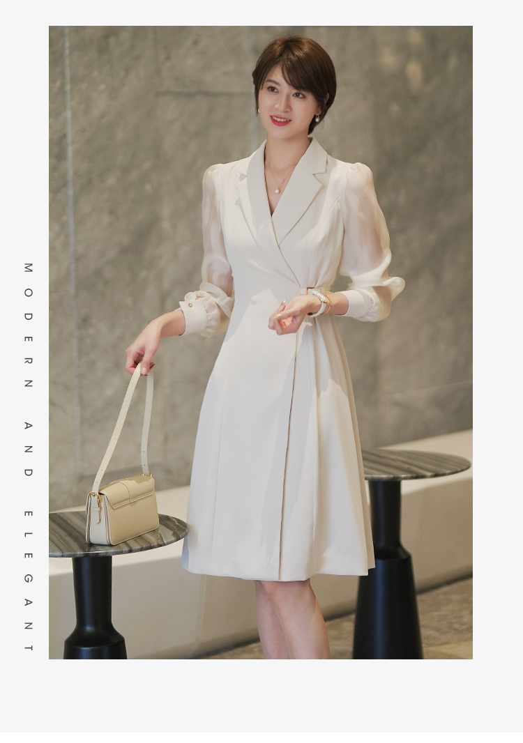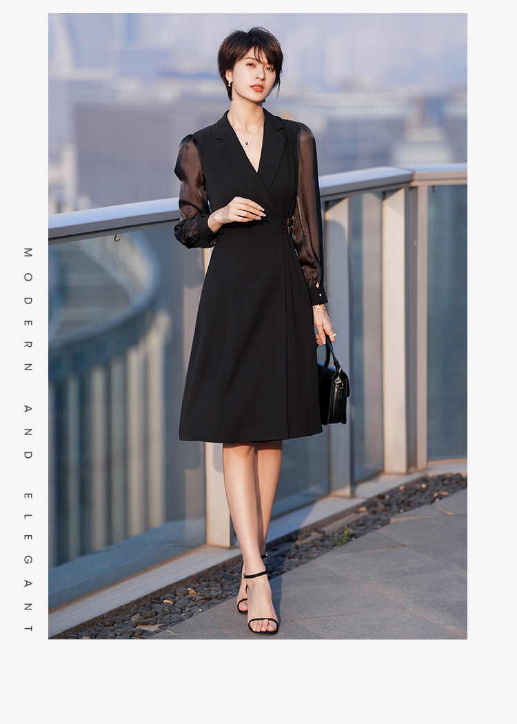 西装连衣裙女高级感夏季新款法式气质V领修身职业中长裙子