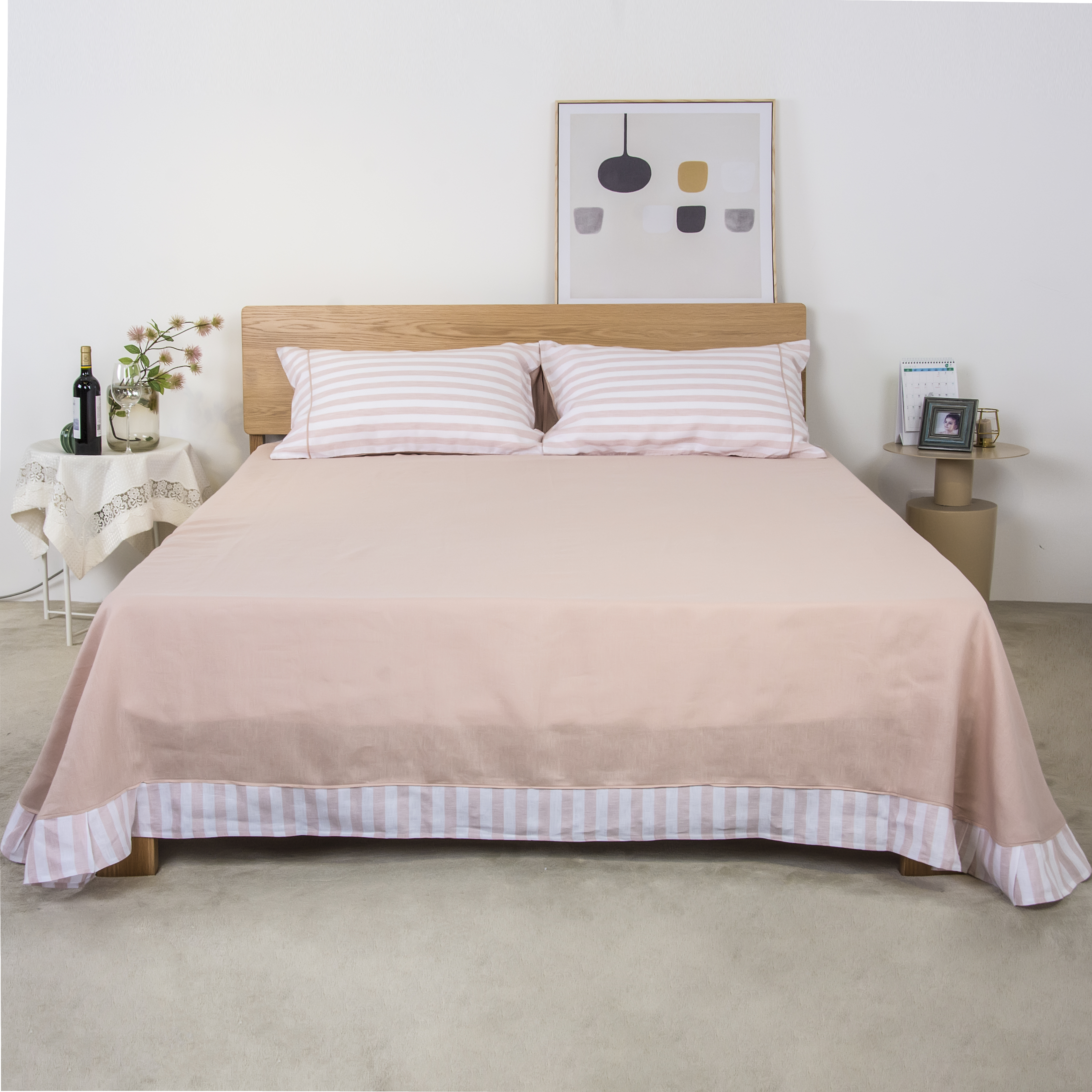 原野纯麻三件套纯亚麻条纹小清新