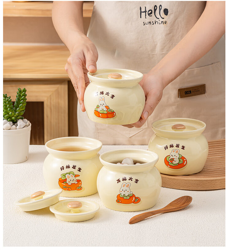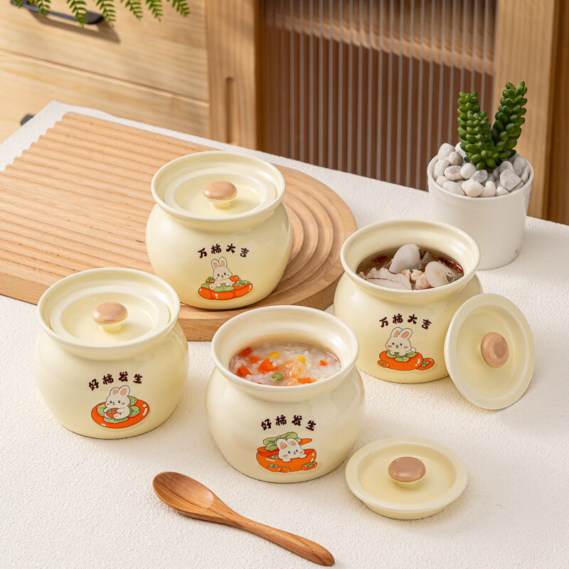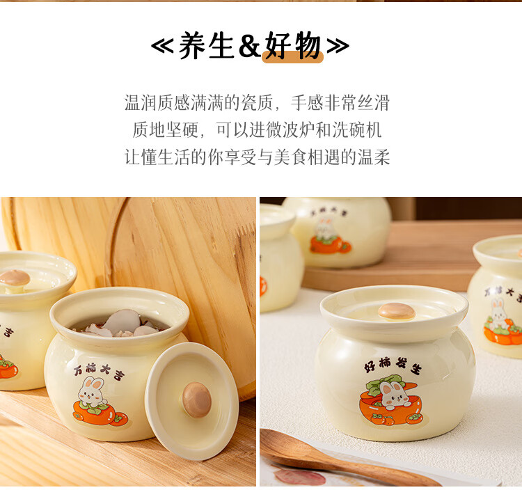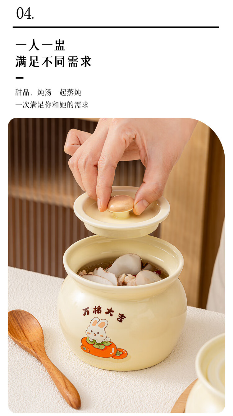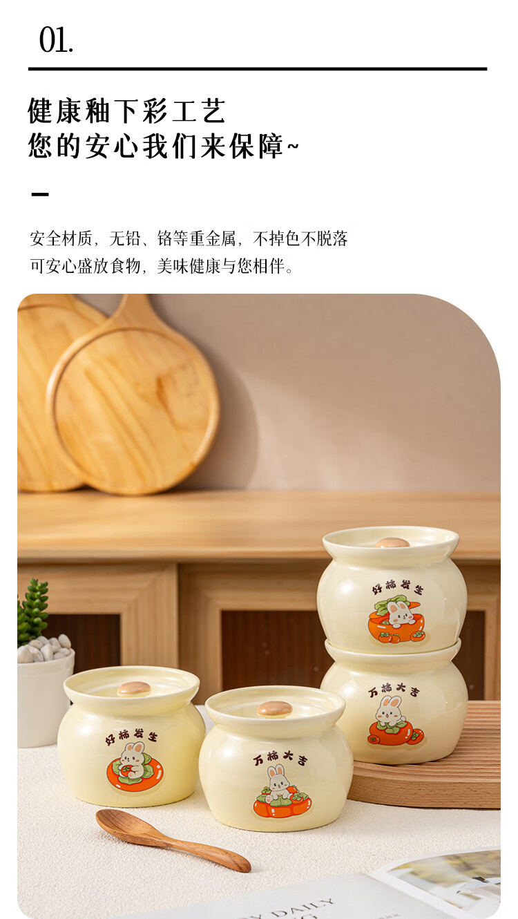 【奶黄兔炖罐】陶瓷隔水炖盅燕窝盅炖罐家用带盖蒸蛋盅煨汤小瓦罐婴儿辅食一人食