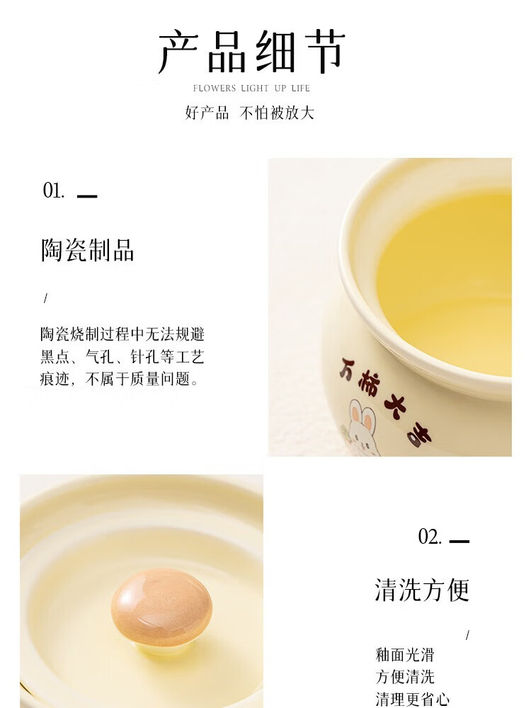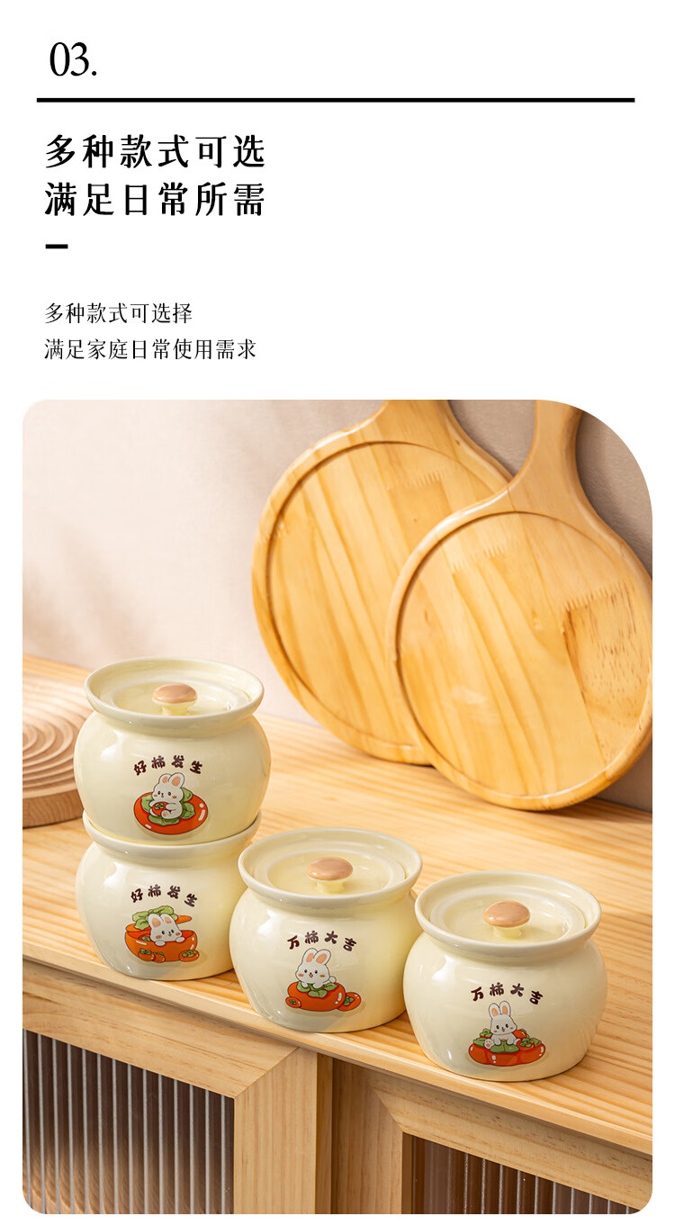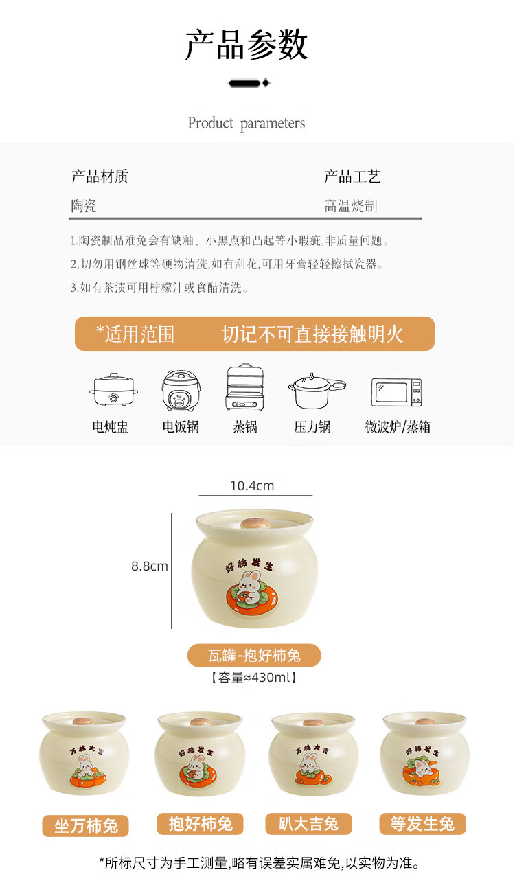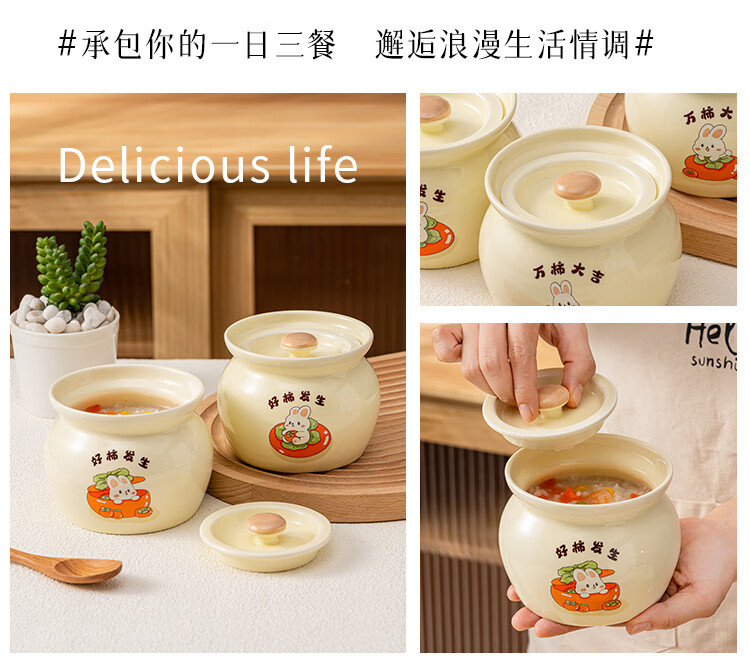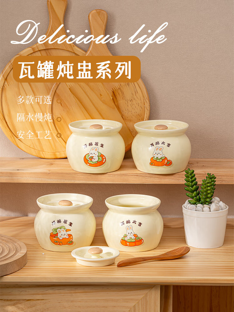 【奶黄兔炖罐】陶瓷隔水炖盅燕窝盅炖罐家用带盖蒸蛋盅煨汤小瓦罐婴儿辅食一人食