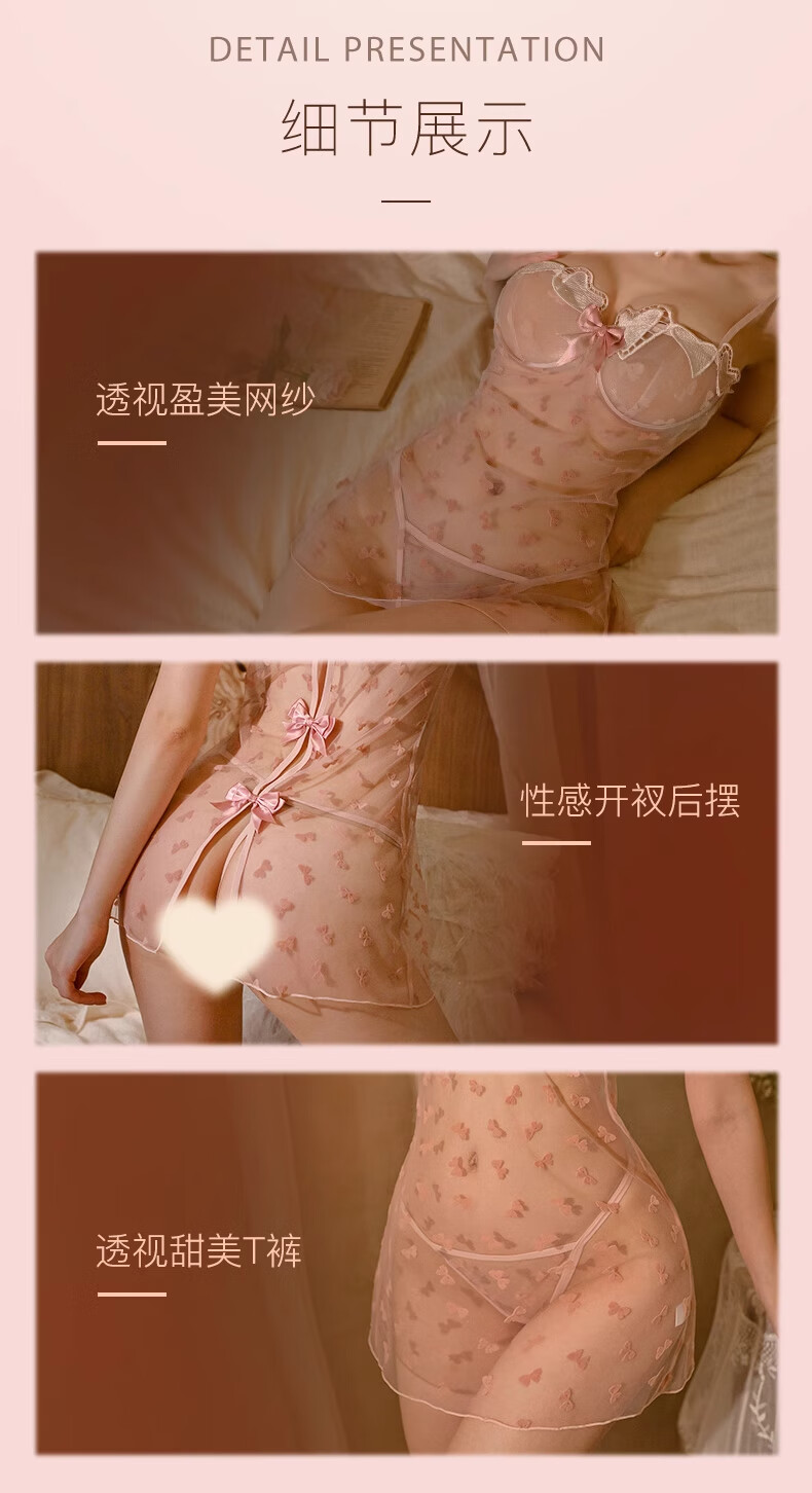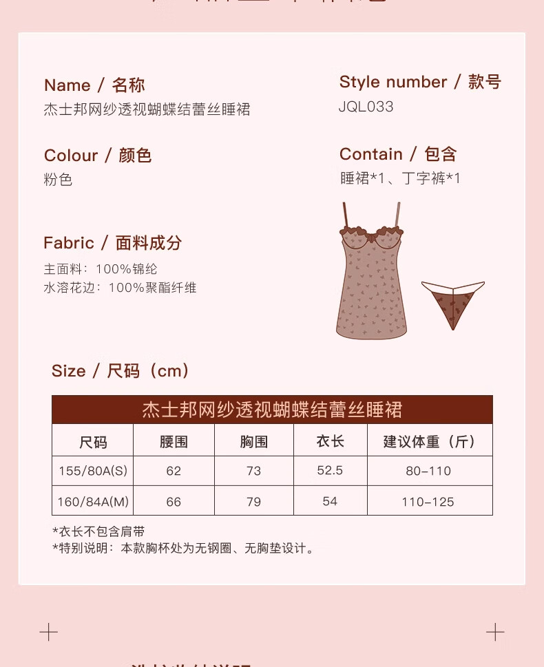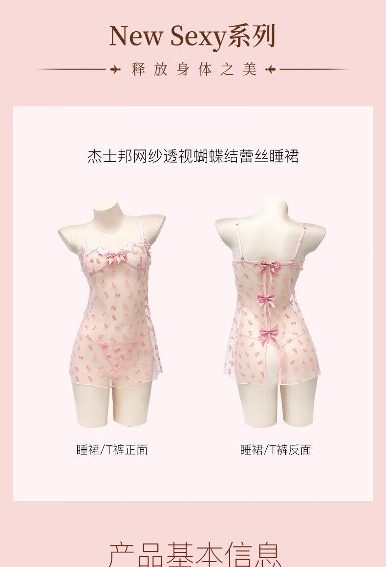 杰士邦网纱透视蝴蝶结蕾丝睡裙