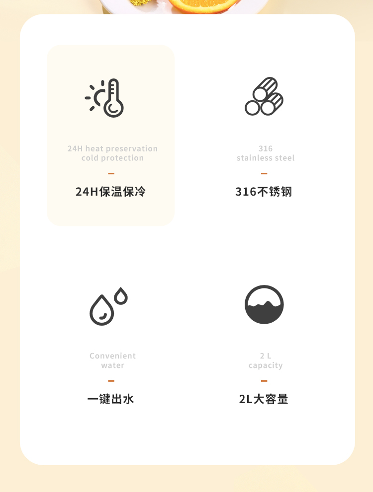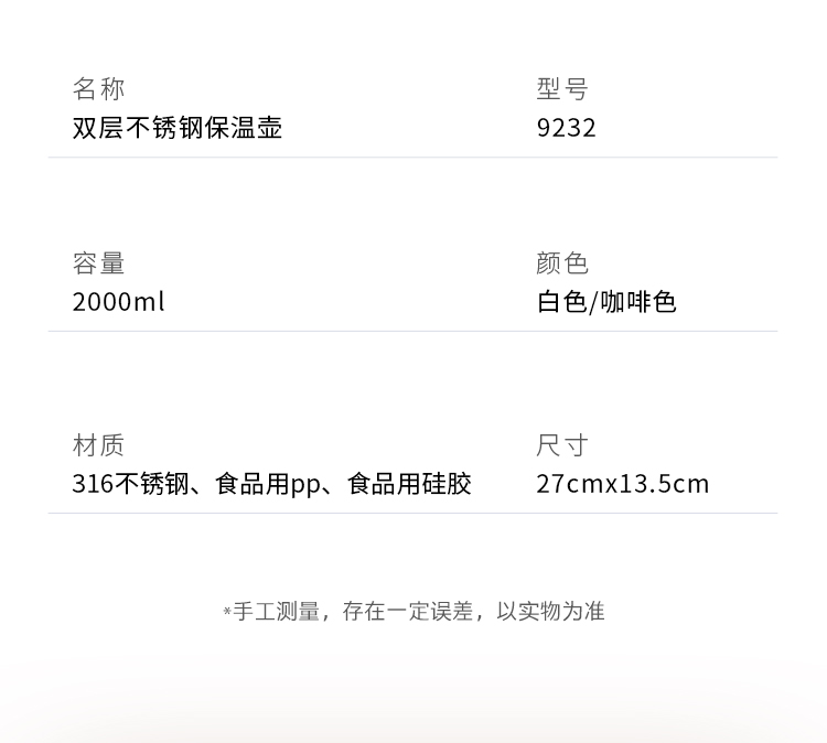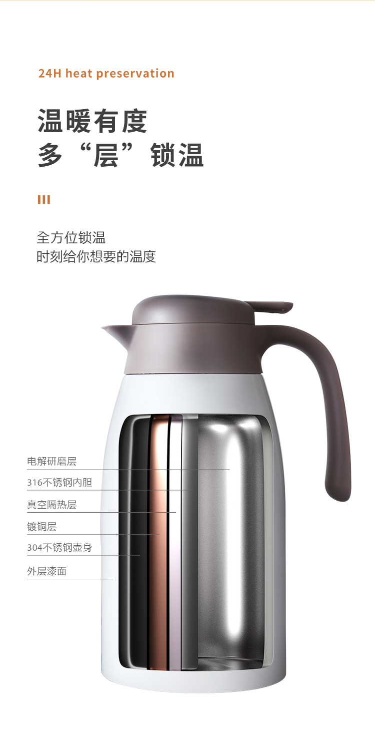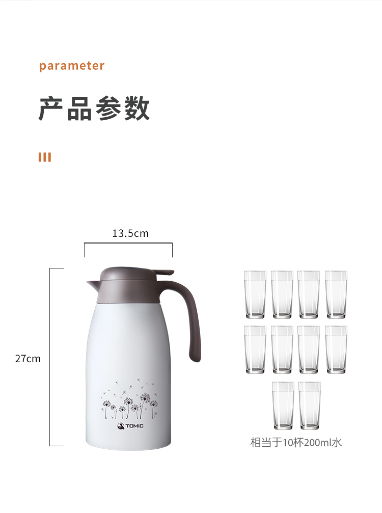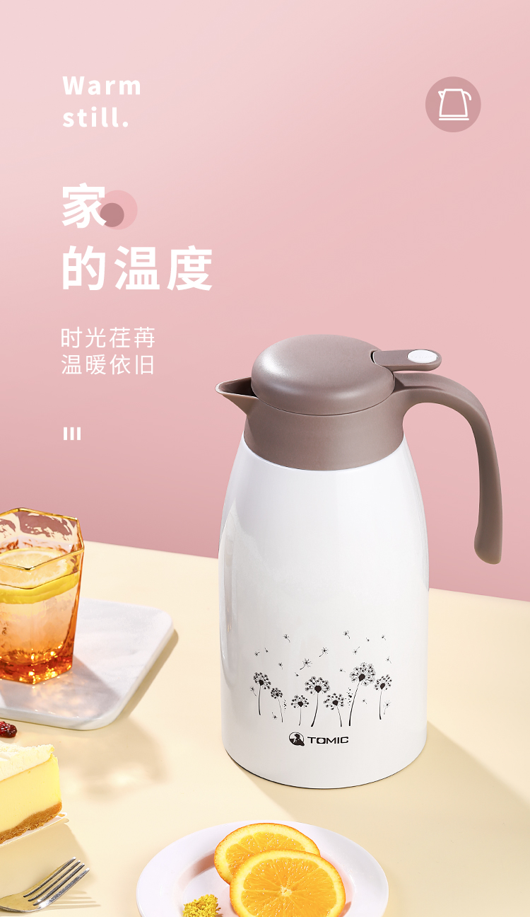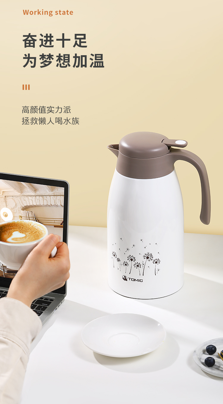 特美刻TOMIC保温壶家用大容量316不锈钢暖水瓶办公室2L白色保温水壶TJL9232