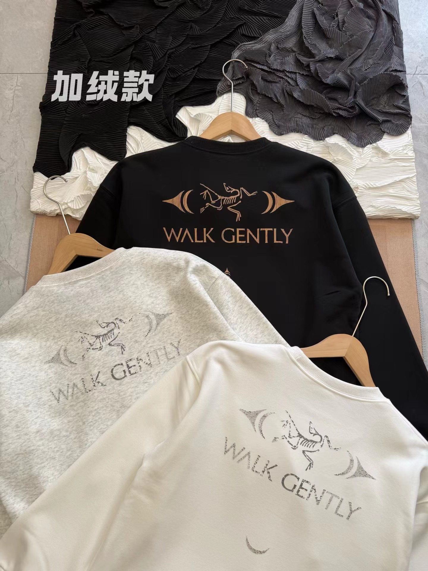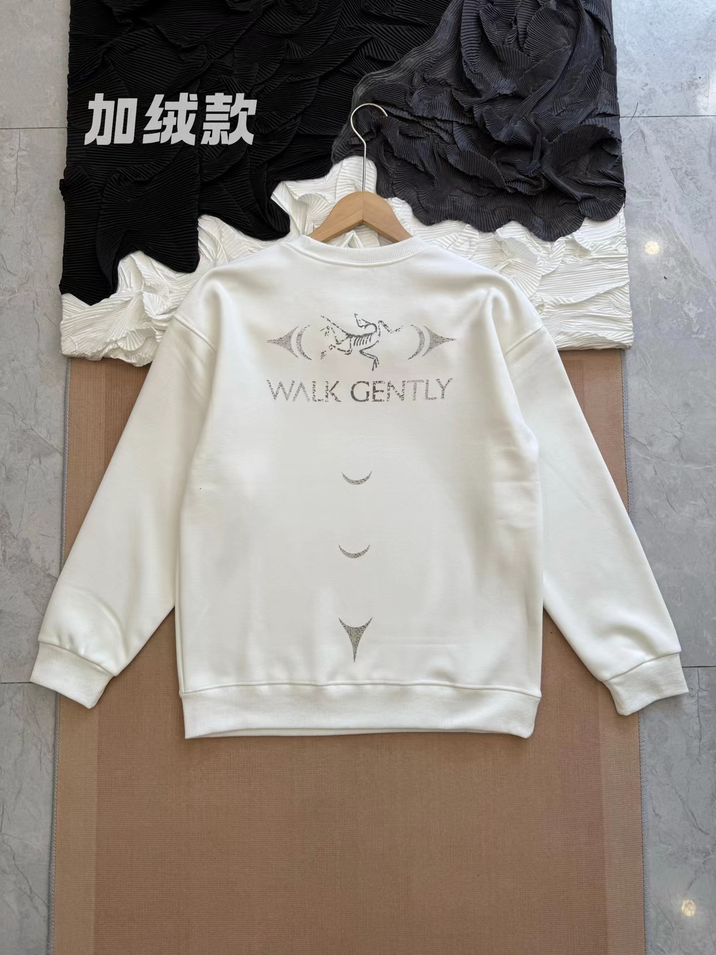 walk gently系列 SS25 COTTON SALMON SKIN 印花logo 加绒圆领长袖卫衣