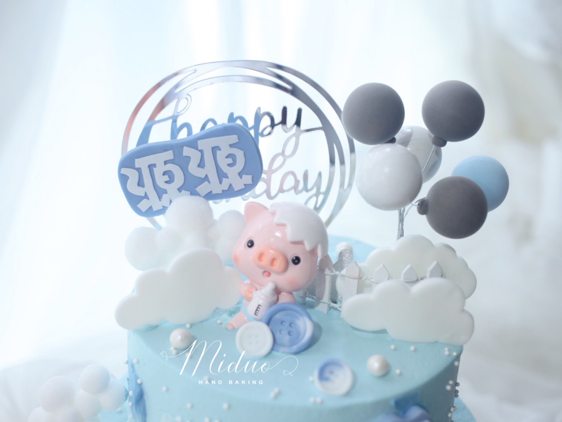 男孩款 蓝色猪宝宝 男宝宝 双层 满月 百天 周岁