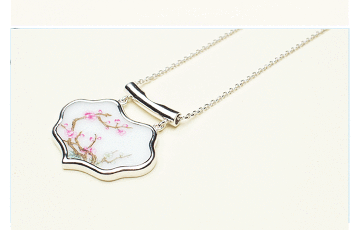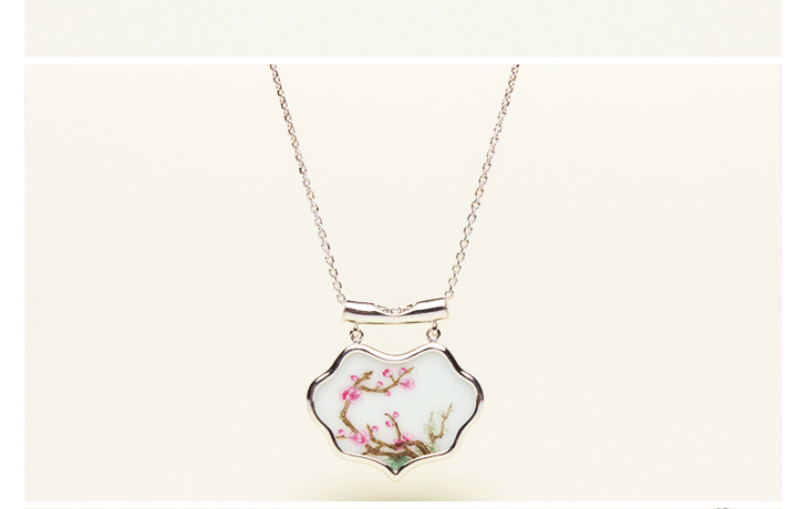 称心如意 高温颜色釉粉彩工艺陶瓷项链 925银锁骨连礼盒精装