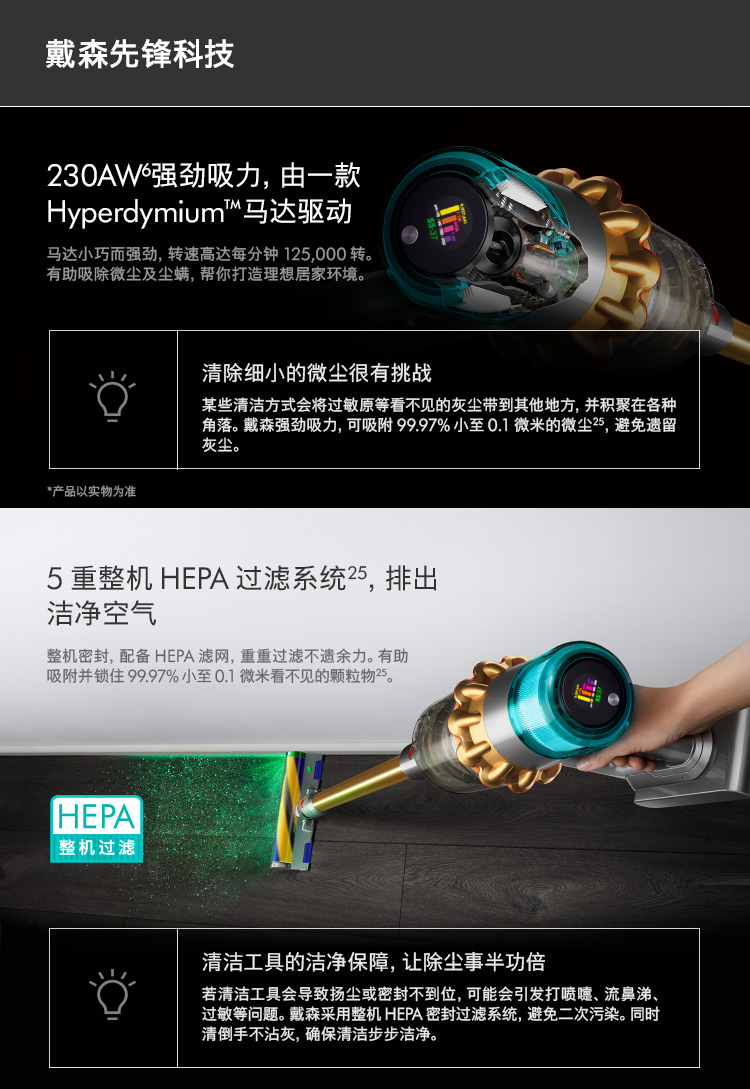 【6F】Dyson戴森V15新品限量黑杆手持无线吸尘器 除螨大吸力 激光探测