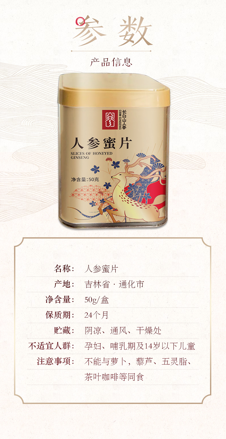 【长白山人参】鲜参蜜片人参切片零食蜜饯特产50g