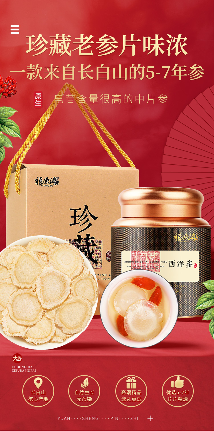 福东海 精选西洋参大片200克 软枝主根人参花旗参片 泡水煲汤养生送礼佳品