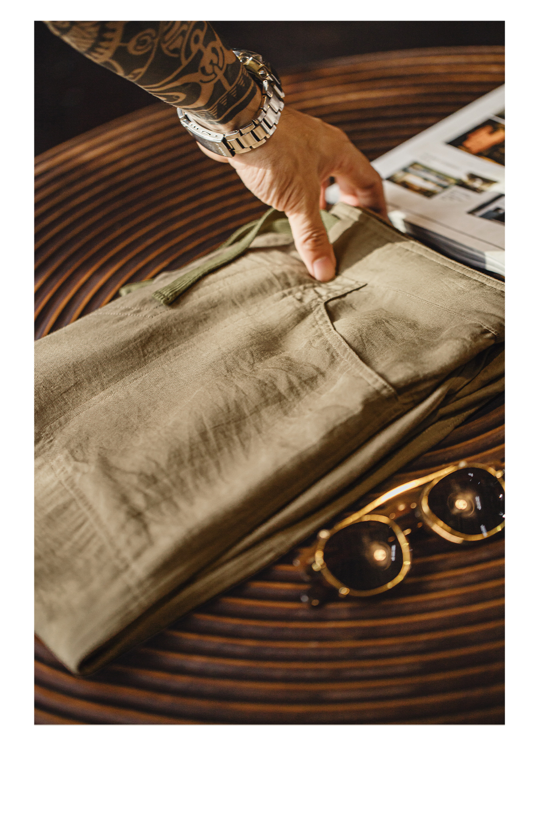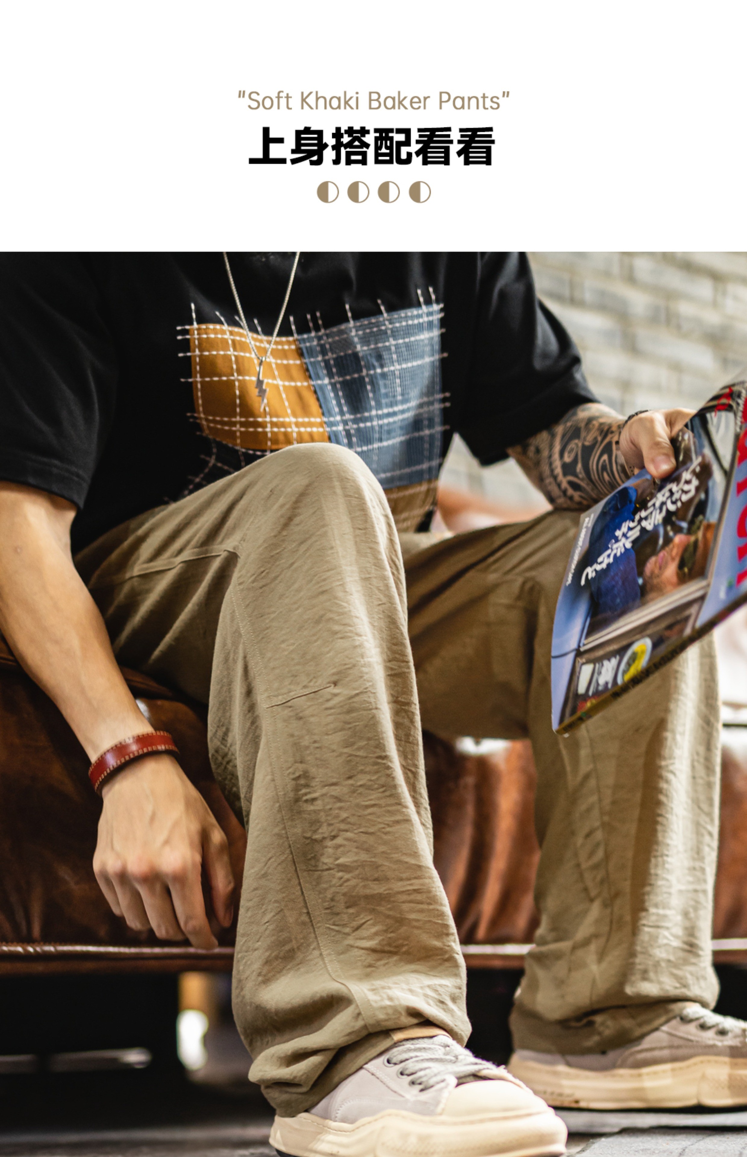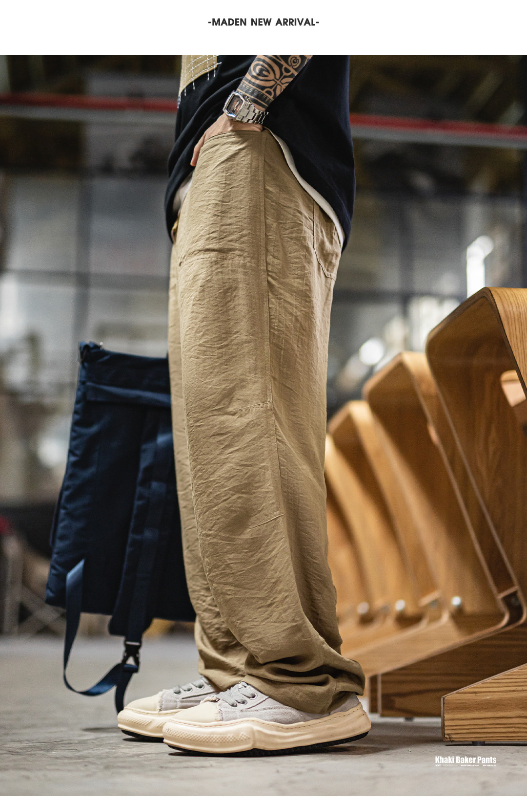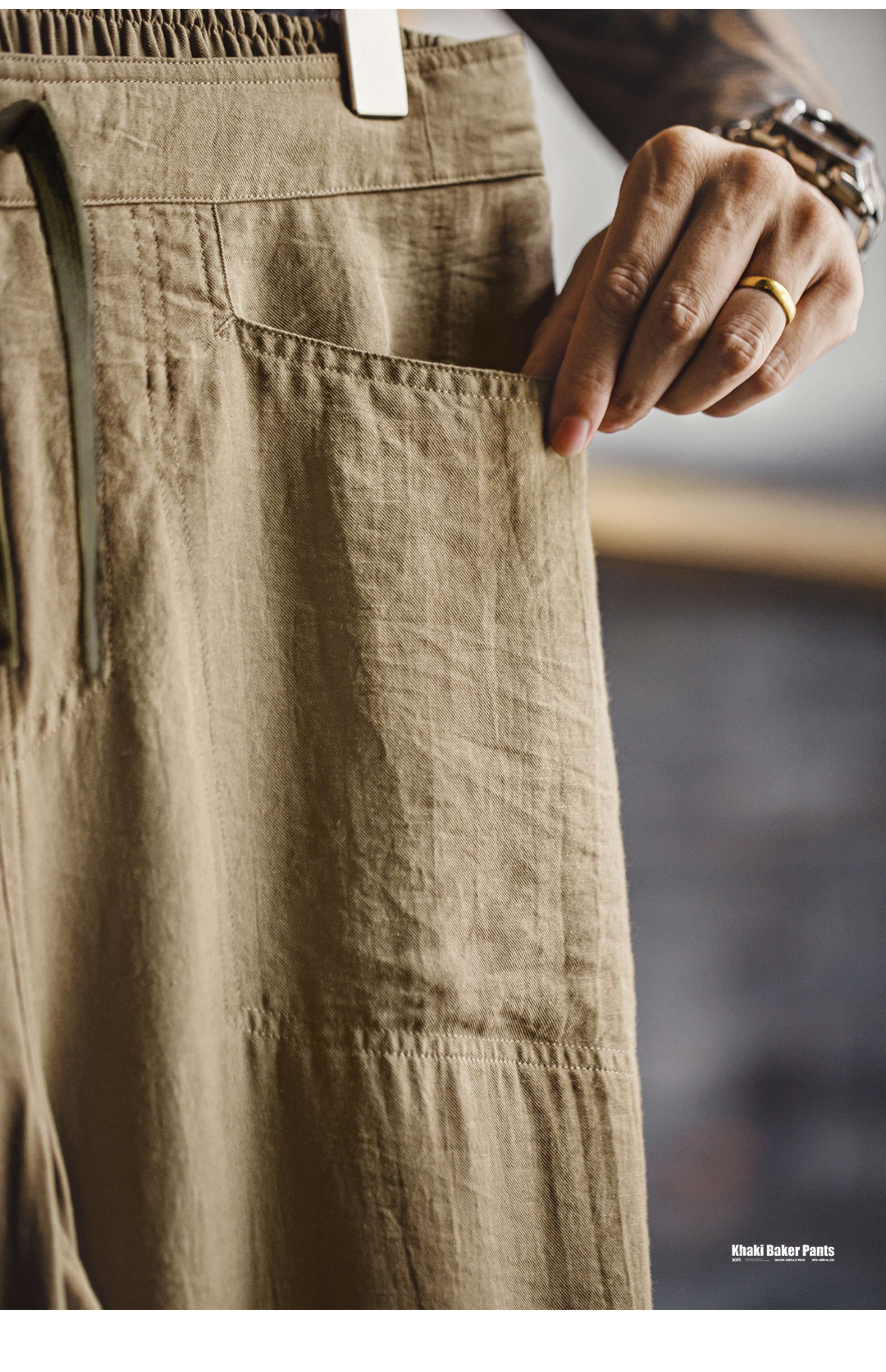 马登工装卡其色贝克裤老钱风薄款垂感莱赛尔天丝亚麻长裤子男夏秋