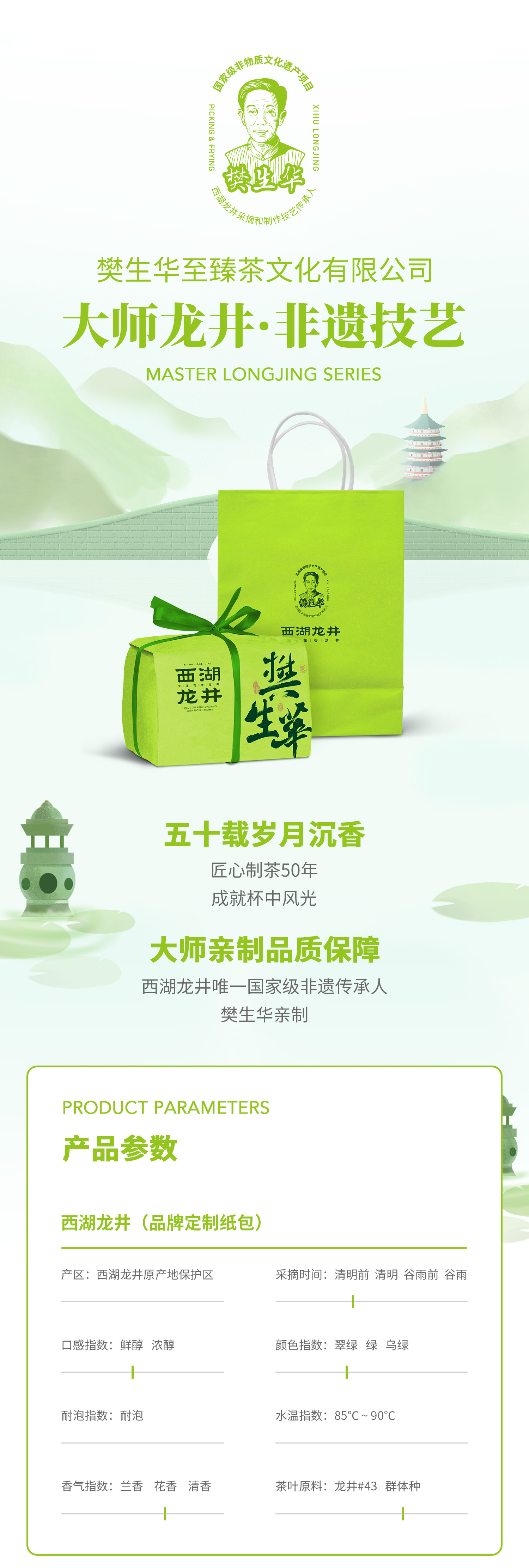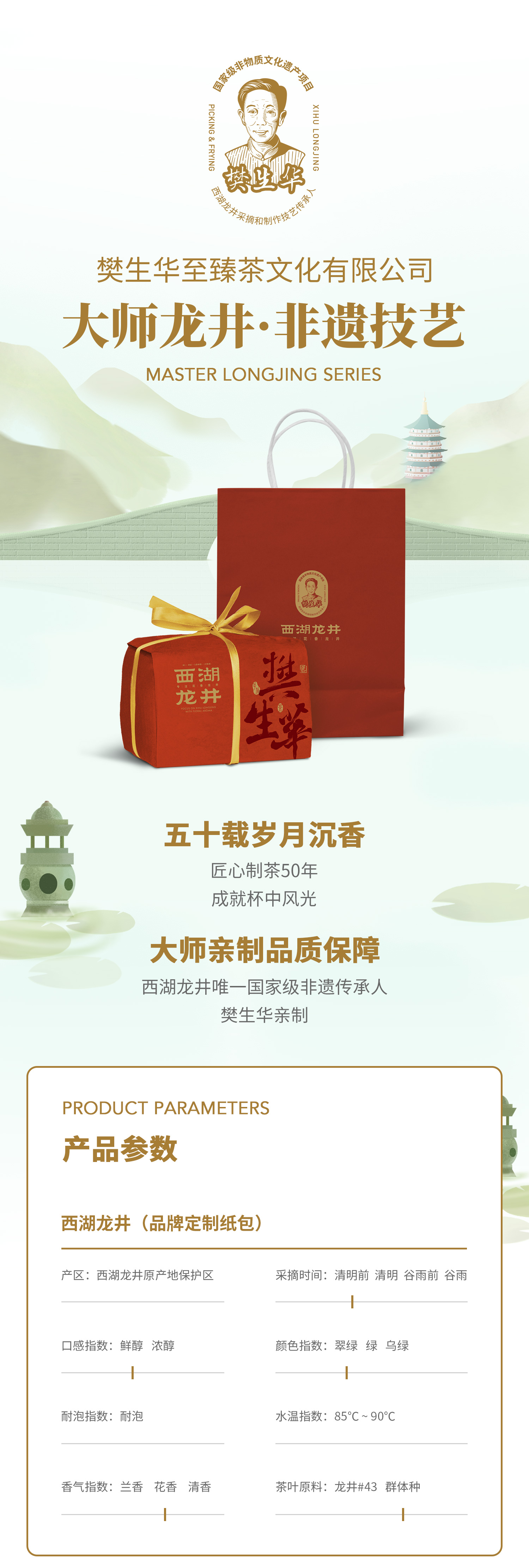 明前茶2023西湖龙井樊生华大师定制款【核心龙坞产区】非遗手工茶200g茶叶