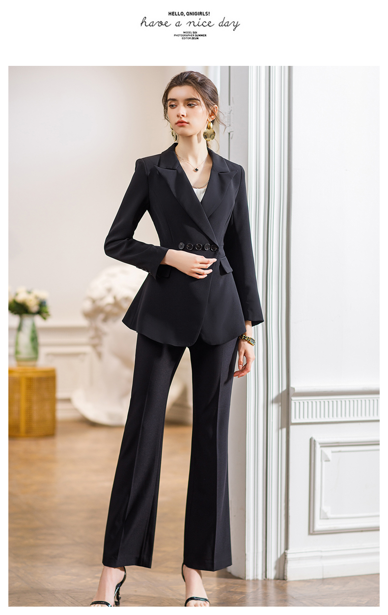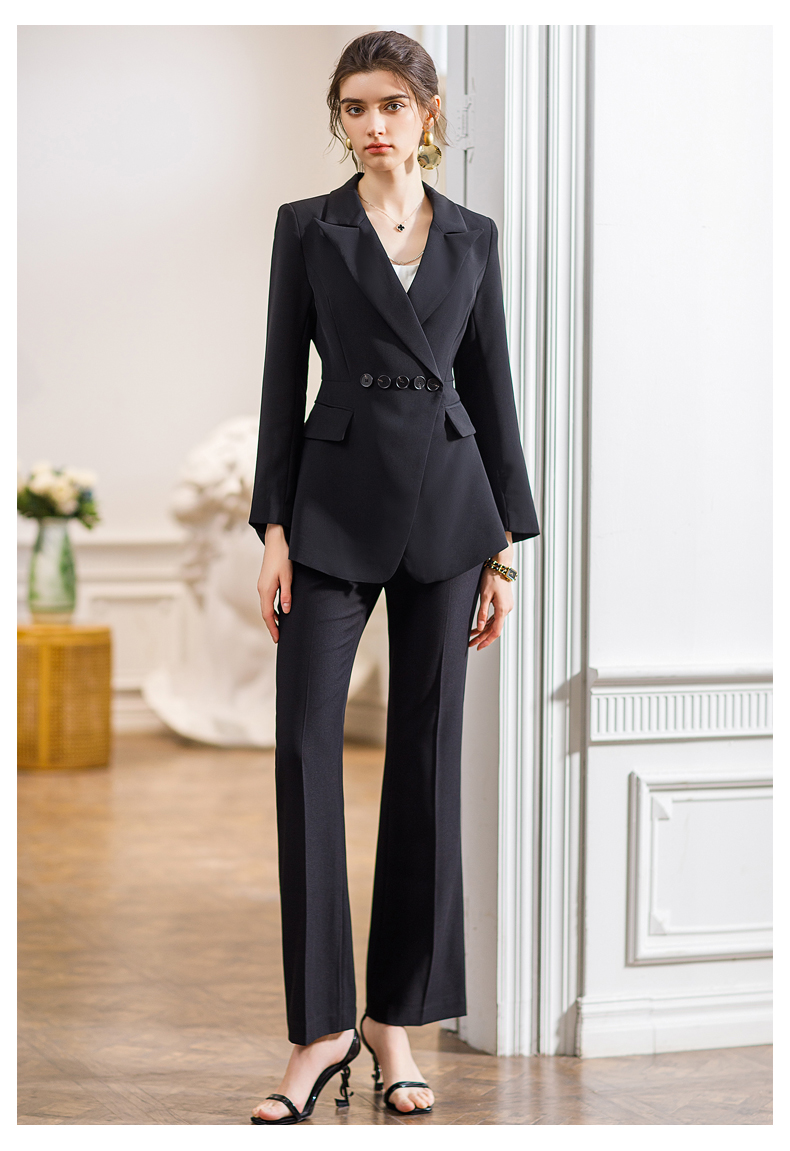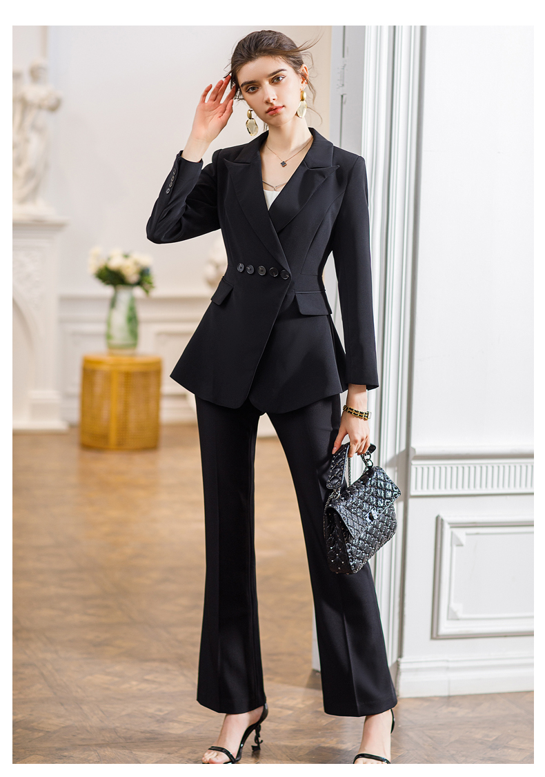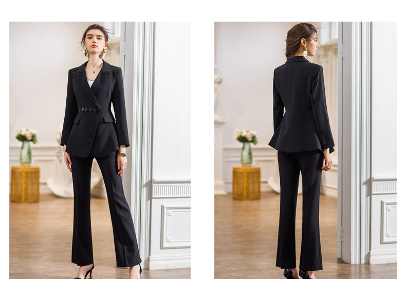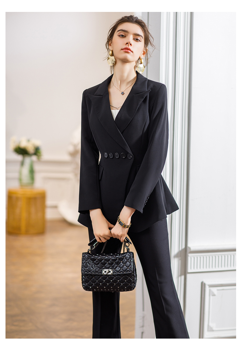 AD高级感阔腿裤黑色西装套装女2022新款长袖西服外套职业商务正装