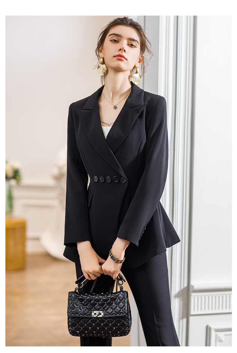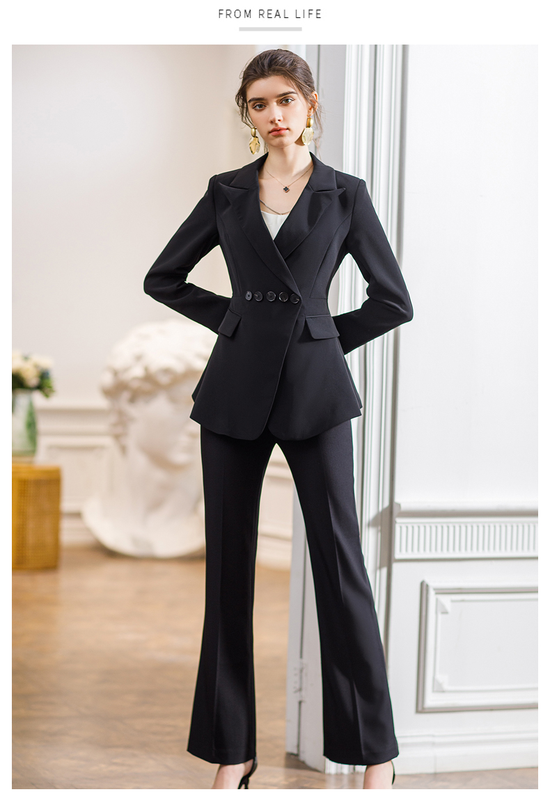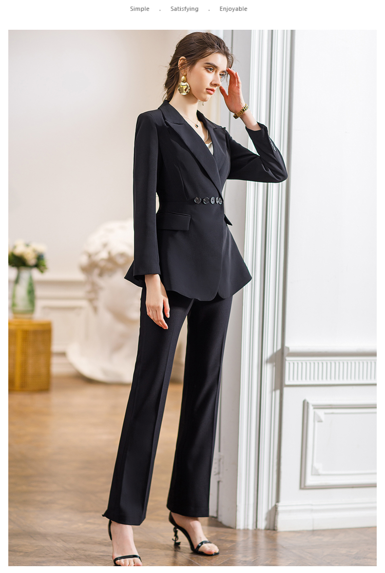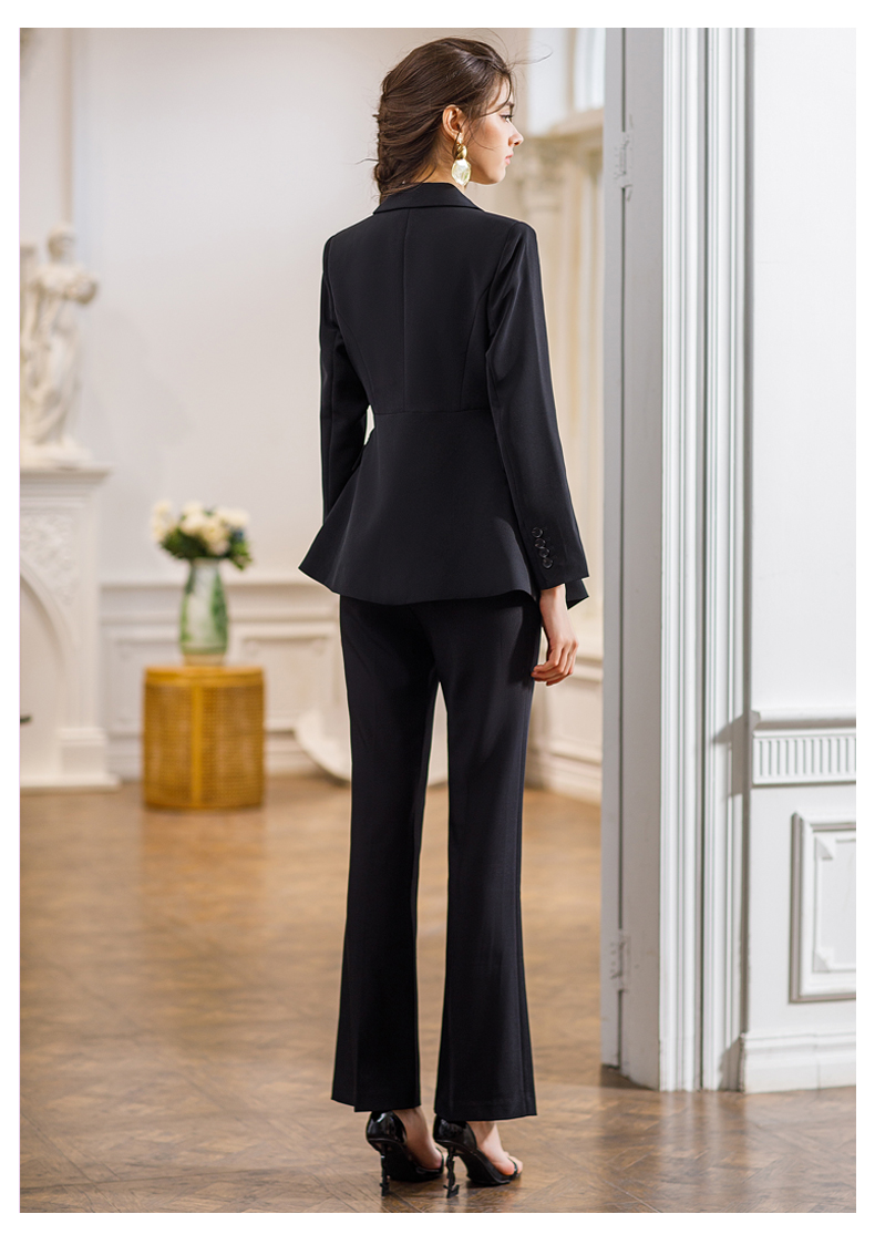 AD高级感阔腿裤黑色西装套装女2022新款长袖西服外套职业商务正装