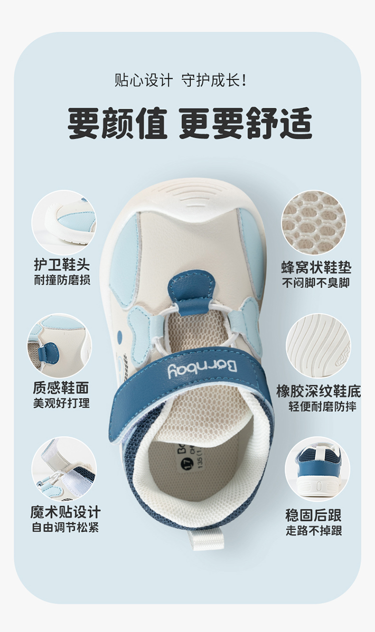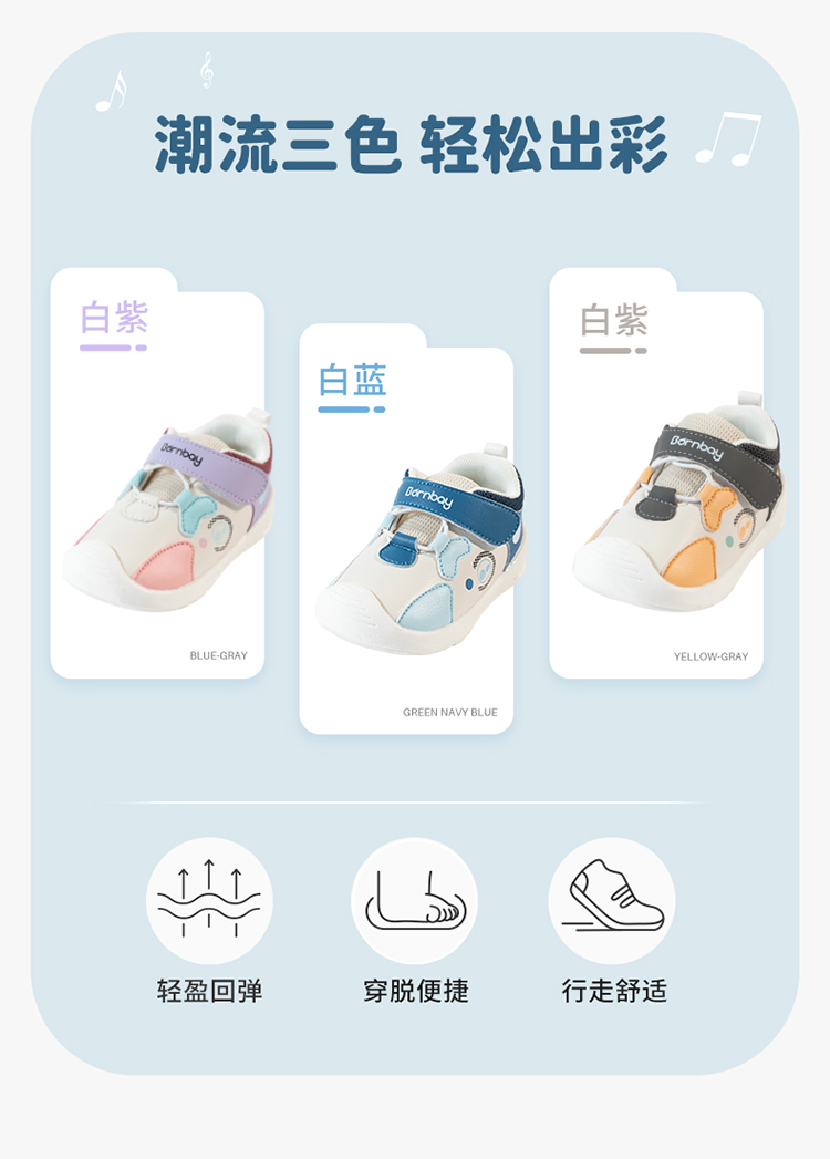 贝贝怡春秋新款宝宝时尚学步鞋婴幼儿防踢护脚鞋子软底小童鞋233X483