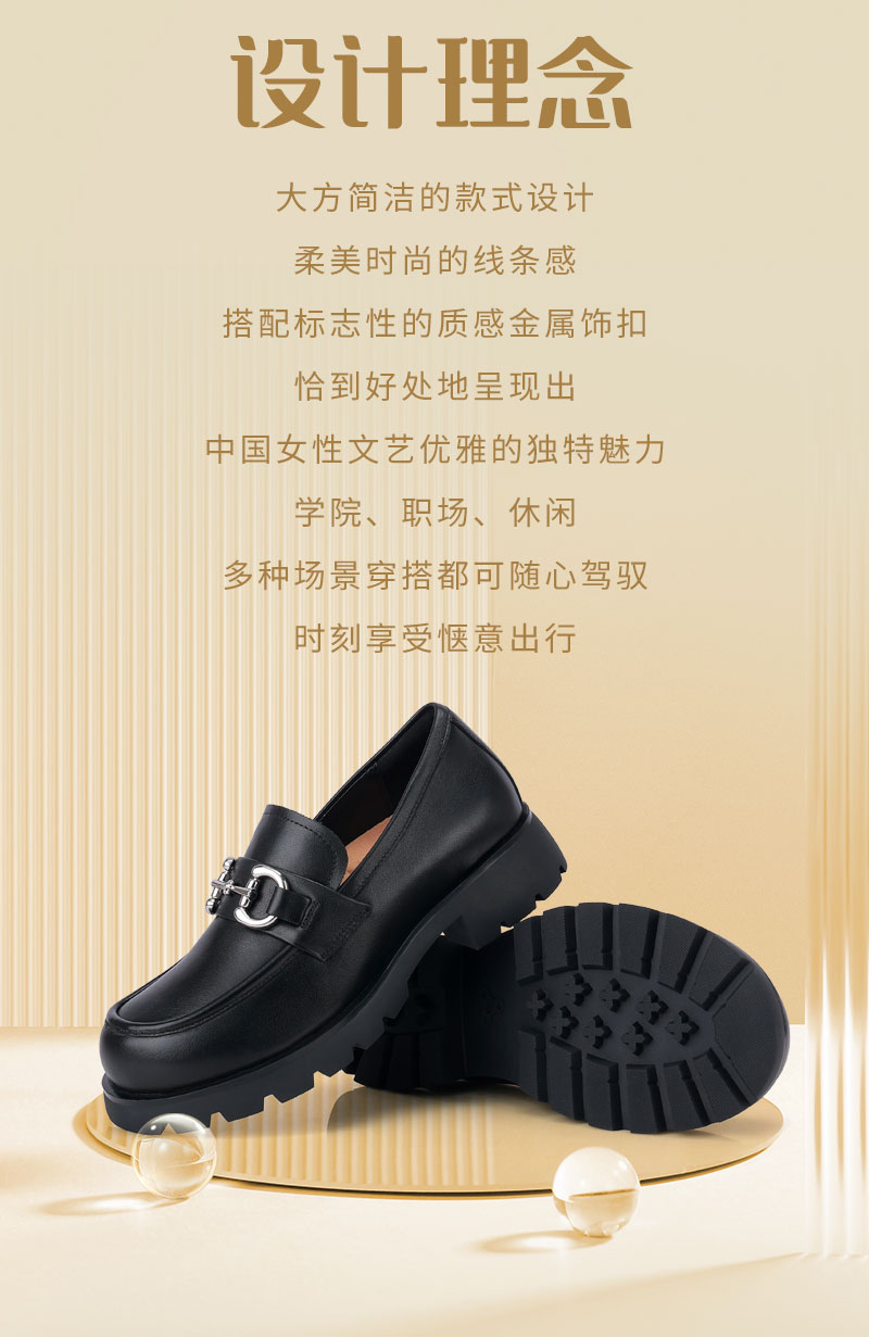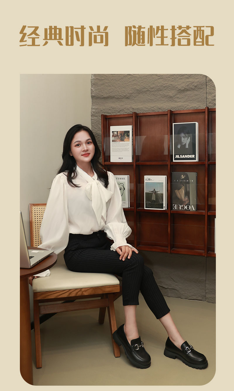 足行健铿锵玫瑰-乐福鞋女春季英伦风小皮鞋女黑色单鞋牛皮粗跟