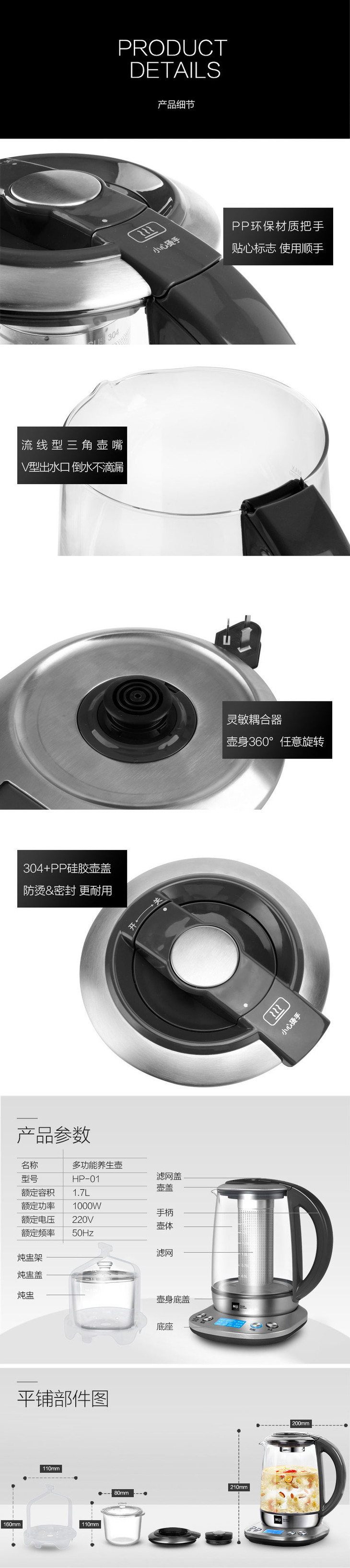德国 Miji 米技多功能电热水壶、养生壶!花果茶、养生汤、药膳、煮蛋都能用!集齐煮茶壶+炖锅+煮蛋器+烧水壶,性价比超级高!
