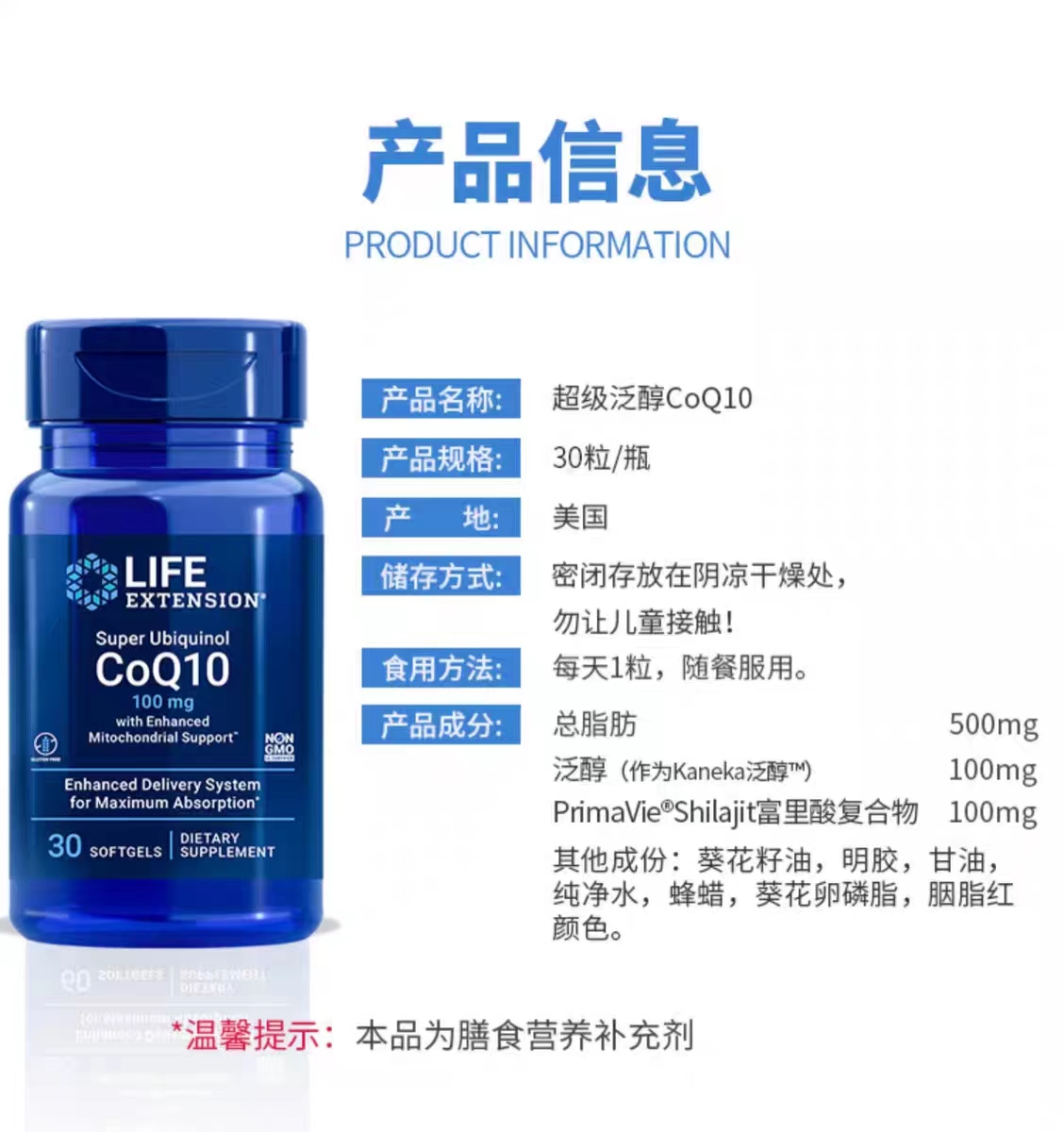 沿寿LIFE EXTENSION 超级泛醇辅酶q10 30粒