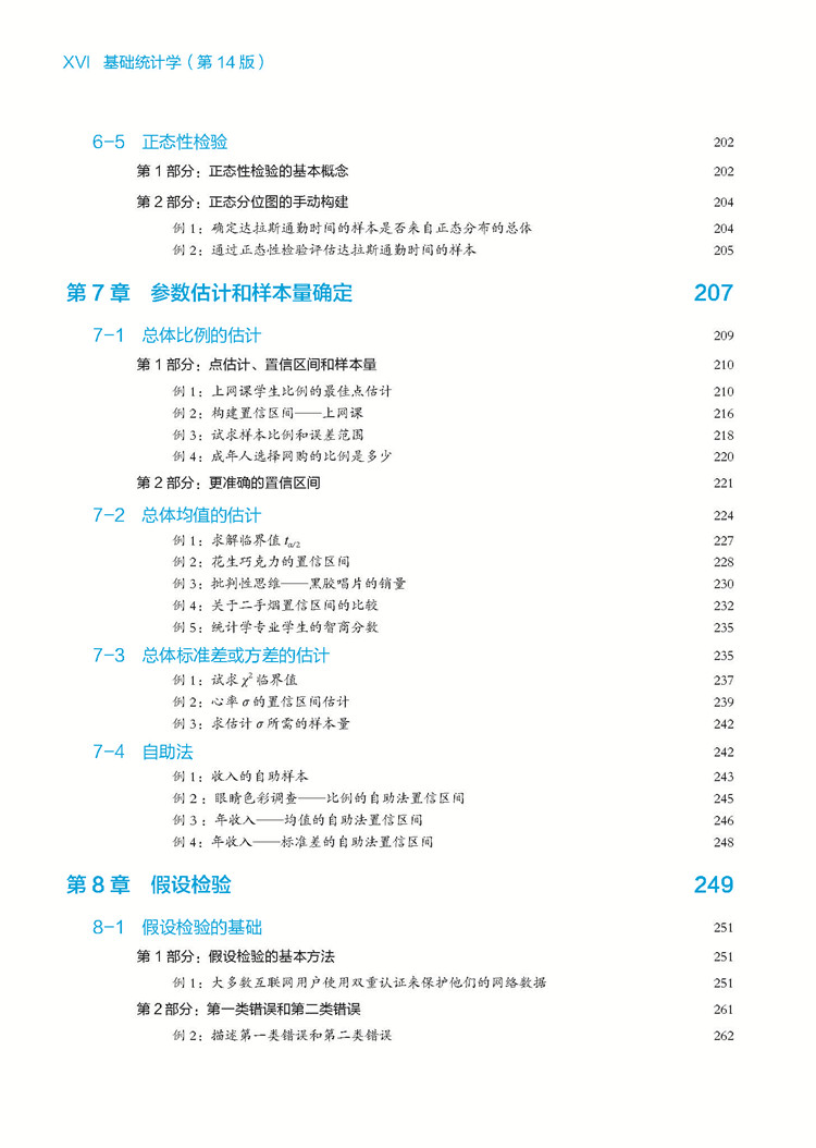 强调统计素养和培养统计思维:每节的习题都从统计素养与批判性思维习题开始。书中多数习题的设计目的是鼓励培养统计思维,而不是盲目地照搬计算过程。使用真实数据:94% 的示例和93% 的习题使用了真实数据。强调对概念的理解,而不只是掌握计算过程:大多数习题和示例不只是教会学生求解一个最后的数字,而是通过实际解读结果使学生理解统计概念。此外,每章都包括一个;数据驱动决策的项目。促进课堂上的主动学习:每章都包括;小组活动题材。使用统计软件培养学生对概念的理解和分析数据的技能:统计软件的分析结果贯穿全书。;使用软件部分也会提供软件的操作指南。每章还包括一个;软件项目。当查表所得答案和使用统计软件所得答案之间存在差异时,附录D 的习题参考答案会分别提供这两种答案。通过一些评估手段来提高学生的学习效果并评估学生的学习成果:评估工具包括大量的习题、章节小测试、复习题、综合复习题、软件项目、大数据项目、数据驱动决策、小组活动题材。致谢